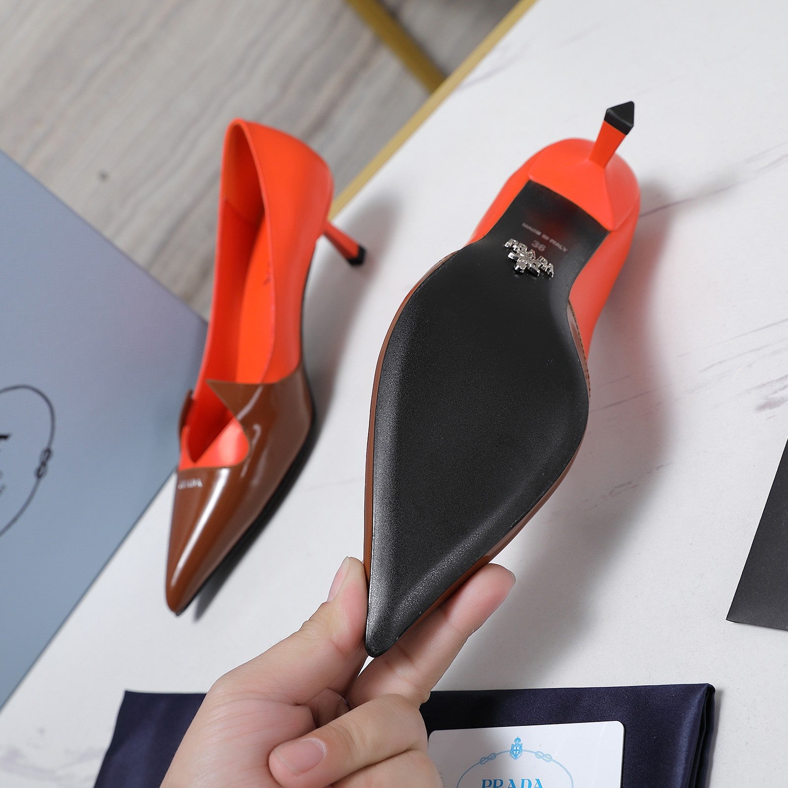 Prada Two-Tone Brushed Pumps 55mm Chocolate Red Cowhide 456266