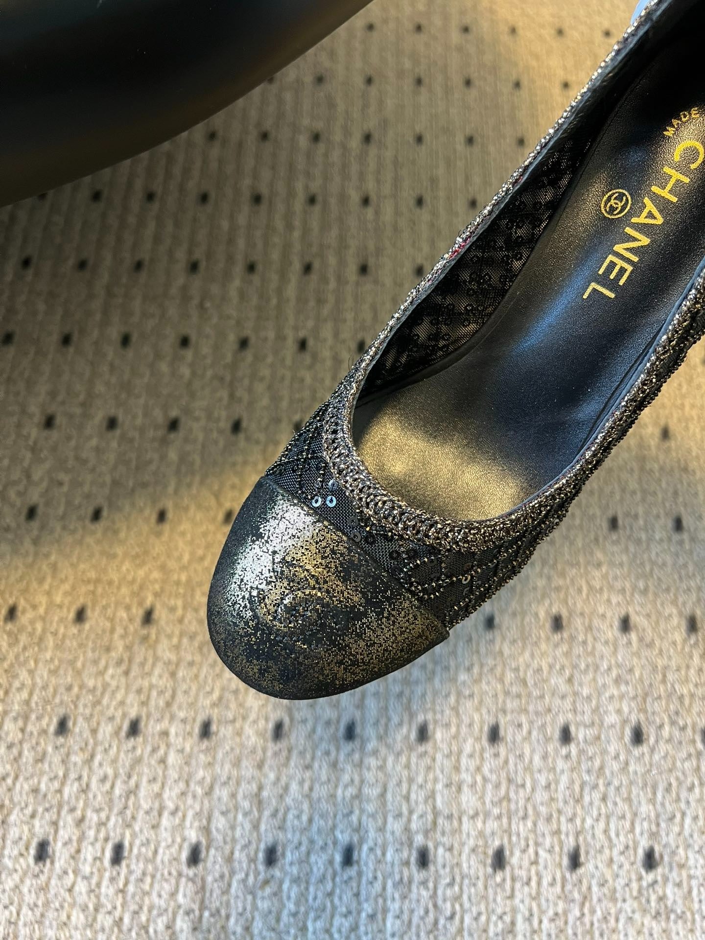 CC 26s High Heels Pump 50 Sliver Mesh Leather 627206