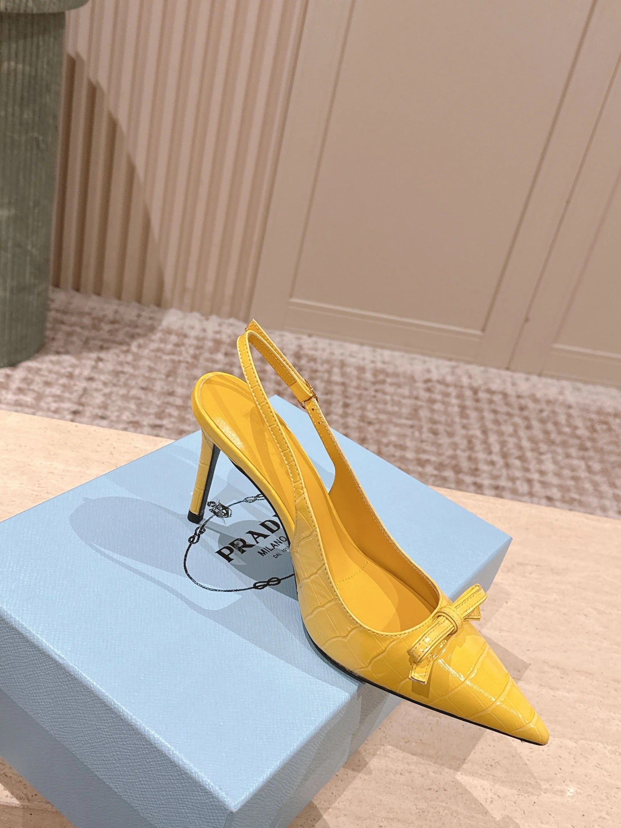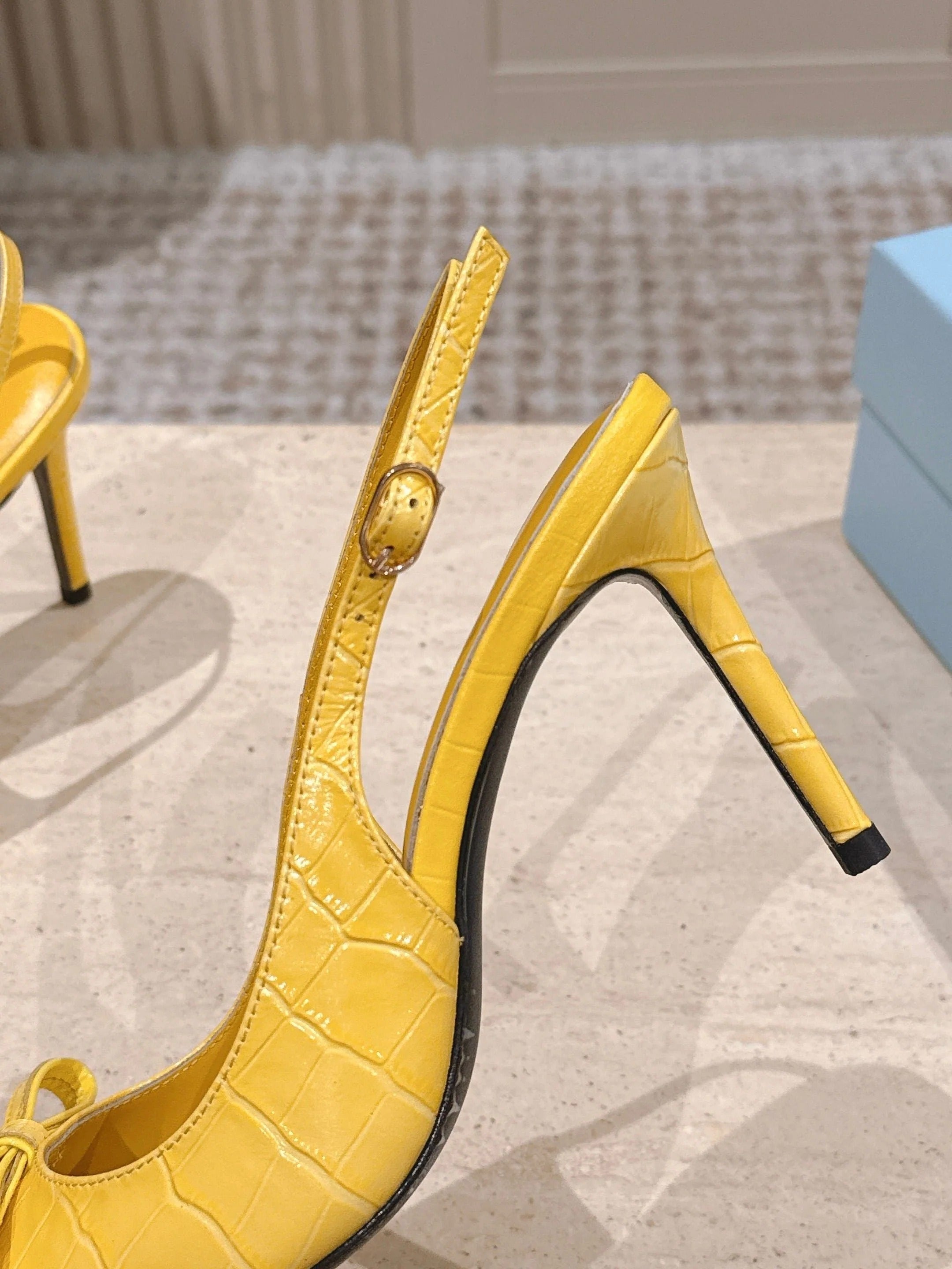 PRA 26S Slingback 85 Yellow Crocodile Embossed Leather 630738