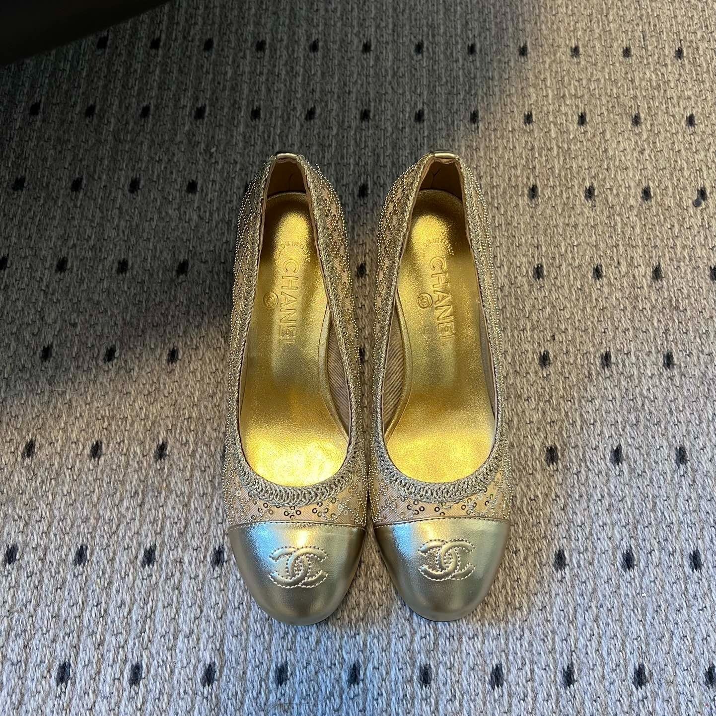 CC 26s High Heels Pump 50 Gold Mesh Leather 627205