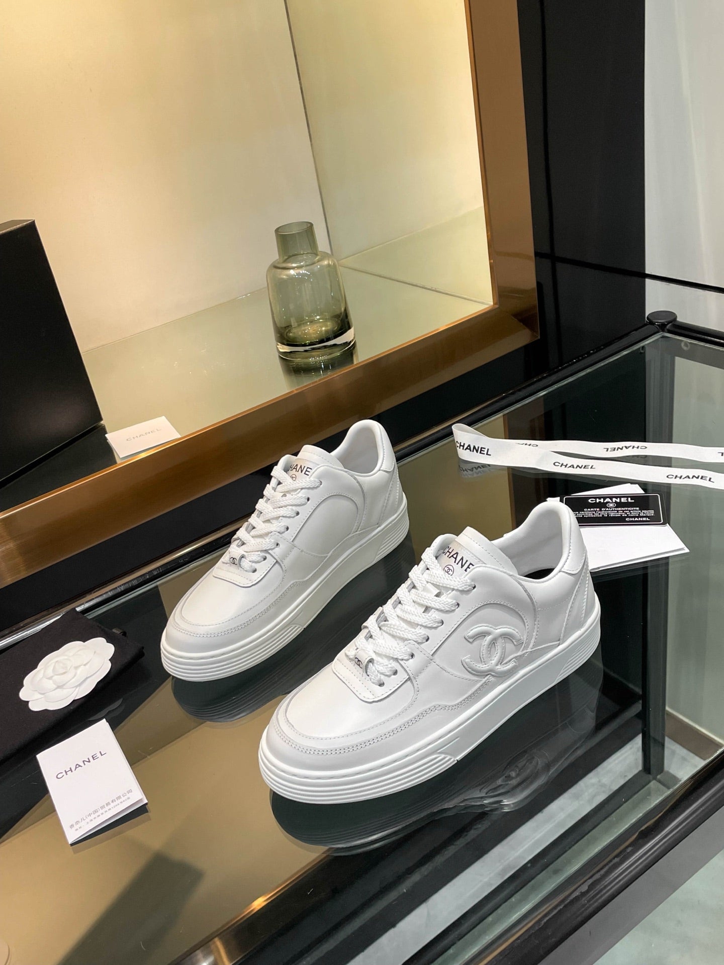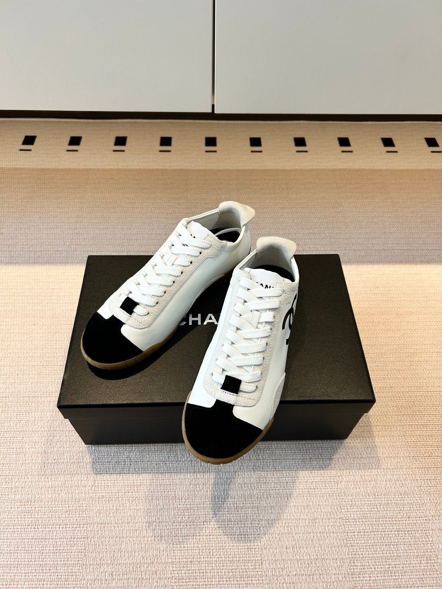 CC Casual Shoes Women's Low Top Black White Suede Cowhide Fur 548855