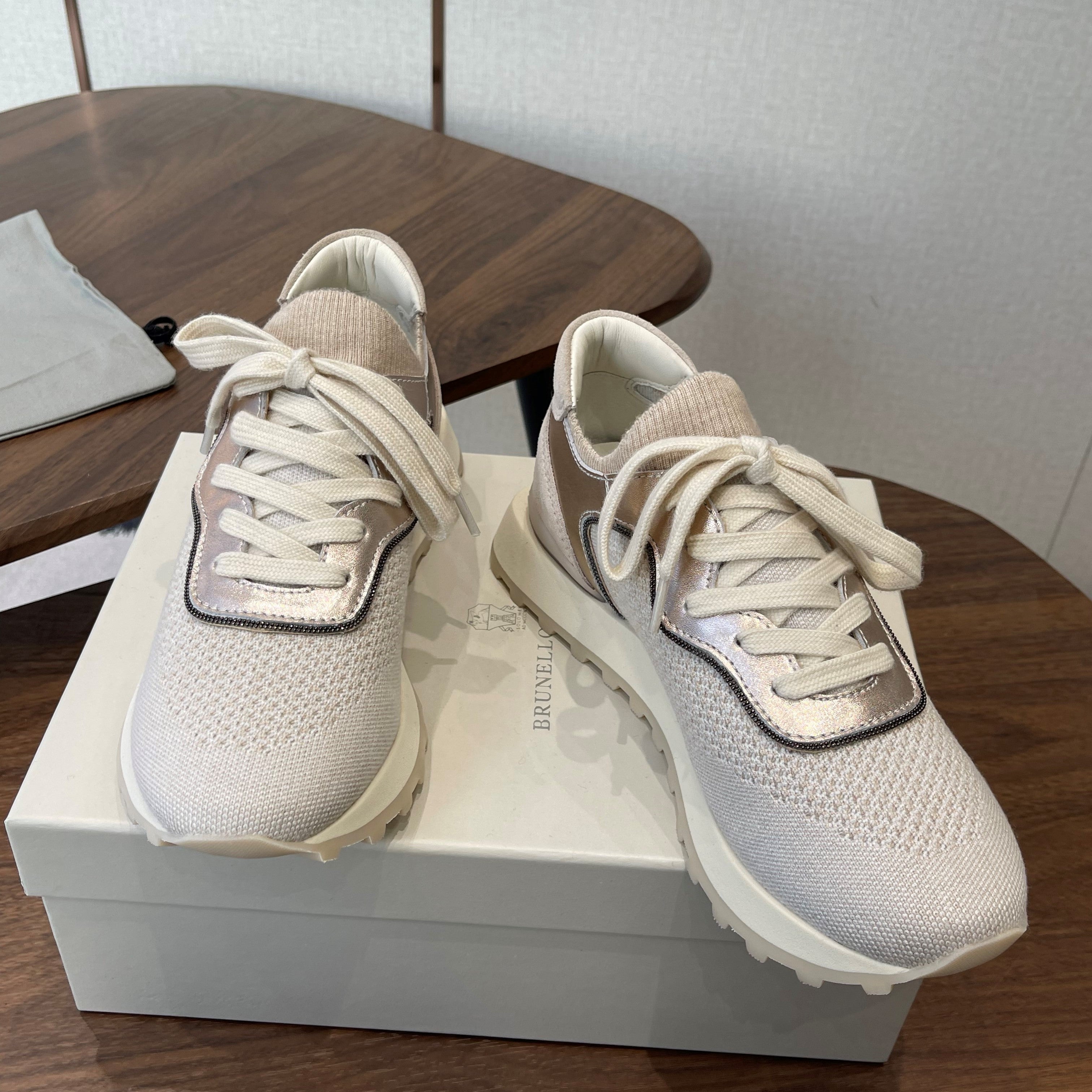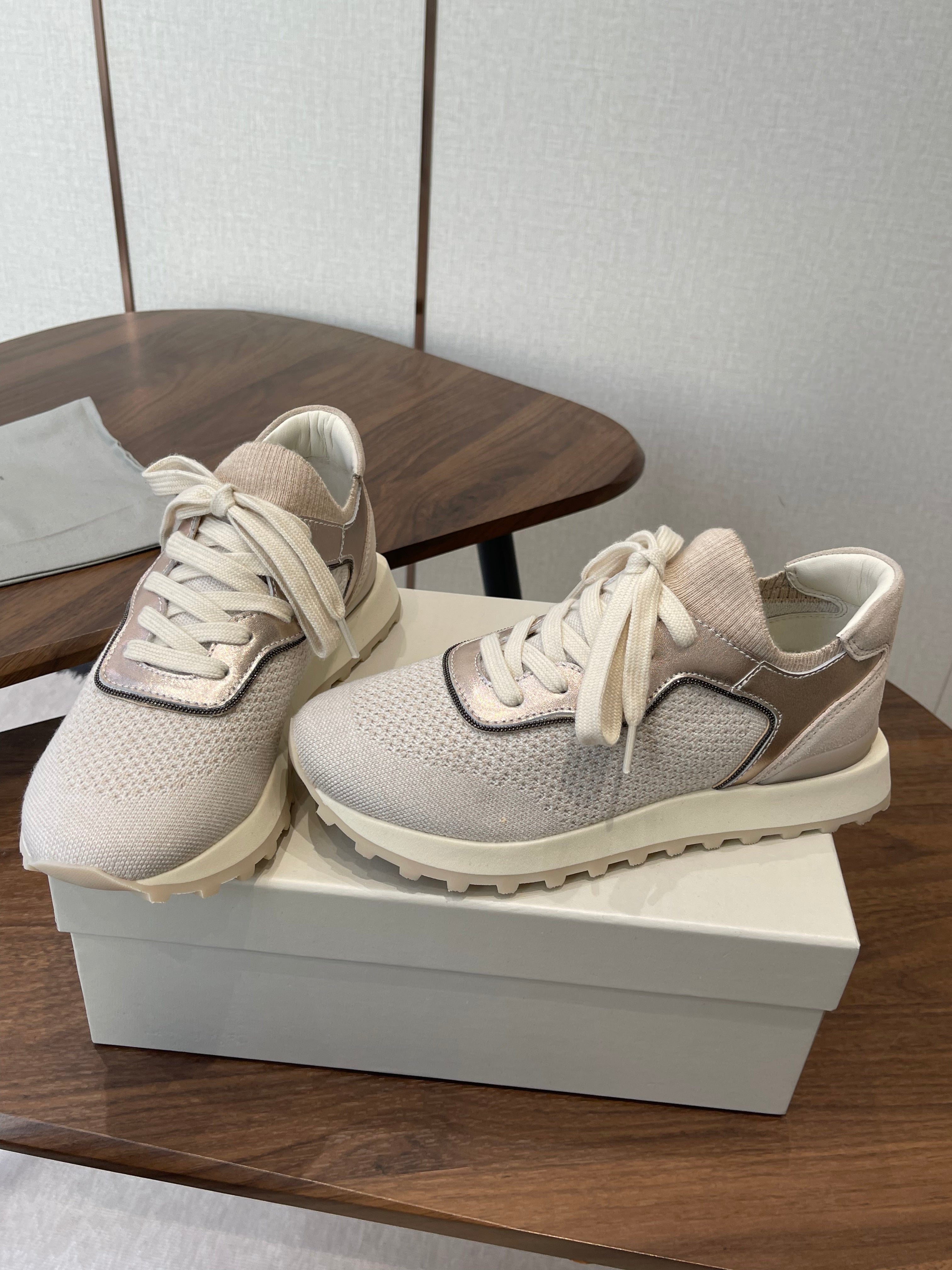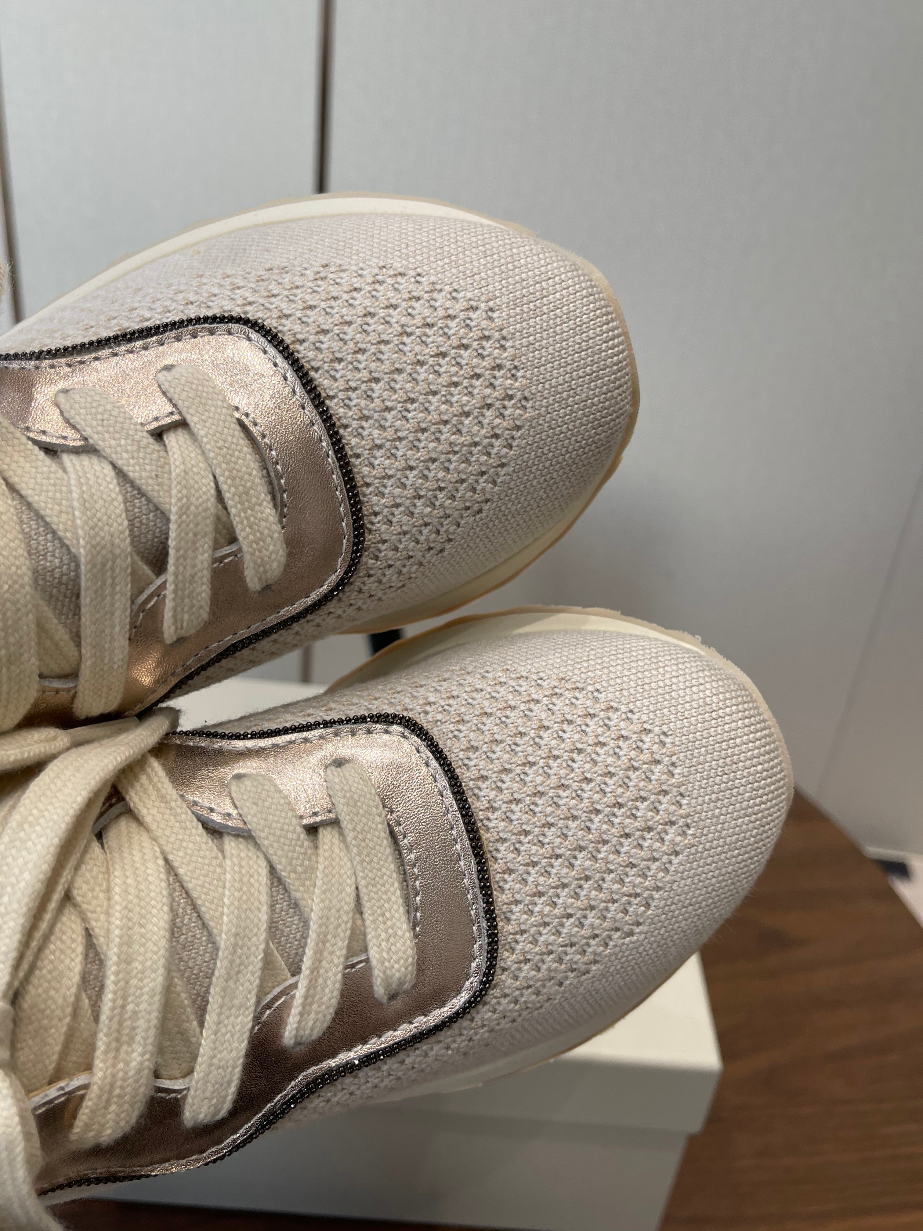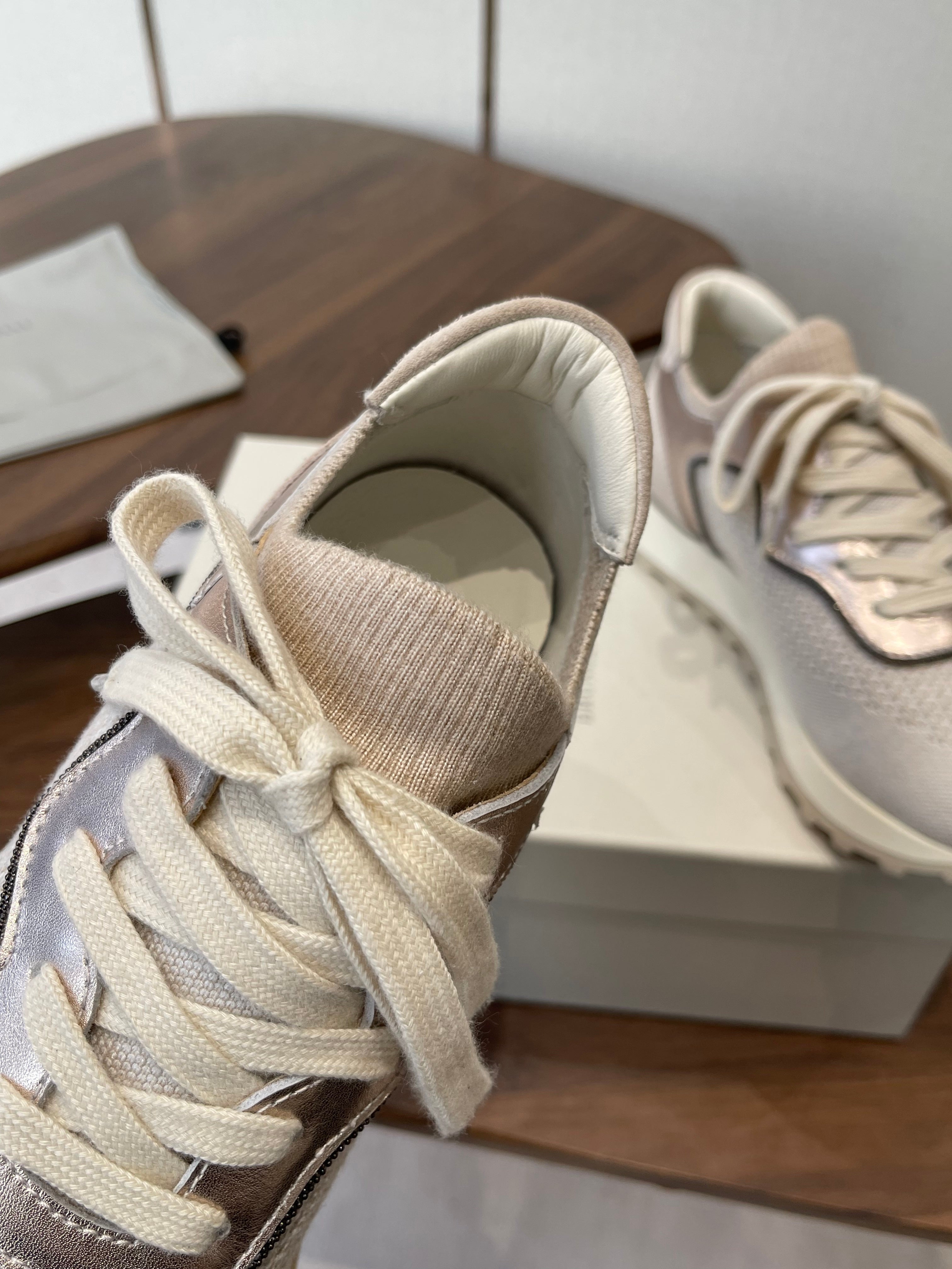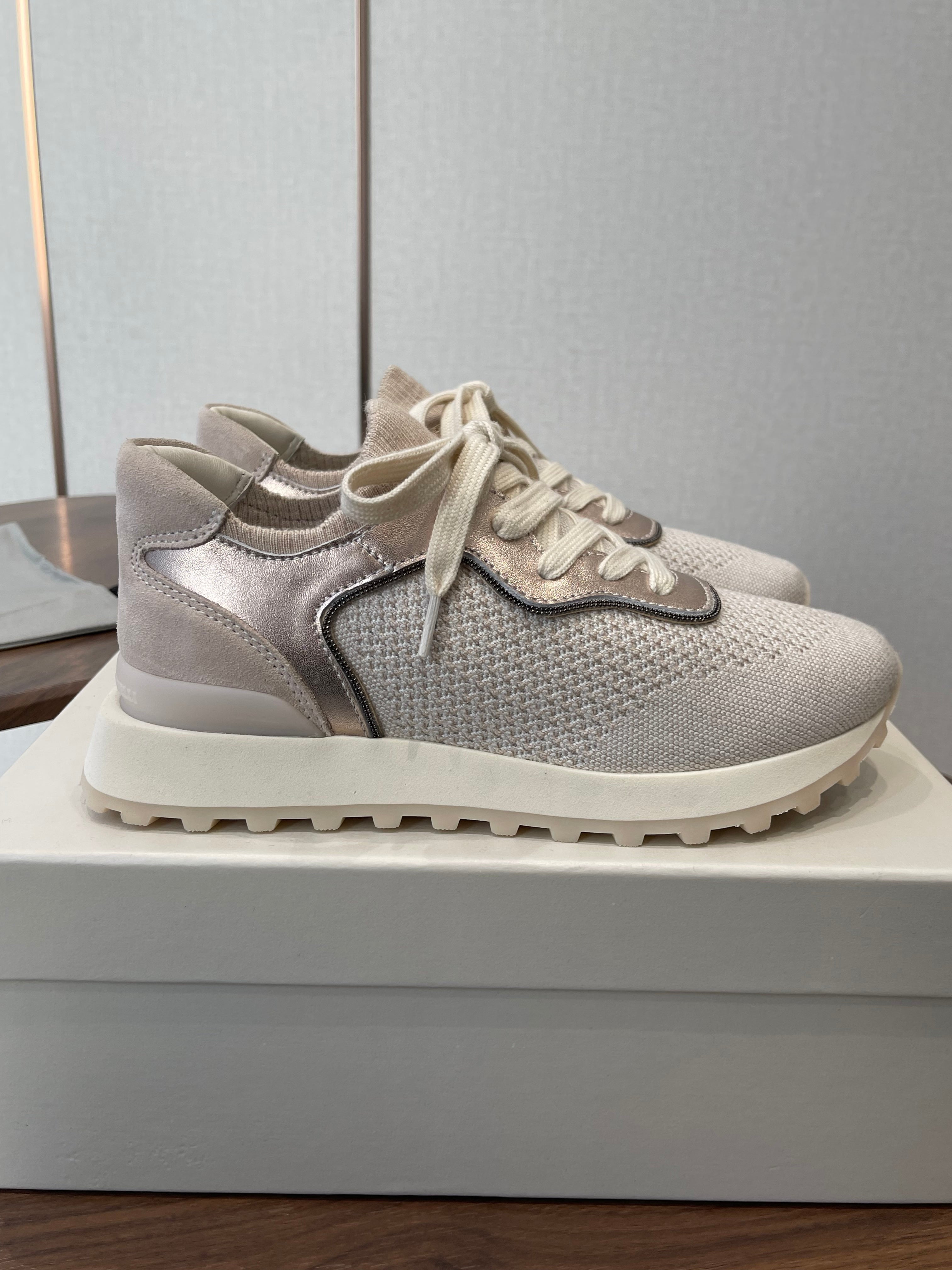 Brunello Runners With Shiny Eyelets Light Grey Suede Cotton 624471