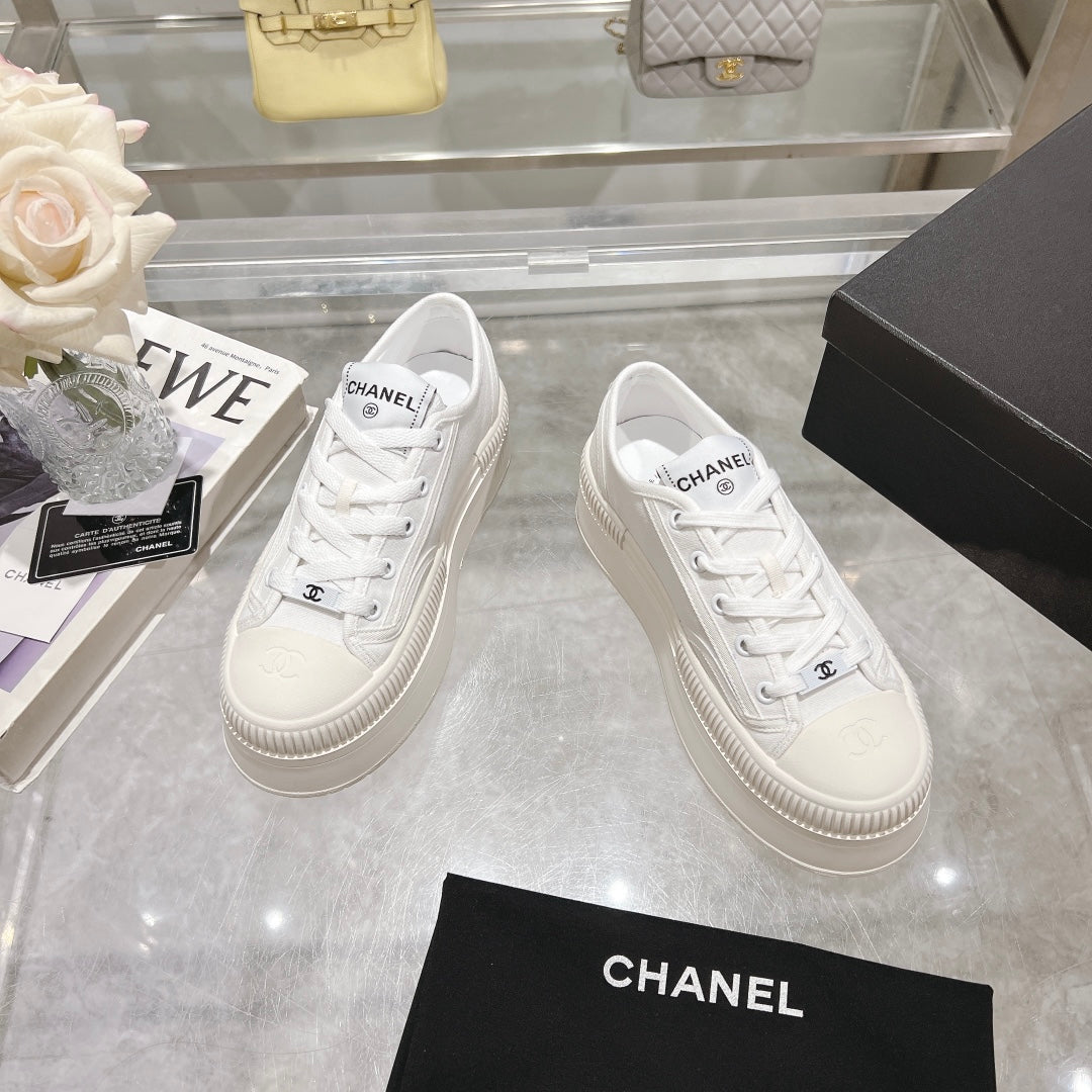 CC Sneaker White Fabric And Lambskin