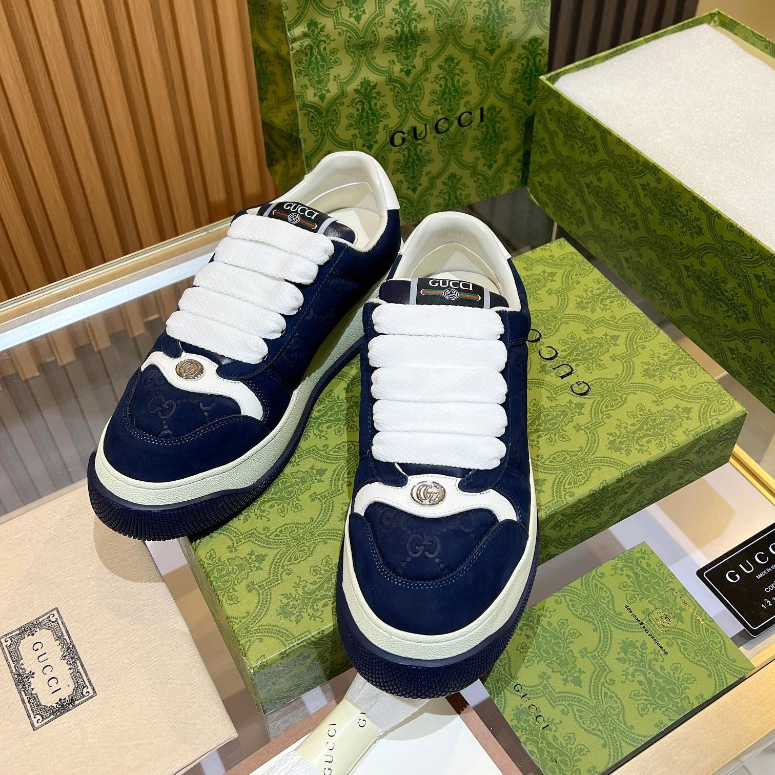 GG Men's Screener Sneaker Blue Canvas Sheepskin 523610