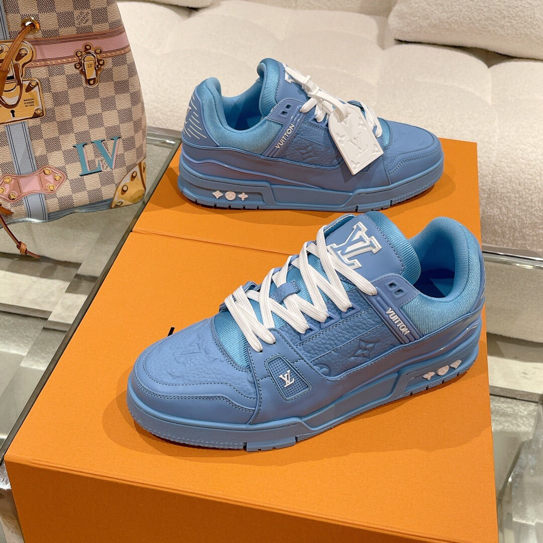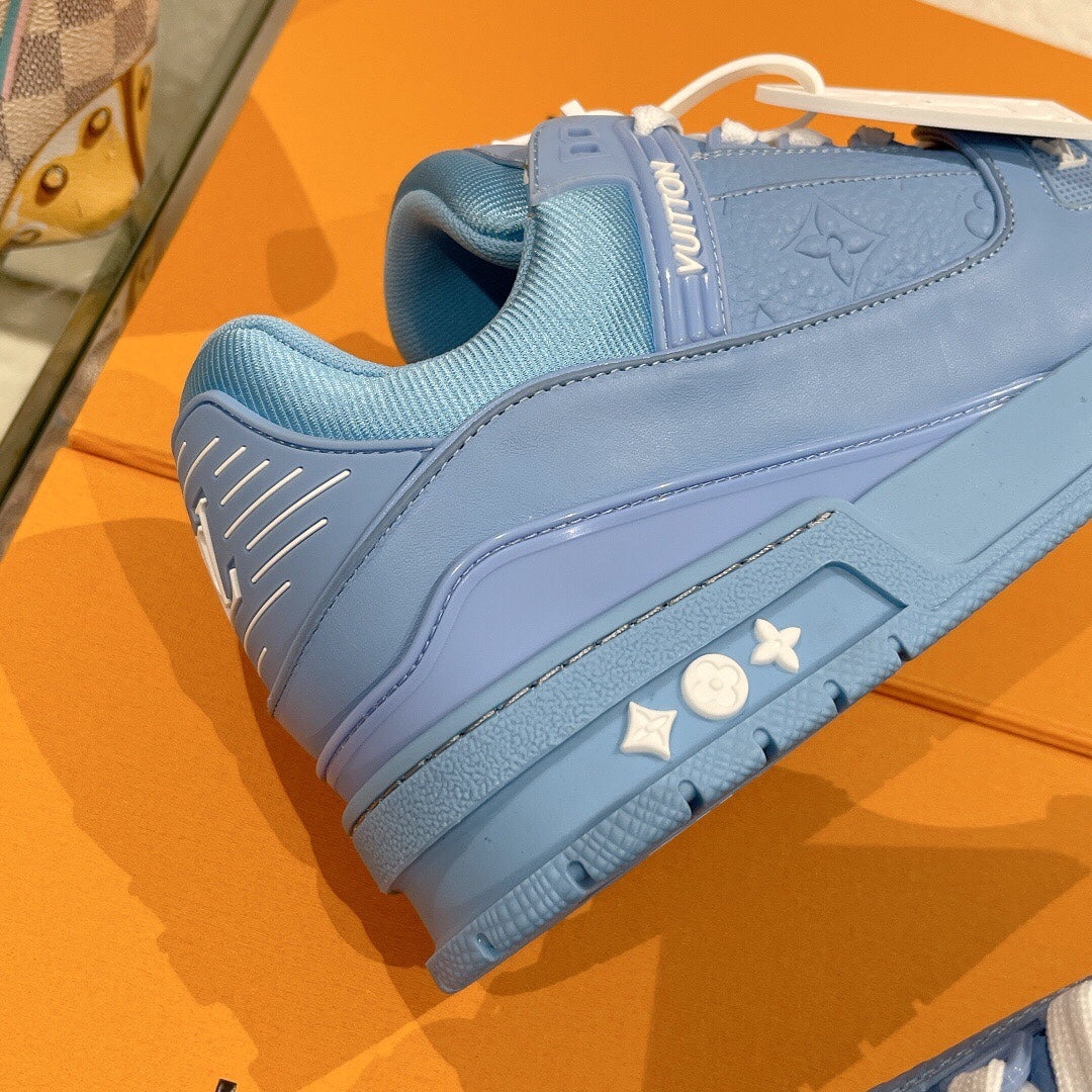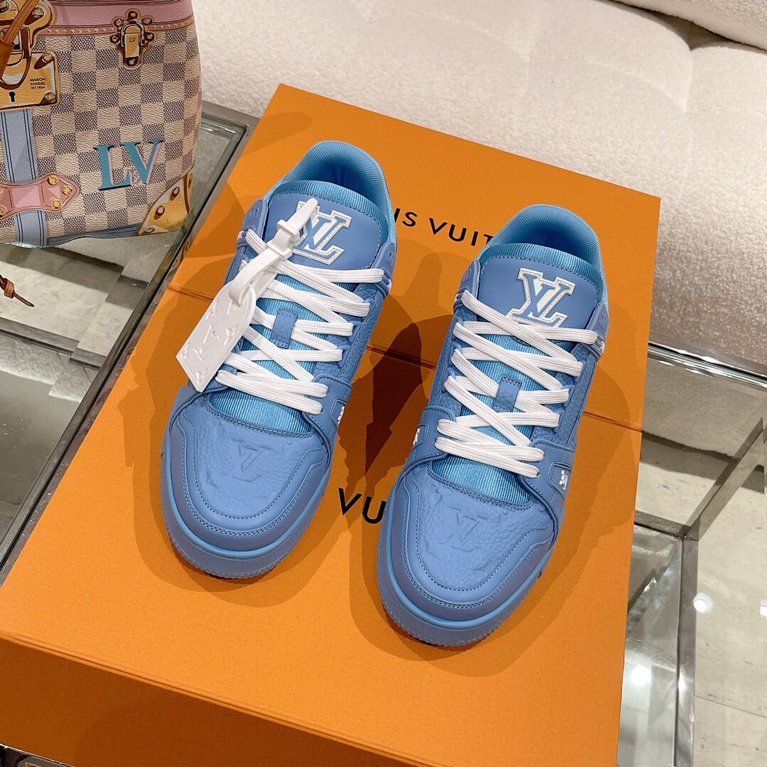LV 1AHTB0 Trainer Sneaker Blue Monogram-Embossed Leather Lace 626732