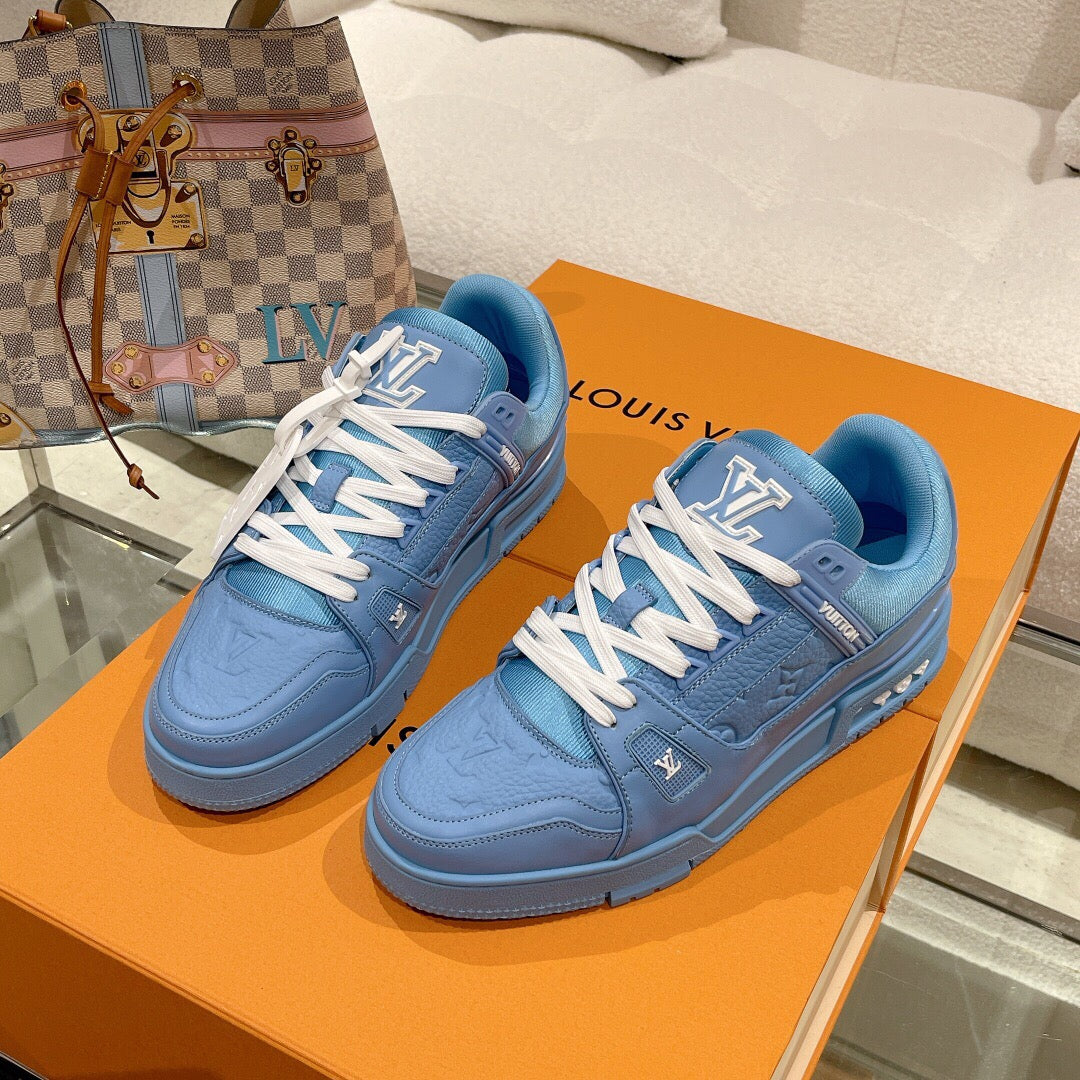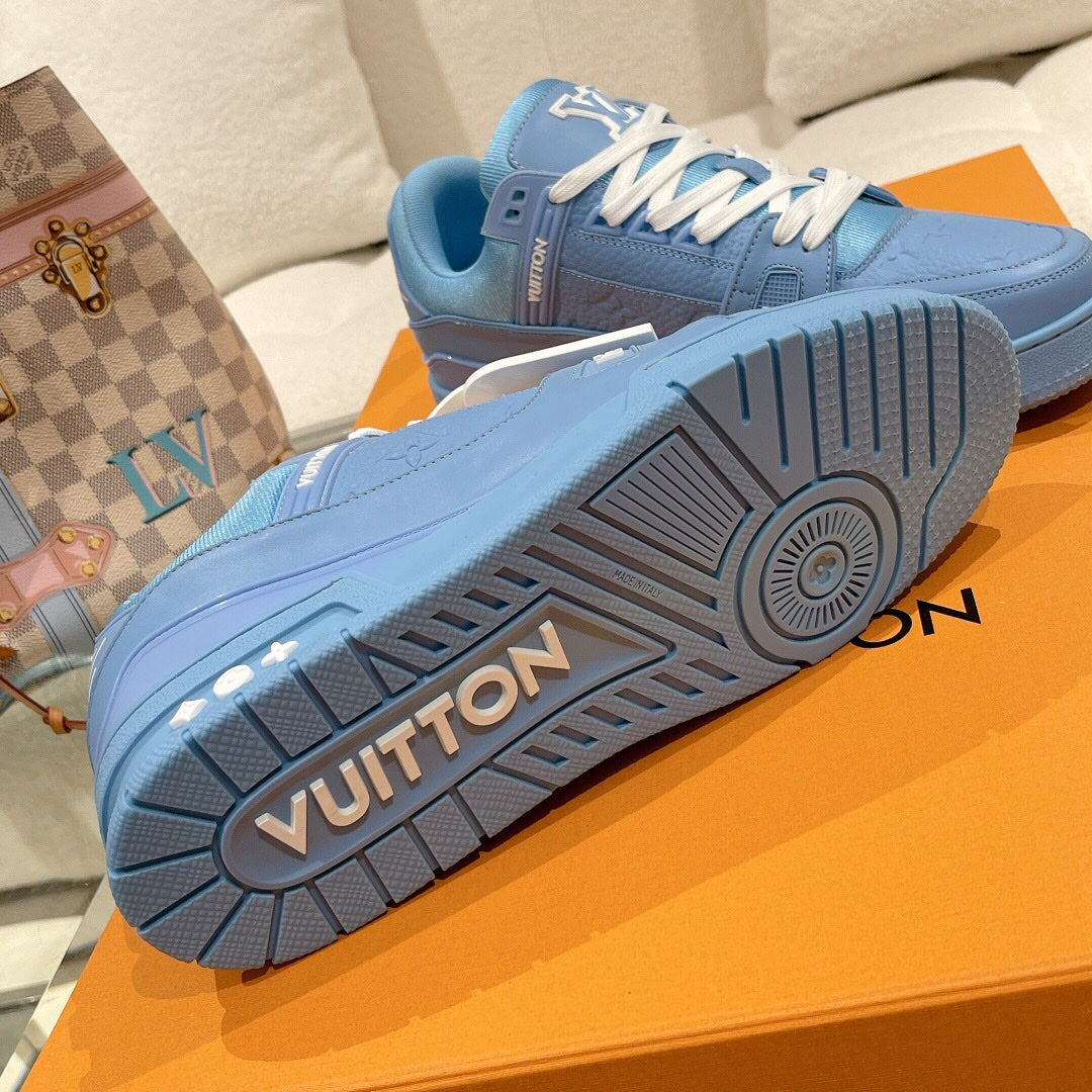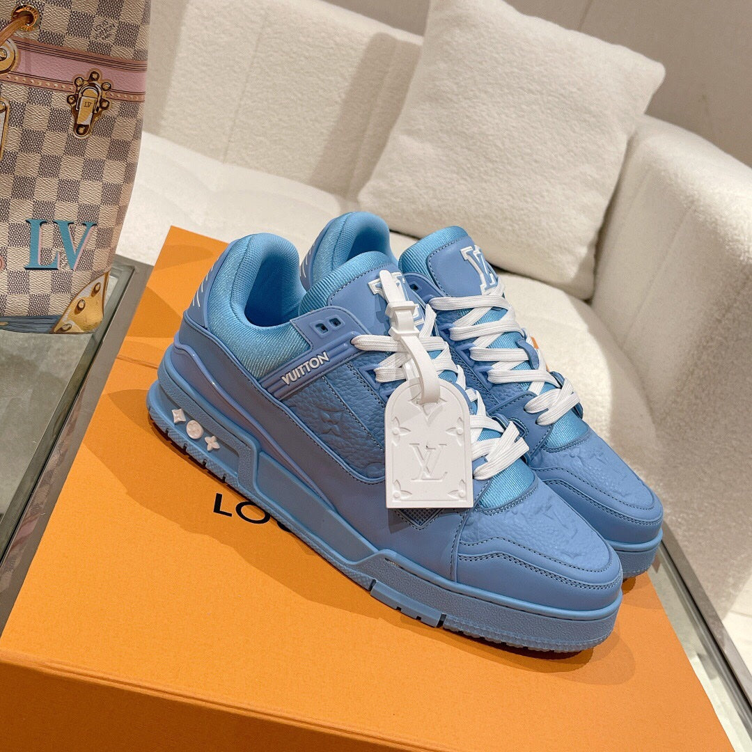 LV 1AHTB0 Trainer Sneaker Blue Monogram-Embossed Leather Lace 626732