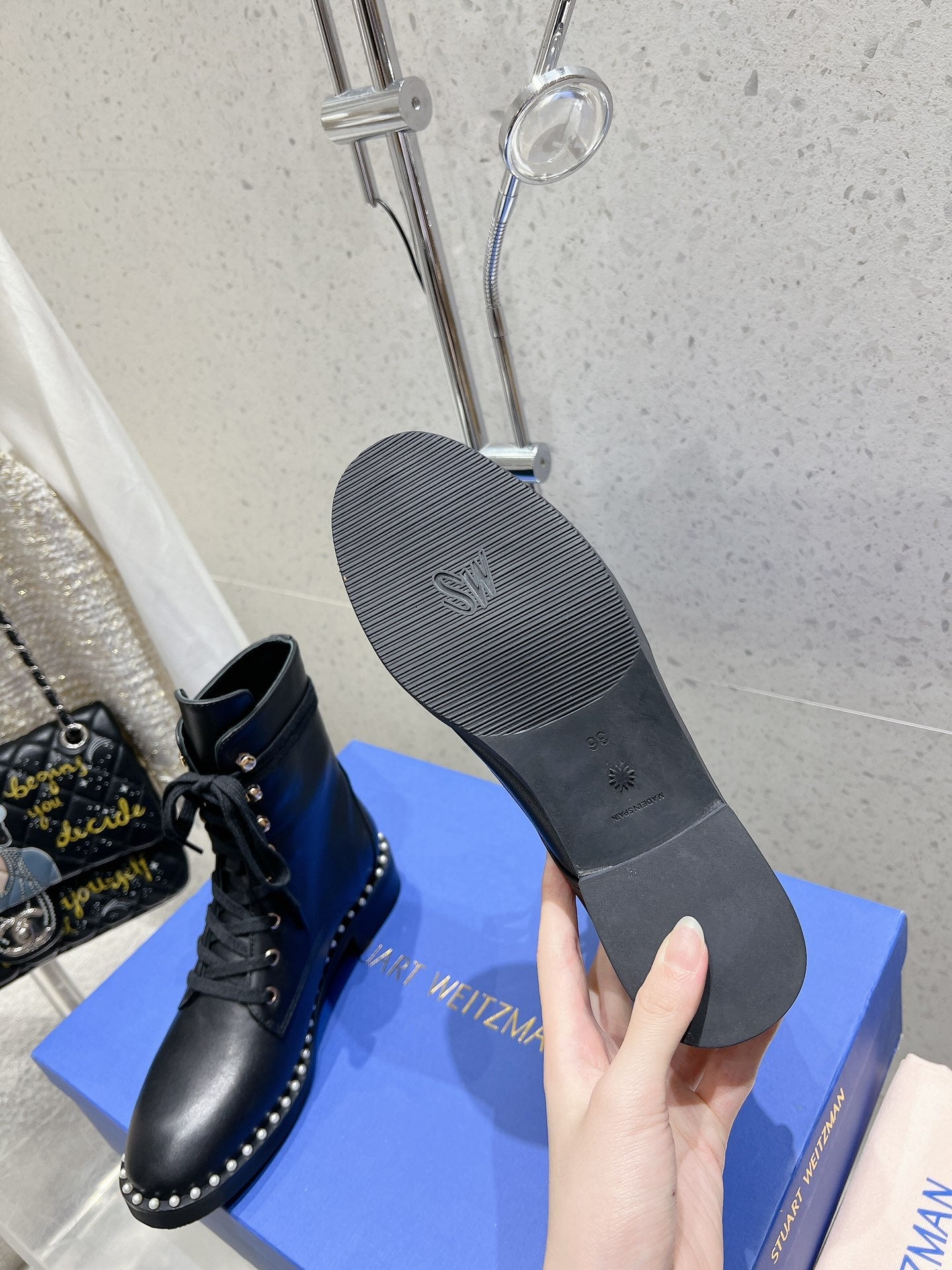 SW Mckenzee Boot with Pearl Chain Black Leather 554361