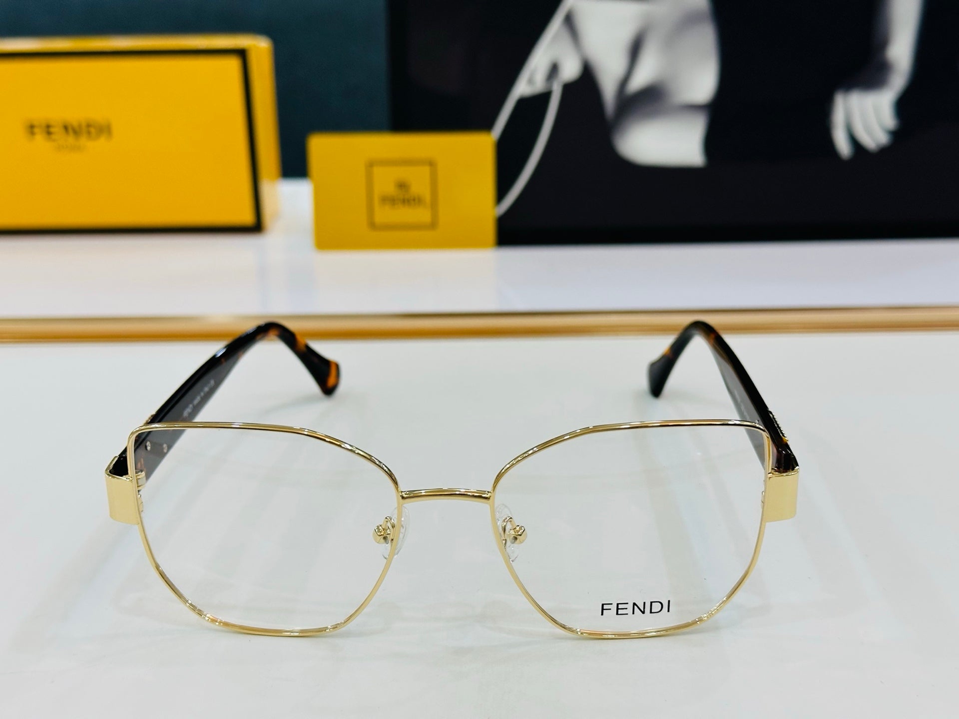 BAGUETTE SQUARE FRAME SUNGLASSES FE40051 IN METAL