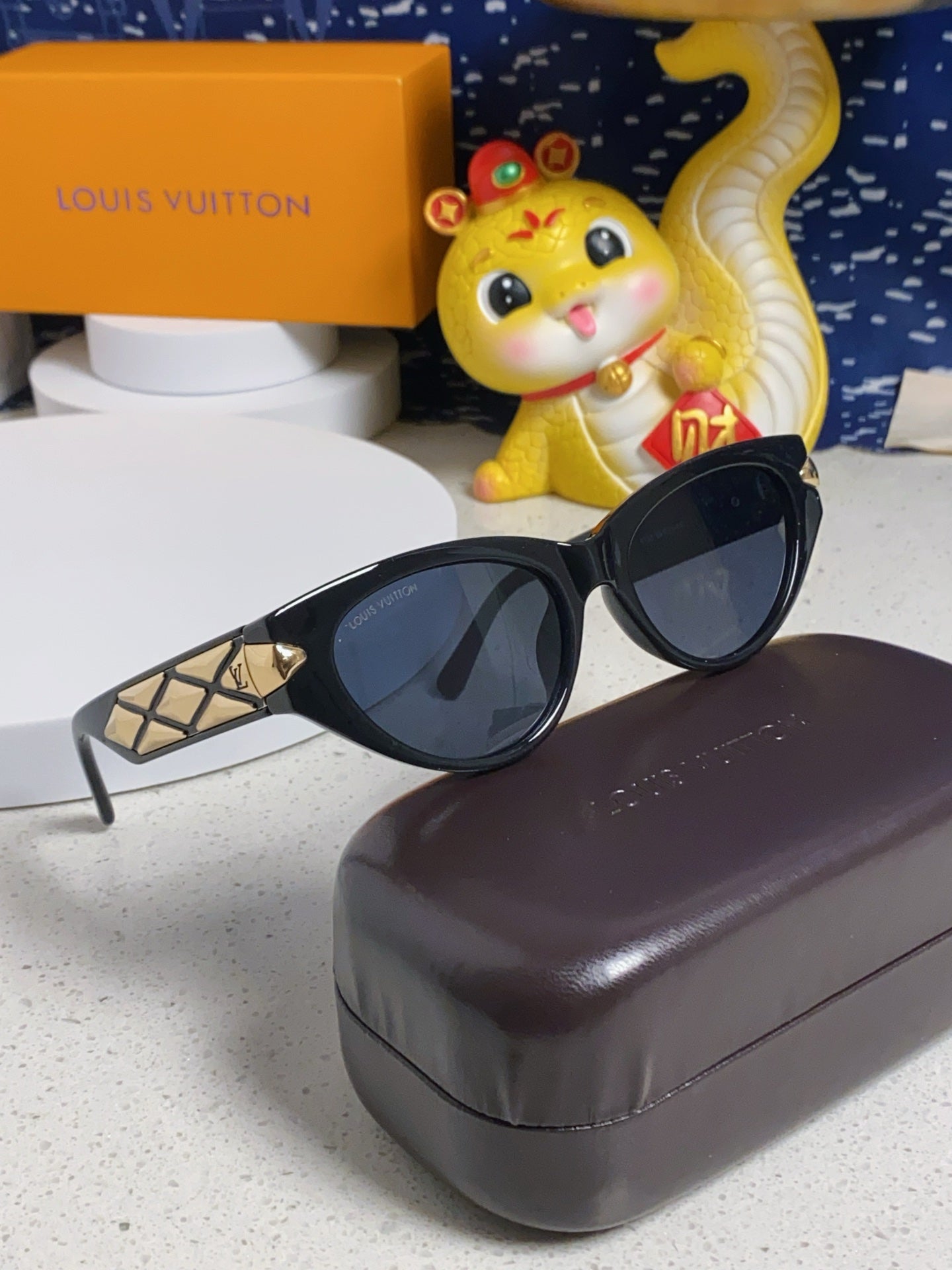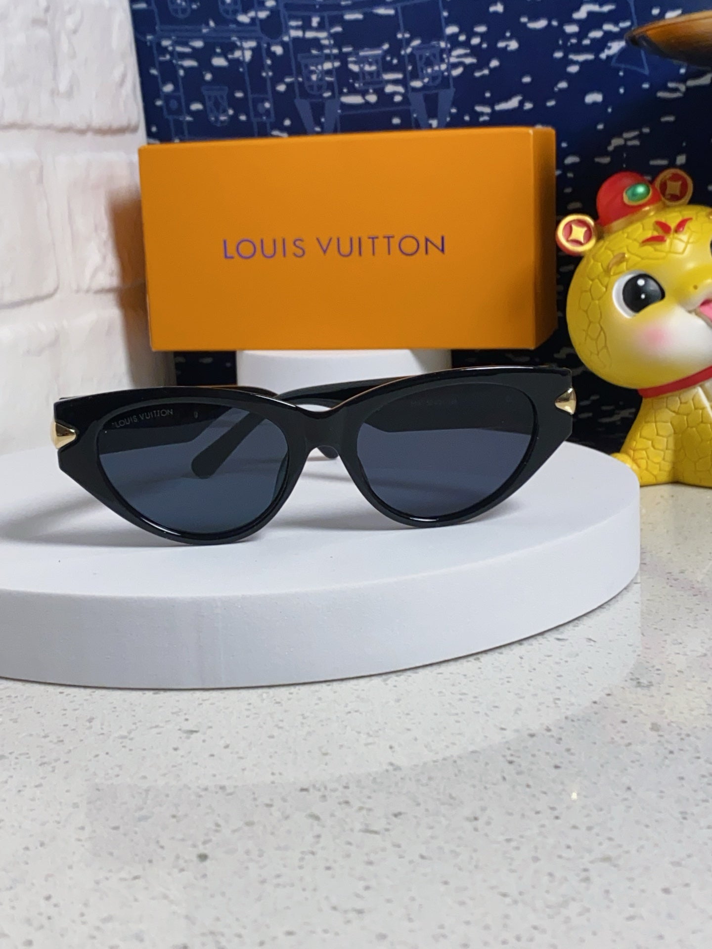 CAT EYE SUNGLASSES 576886 IN BLACK AND GOLD ACETATE