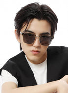 RECTANGULAR FRAME SUNGLASSES G7637 IN METAL AND ACETATE