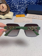 SQUARE SUNGLASSES 573318 IN GREEN ACETATE GREY SMOKE LENS