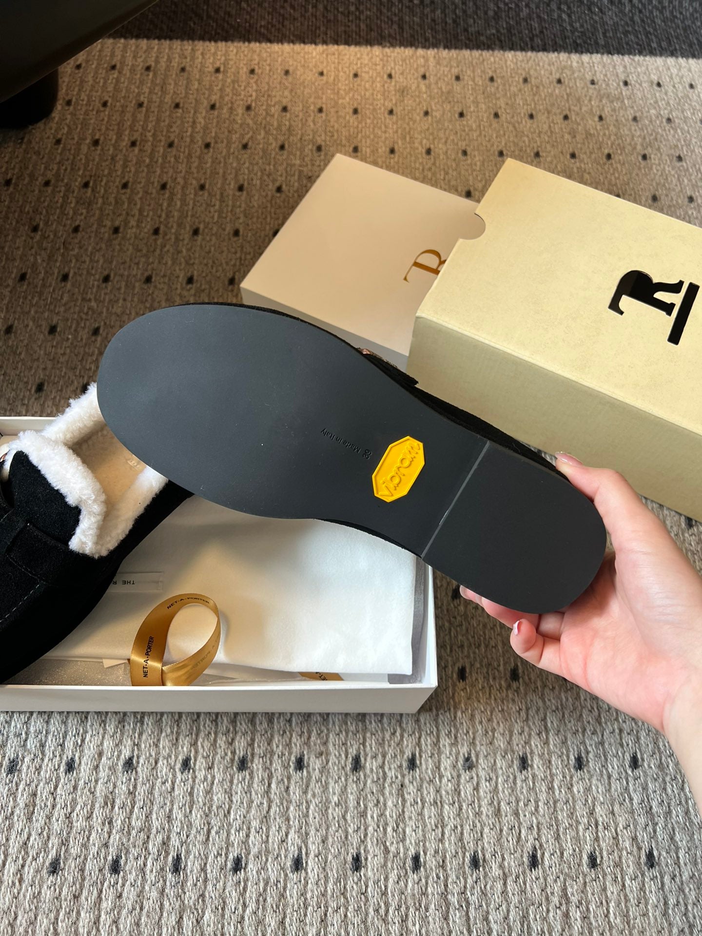 The Row 2025 Shearling Loafer Black White Suede Wool 561601