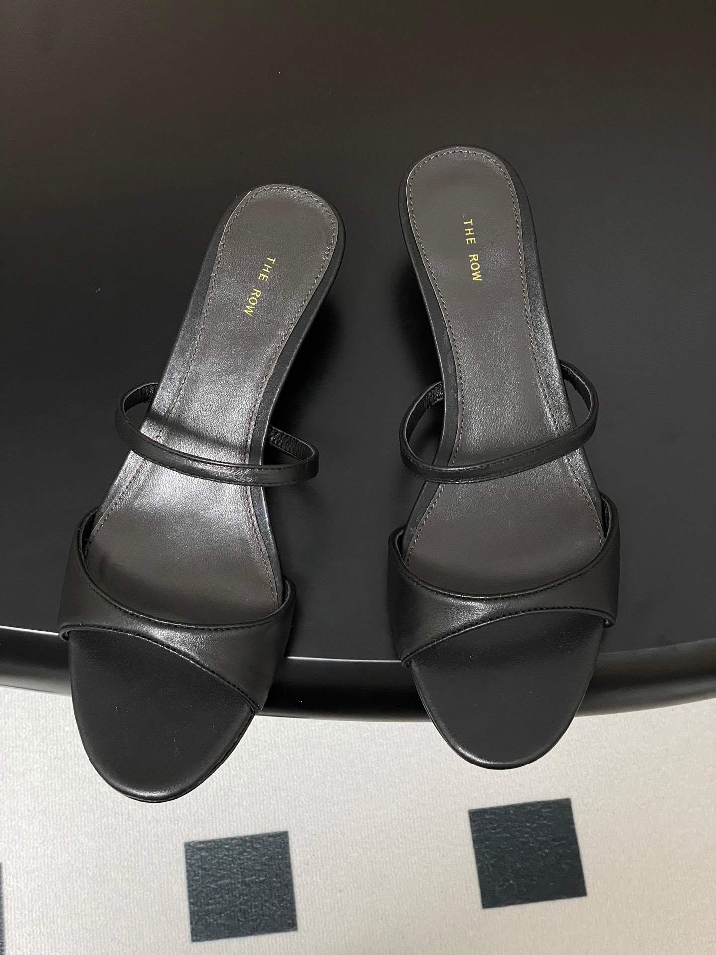 The Row 25S Strap High Heel Mule Sandals 35mm Black Sheepskin 286216