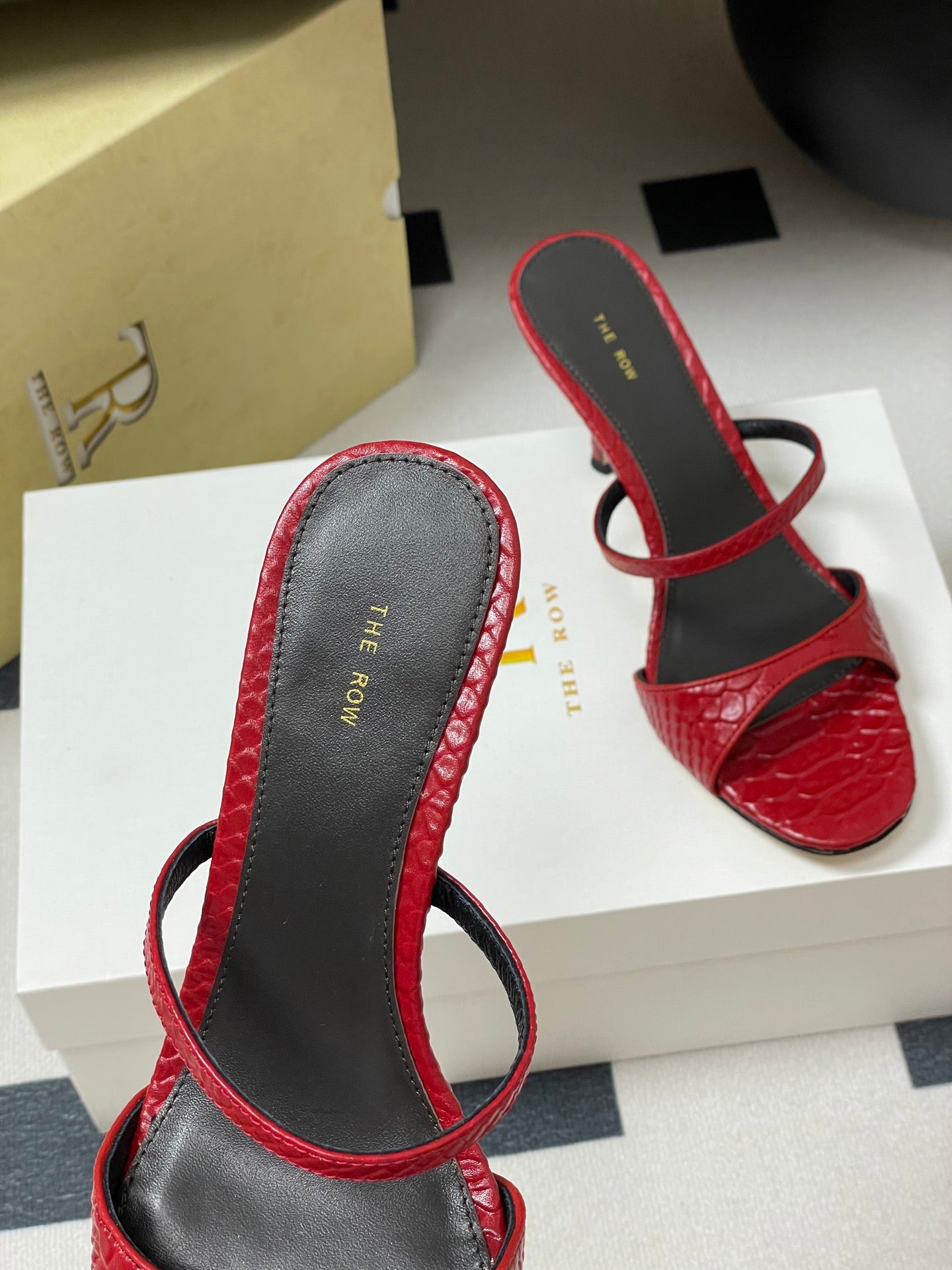 The Row 25S Strap High Heel Mule Sandals 85mm Red Snake Pattern Cowhide 286203