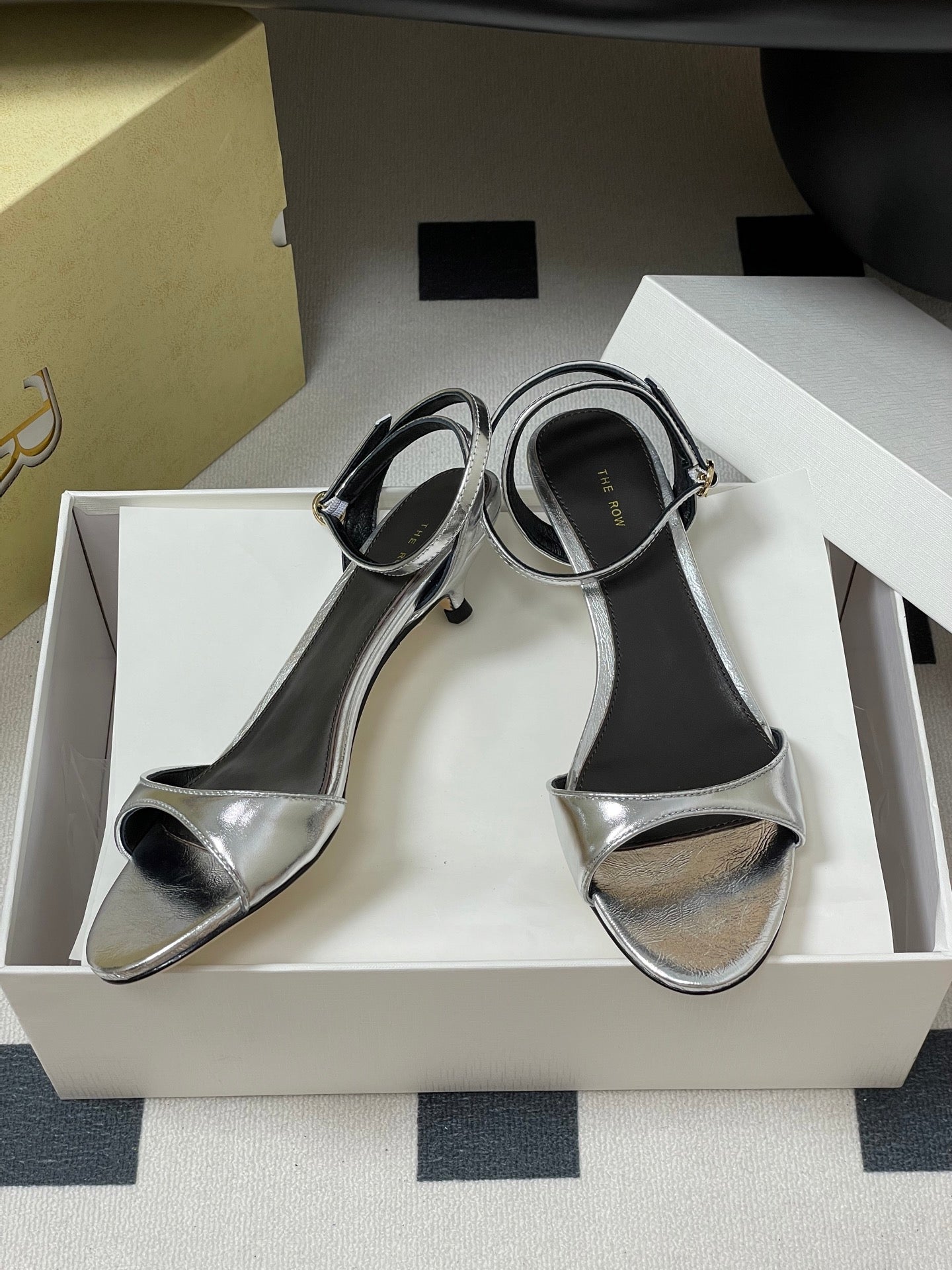 The Row 25S Strap High Heel Sandals 35mm Black Mix Silver Metallic Cowhide 286201