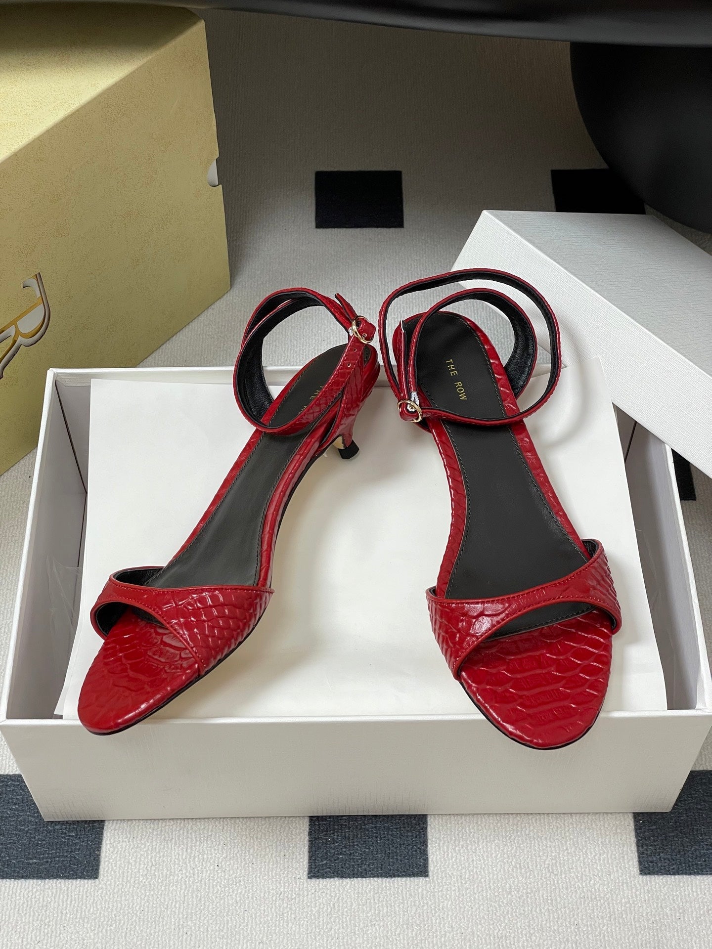The Row 25S Strap High Heel Sandals 35mm Red Snake Pattern Cowhide 286195