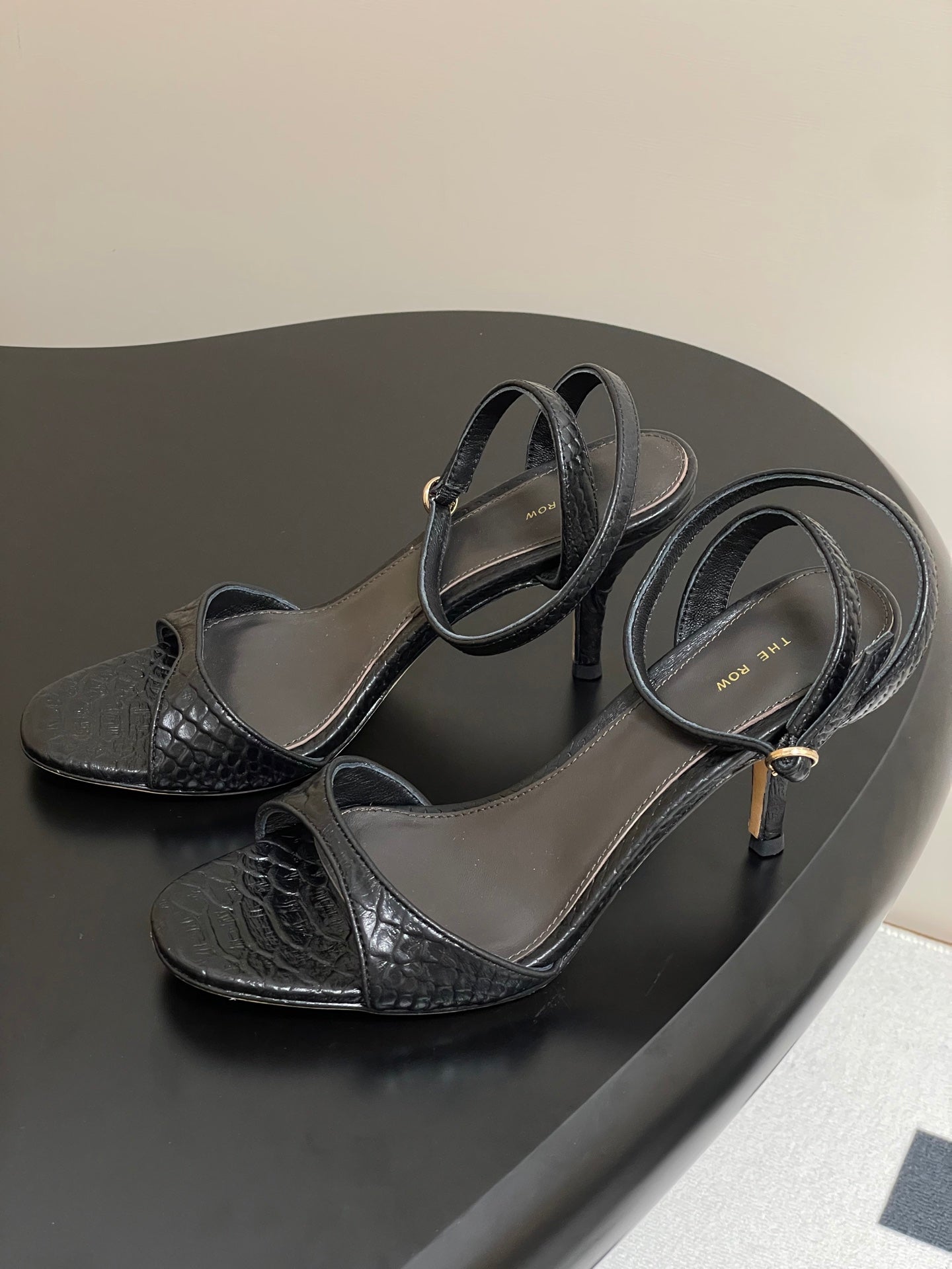 The Row 25S Strap High Heel Sandals 85mm Black Snake Pattern Cowhide 286189