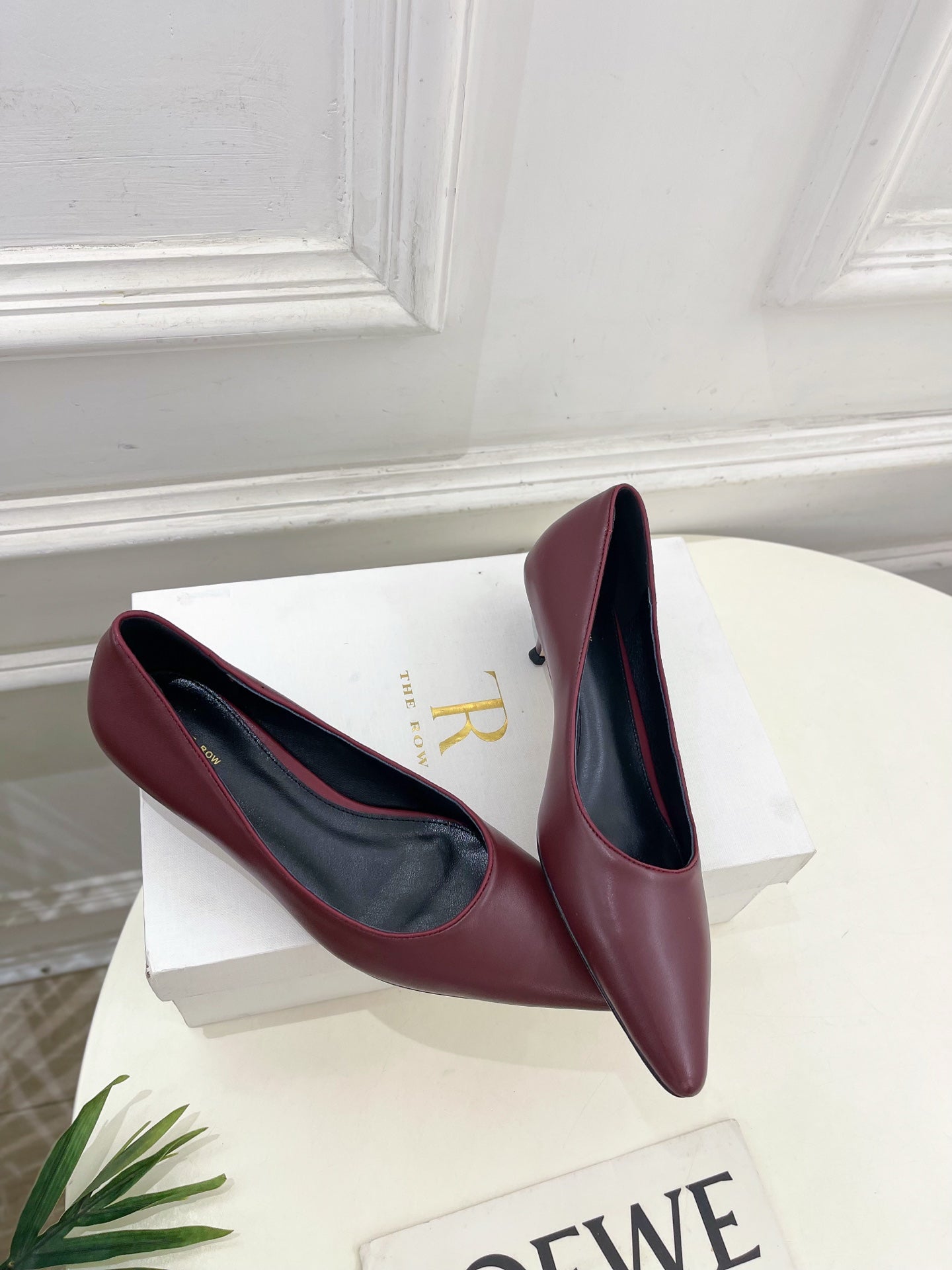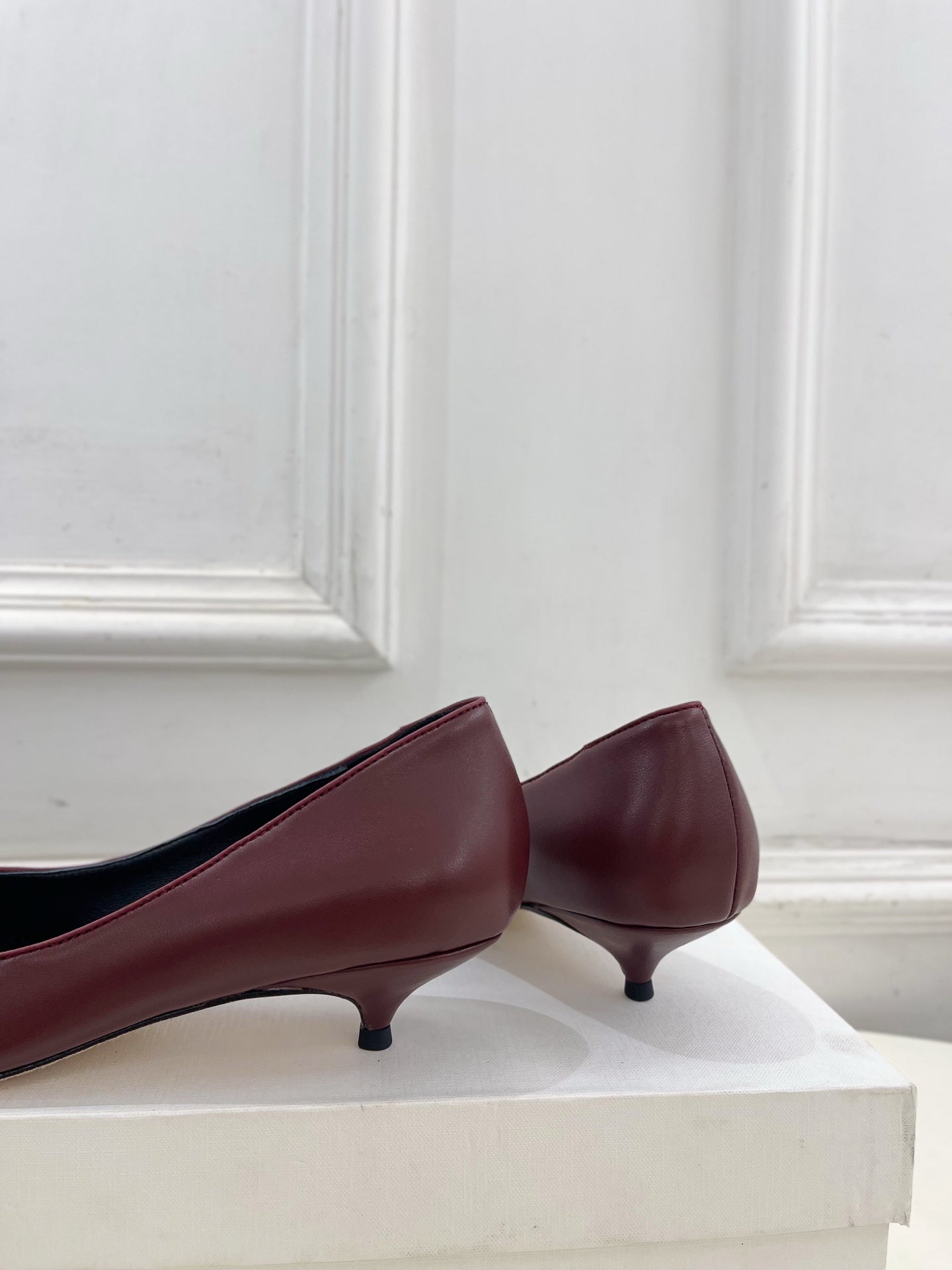 The Row 25ss TR Kitten heel Pointed Toe Shoes 35mm Burgundy Sheepskin 425559
