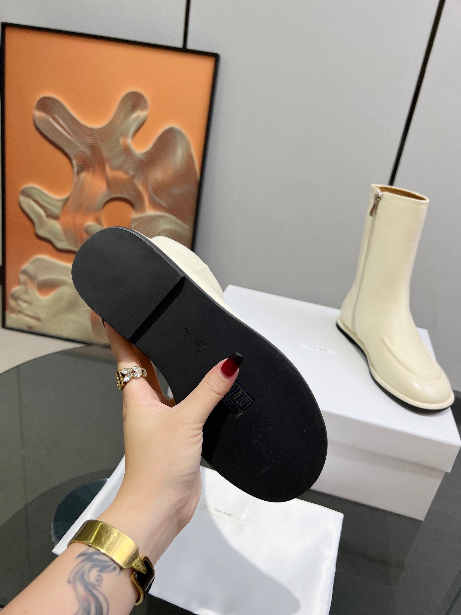 The Row Canal Boots Cream Cowhide 455038