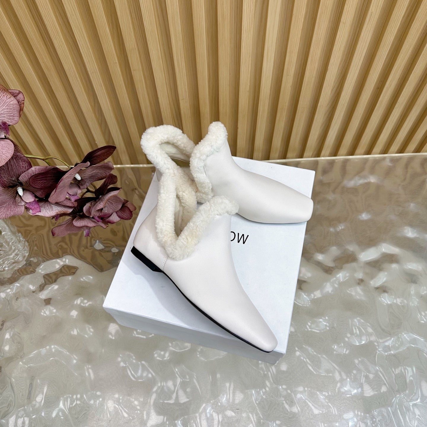 The Row Eros Ankle Boots White Shearling-trimmed Sheepskin 436643