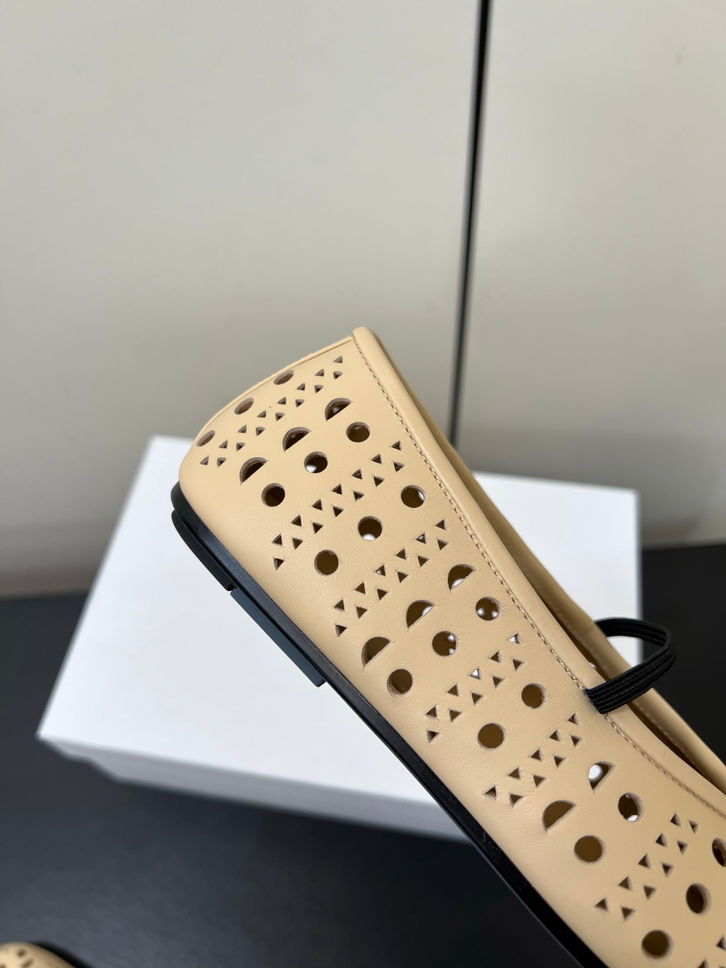 The Row Garden Mary Janes Flats Beige Calfskin 340032
