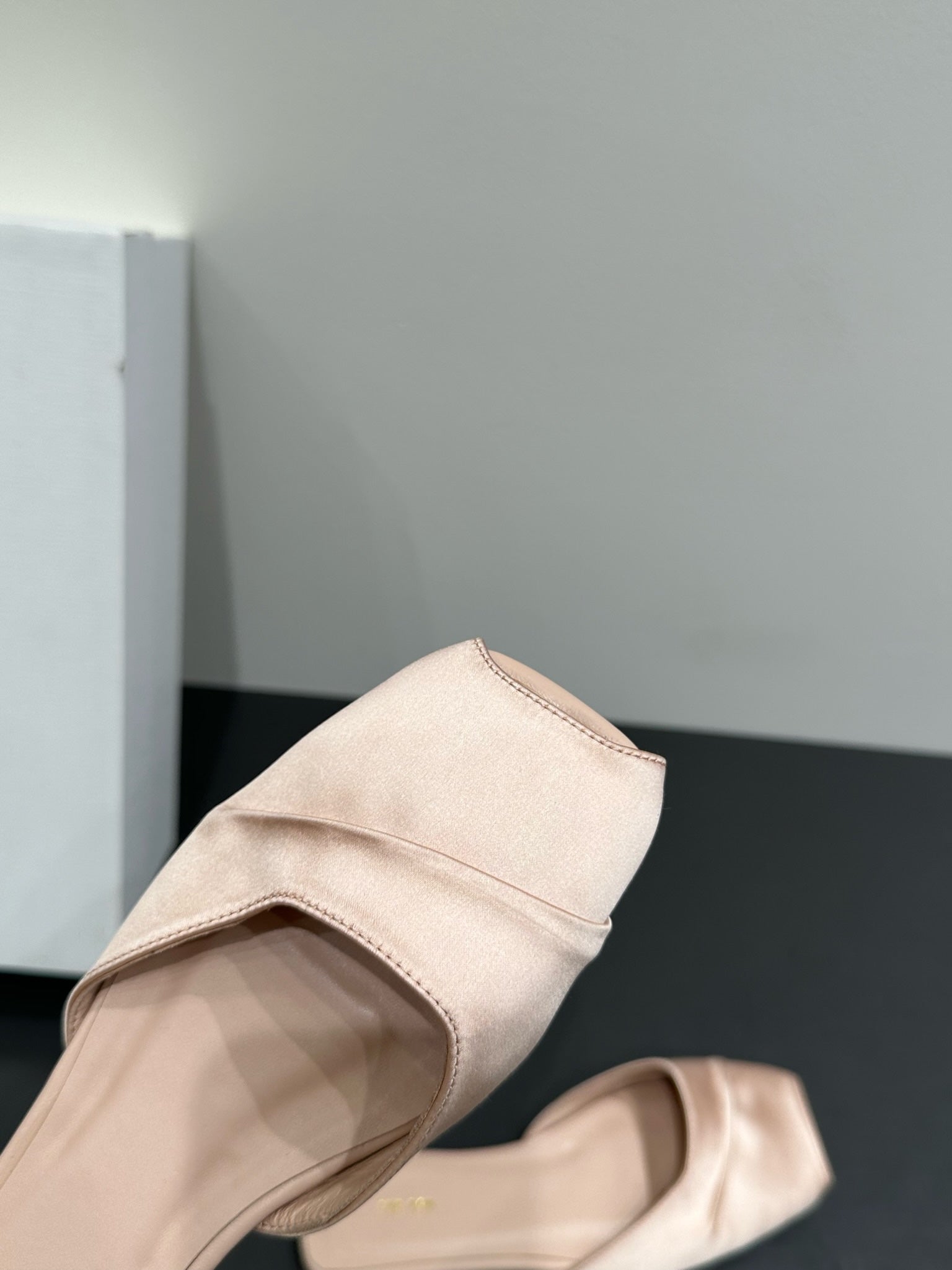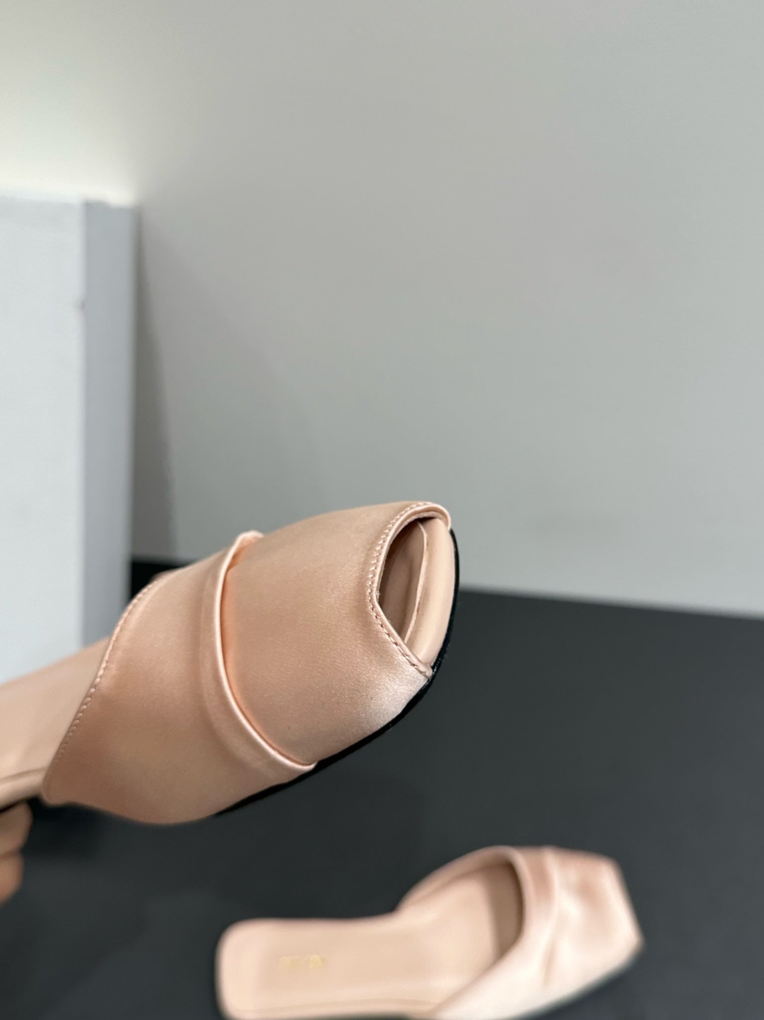 The Row Mule Sandal Beige Satin And Sheepskin Lining 337507