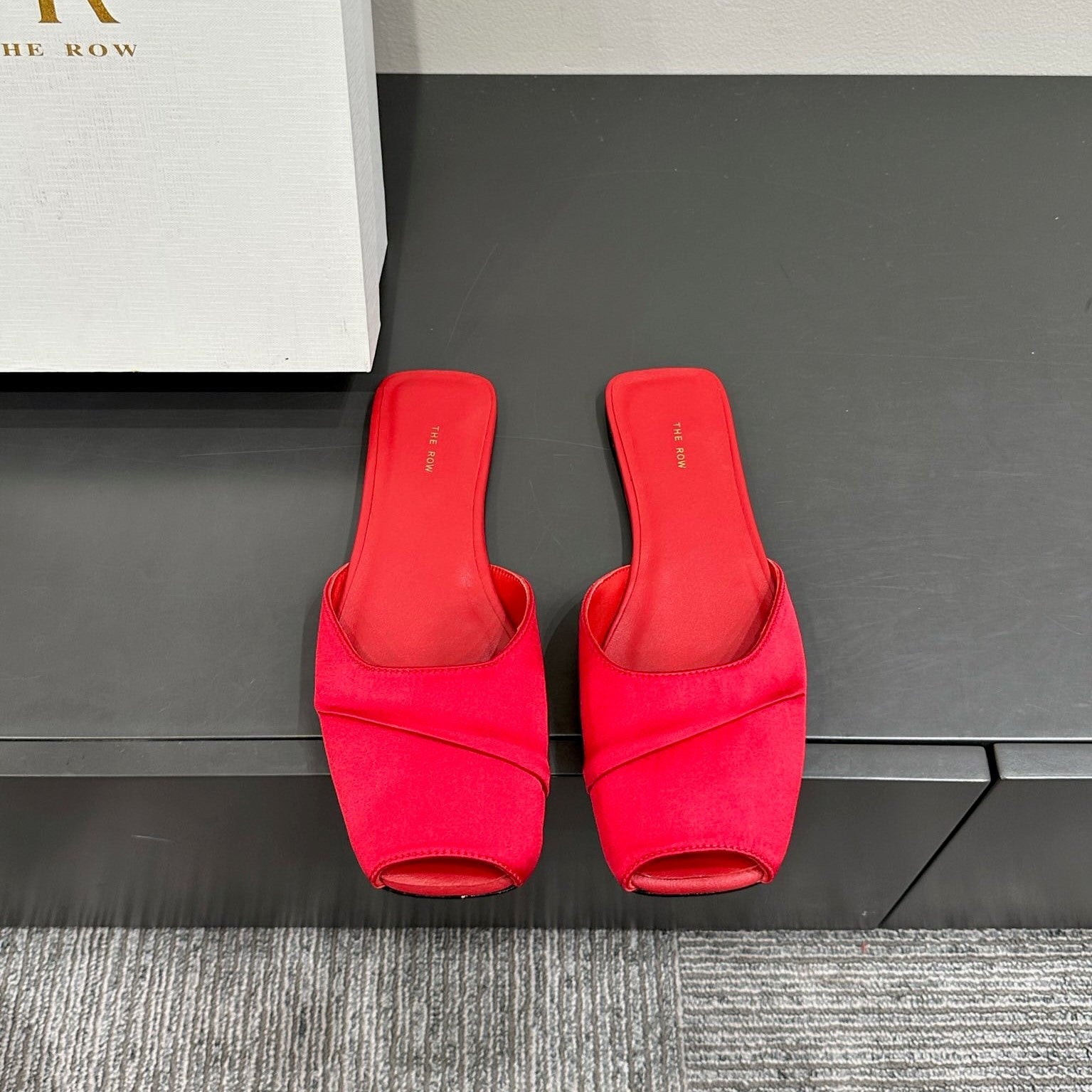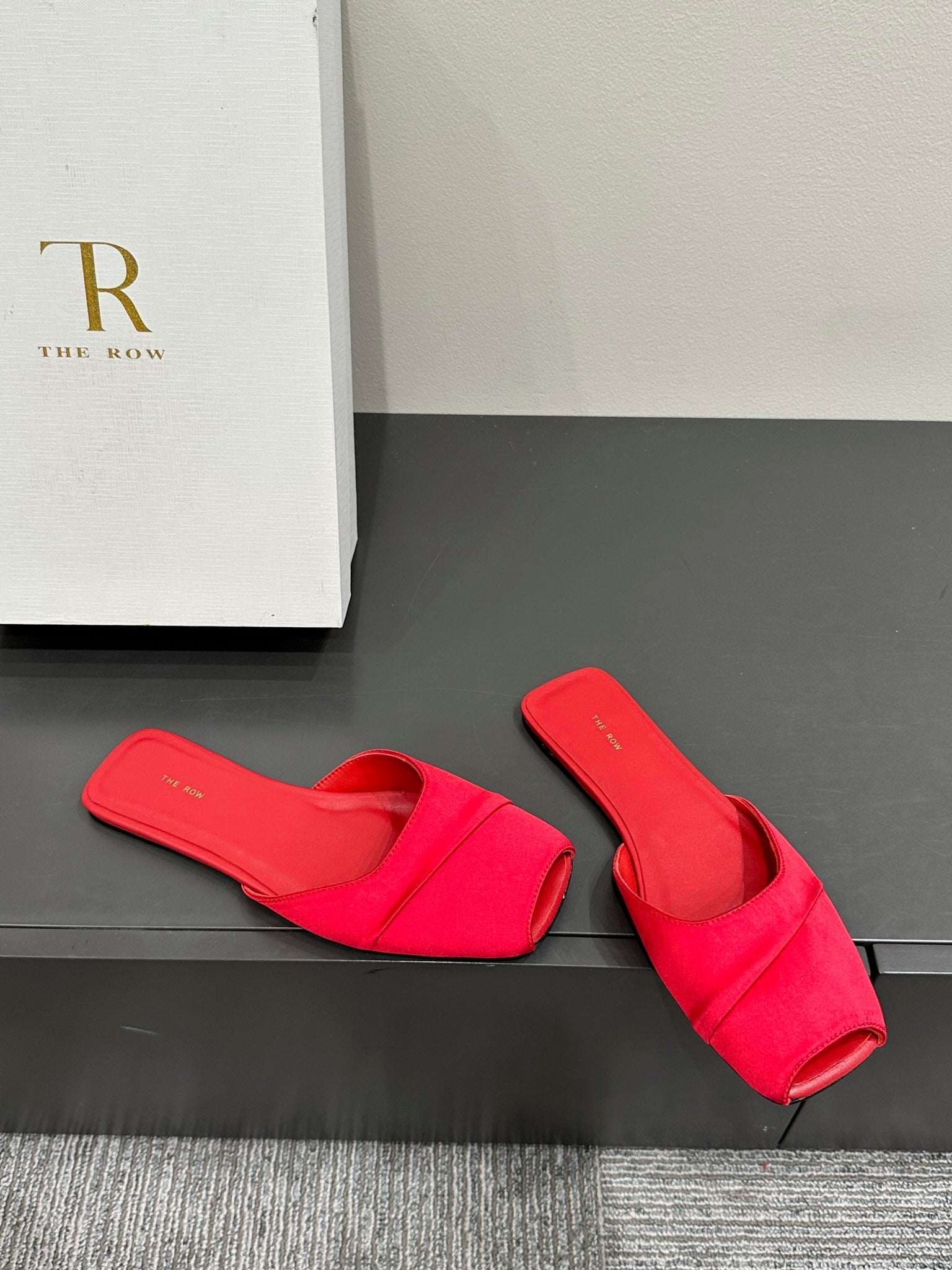 The Row Mule Sandal Red Satin And Sheepskin Lining 337506