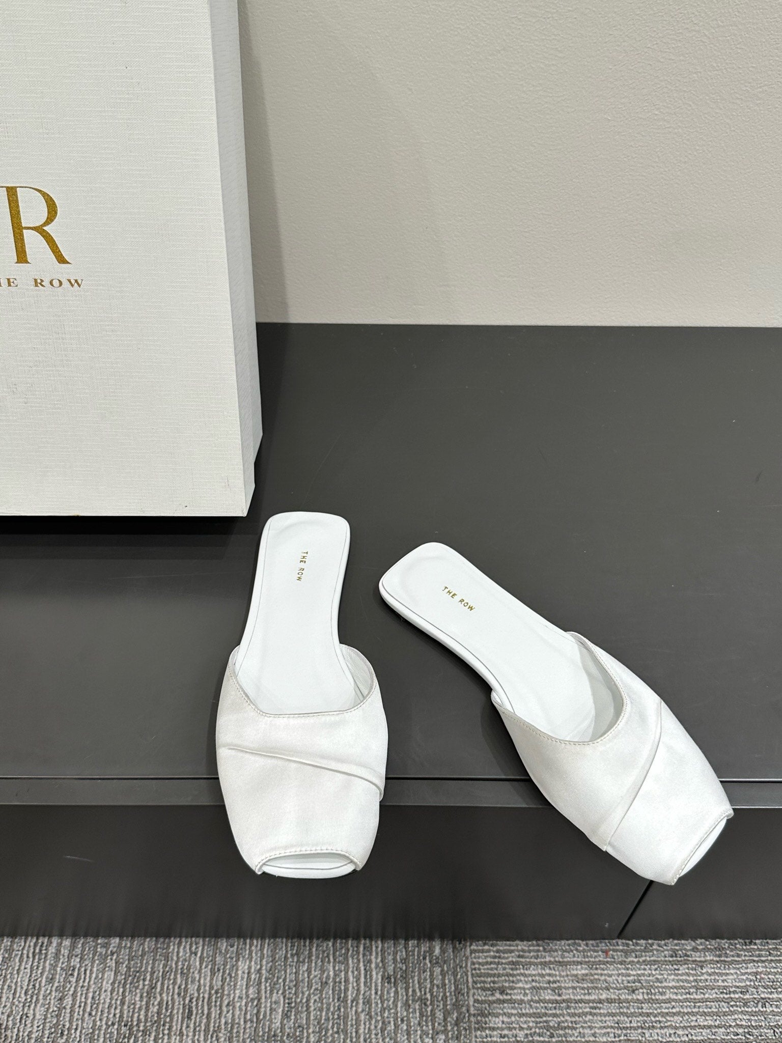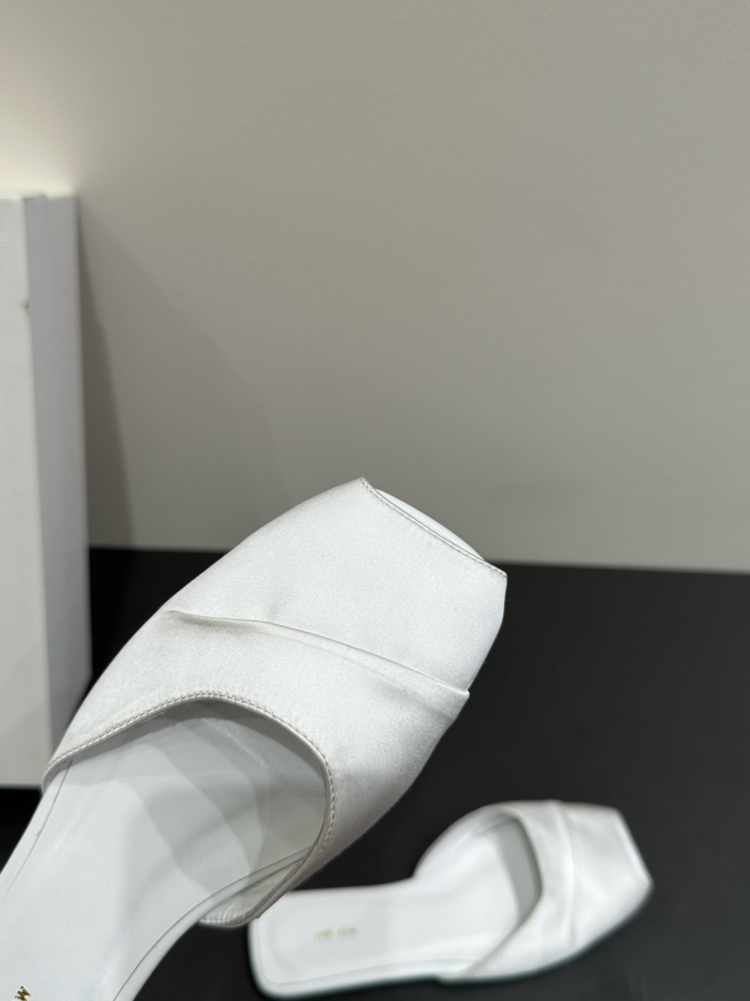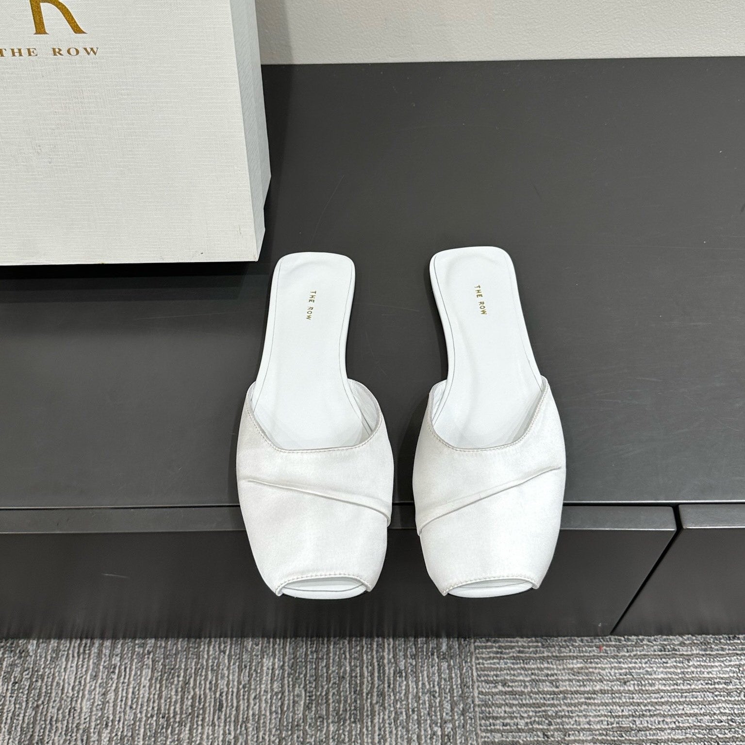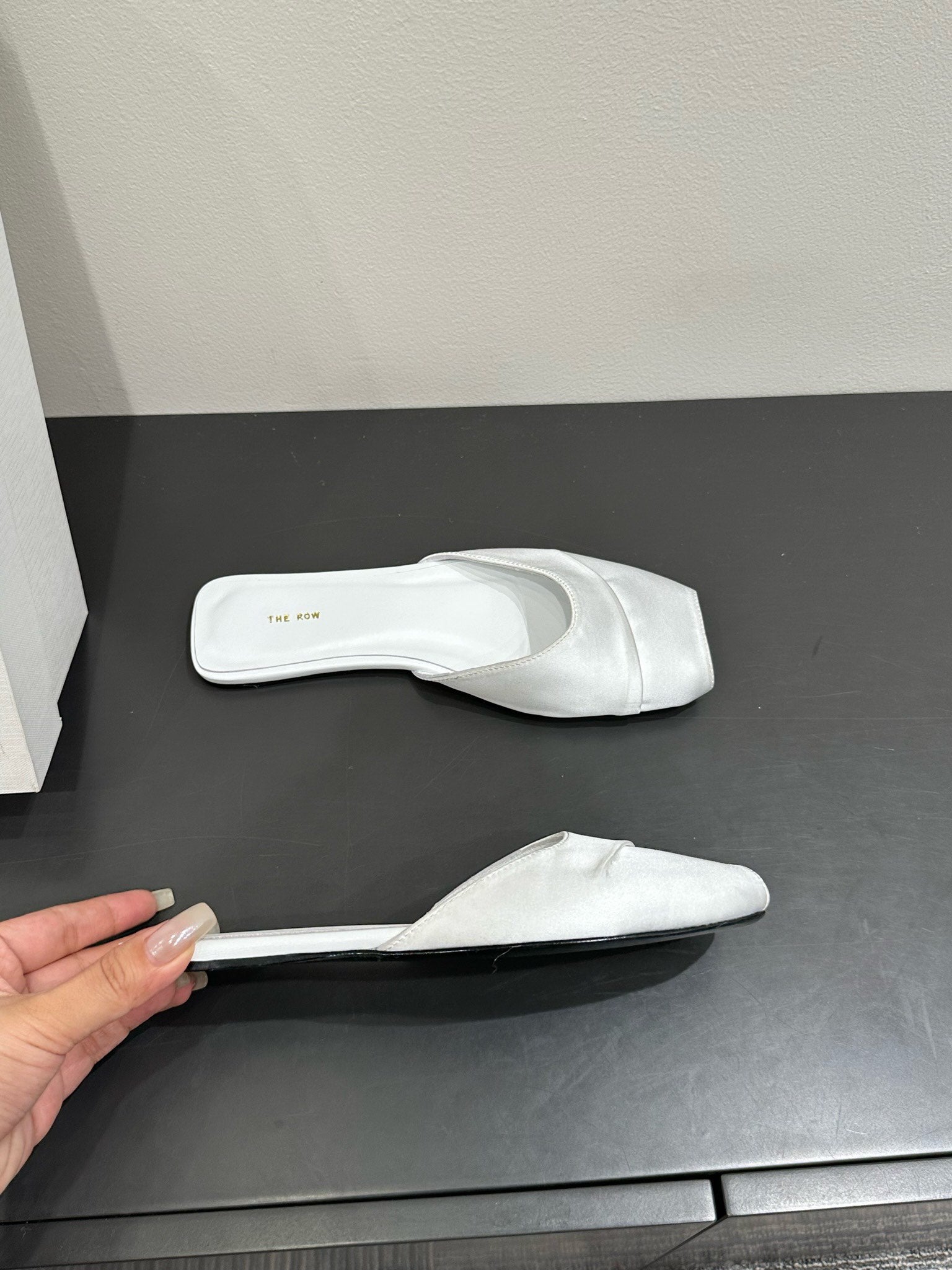 The Row Mule Sandal White Satin And Sheepskin Lining 337505