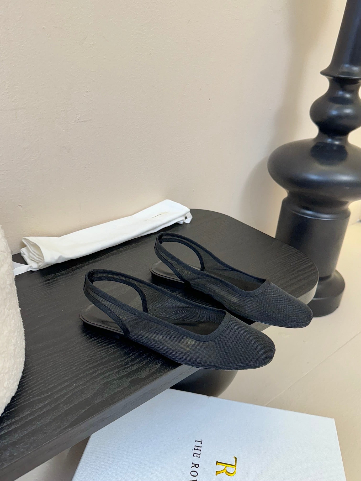The Row Slingback Flat 10mm Black Mesh And Sheepskin 334168