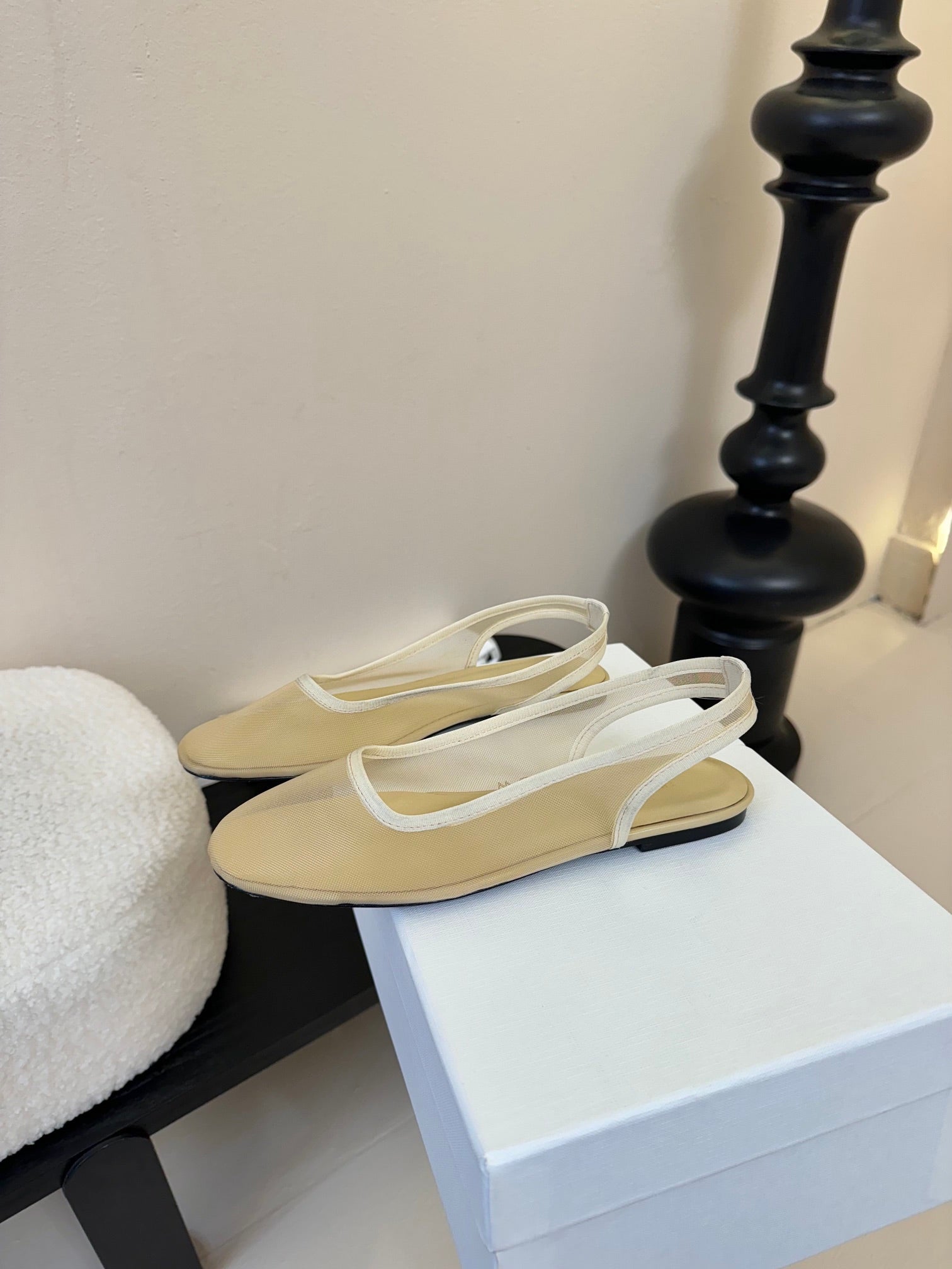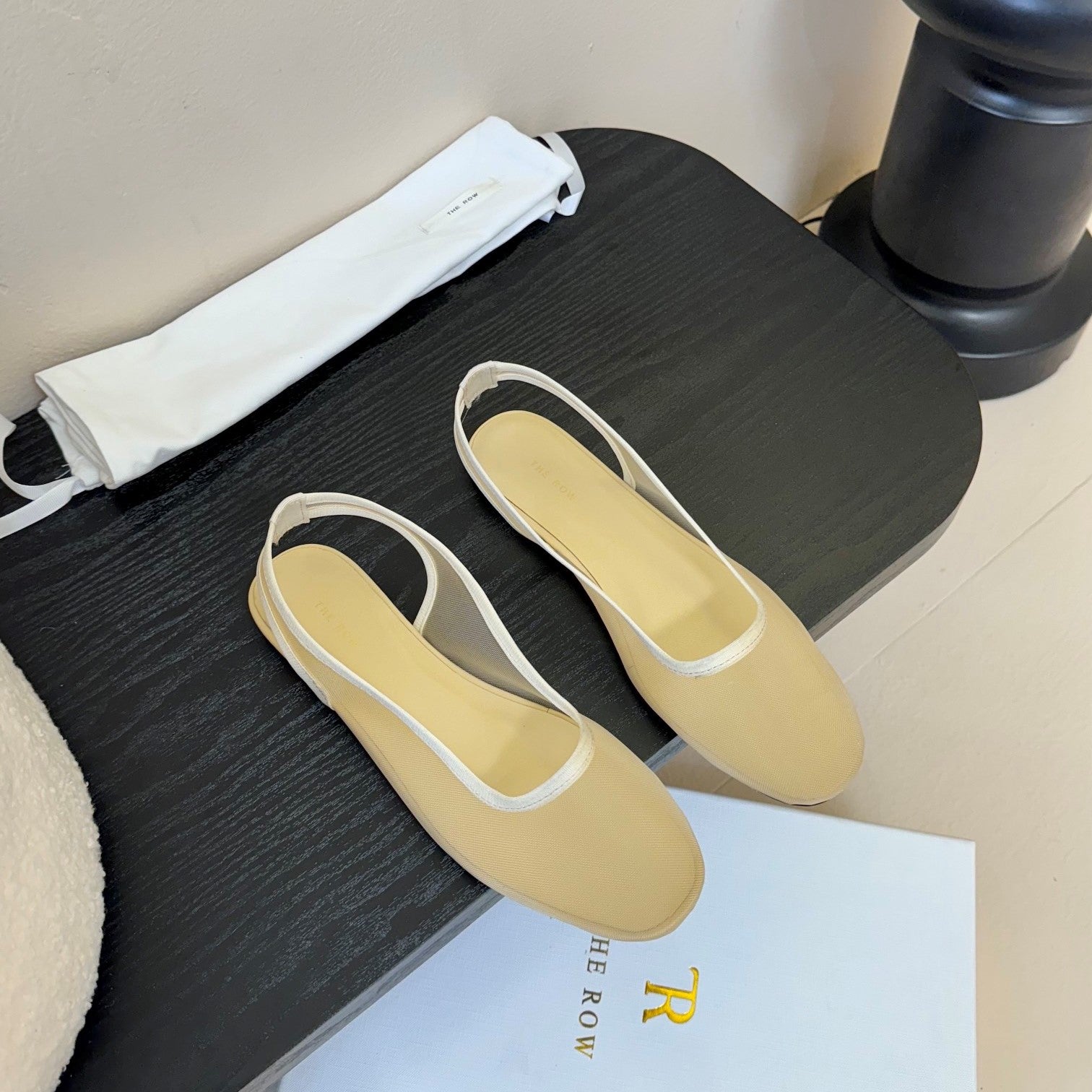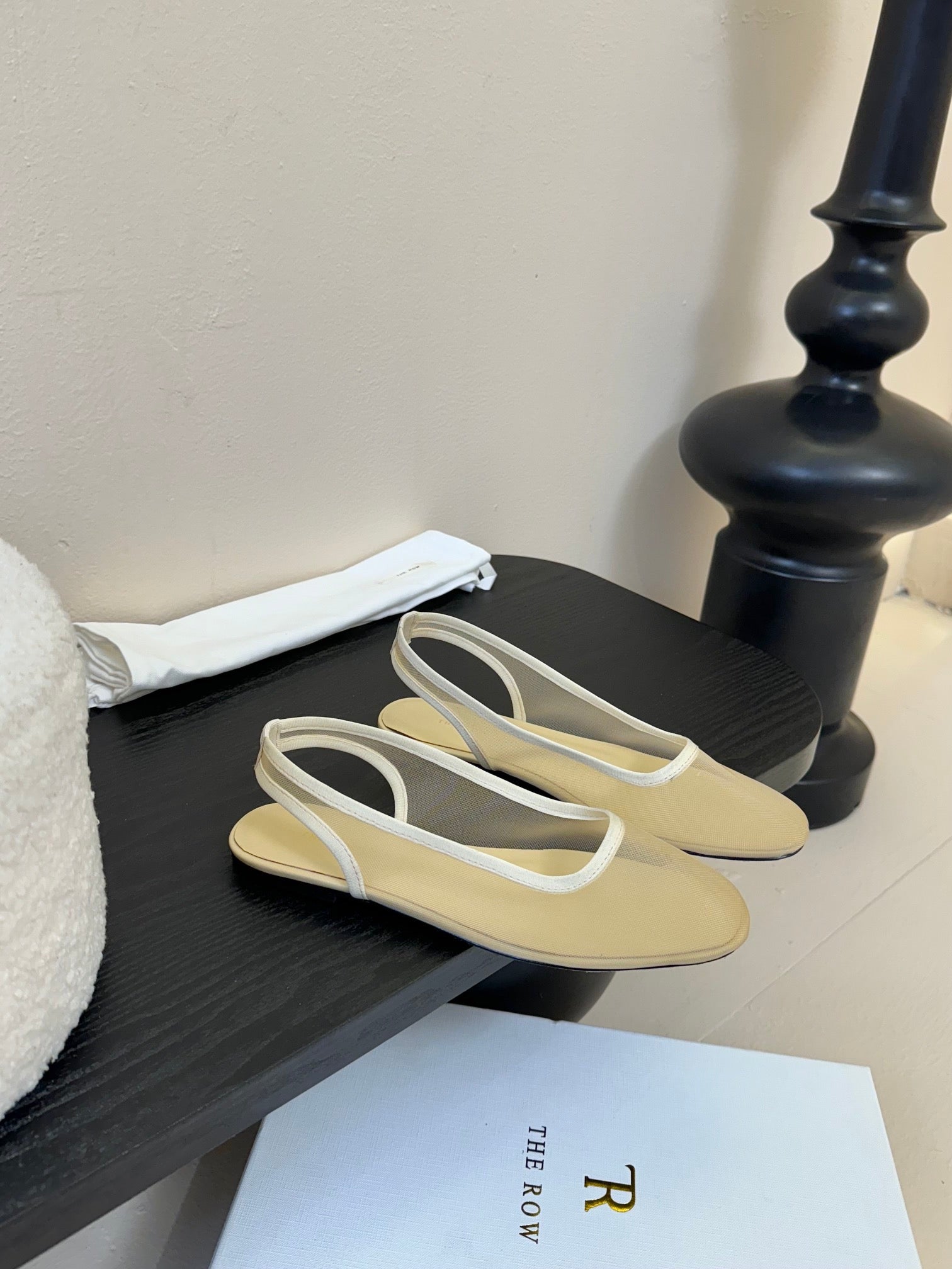 The Row Slingback Flat Beige Mesh And Sheepskin 334166