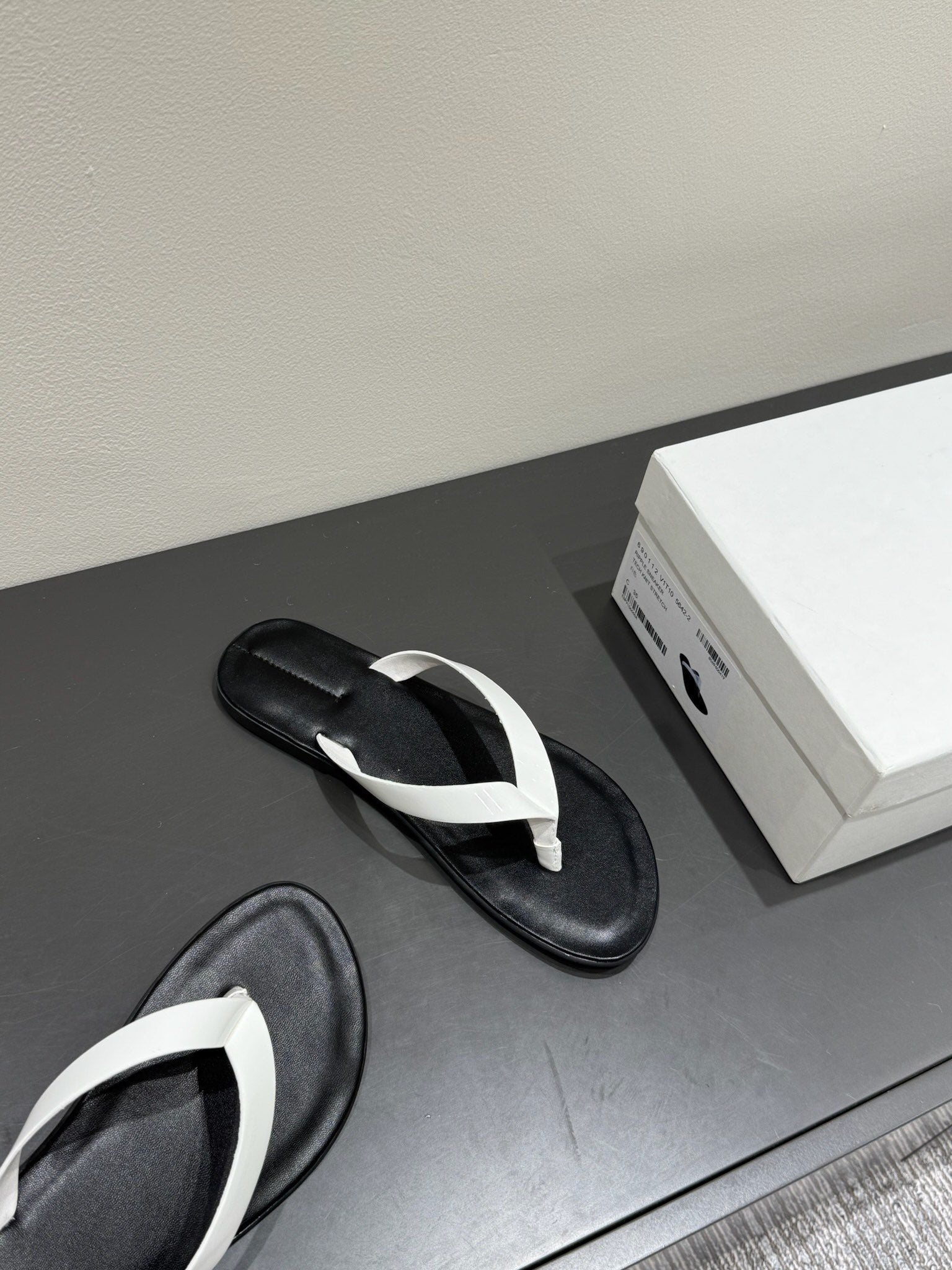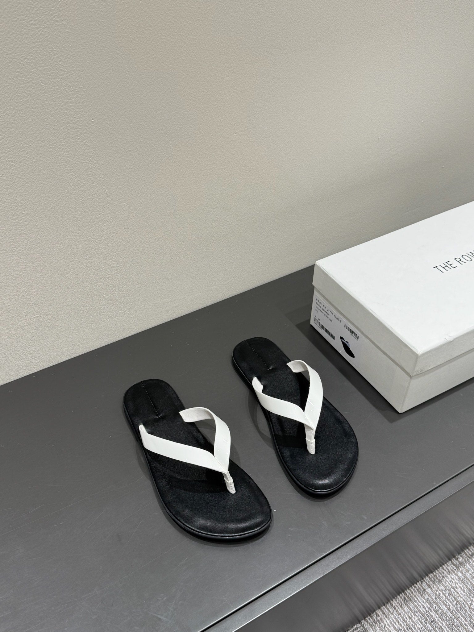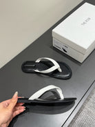 The Row Thong Sandal Black And White Patent leather 337445