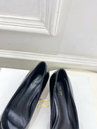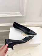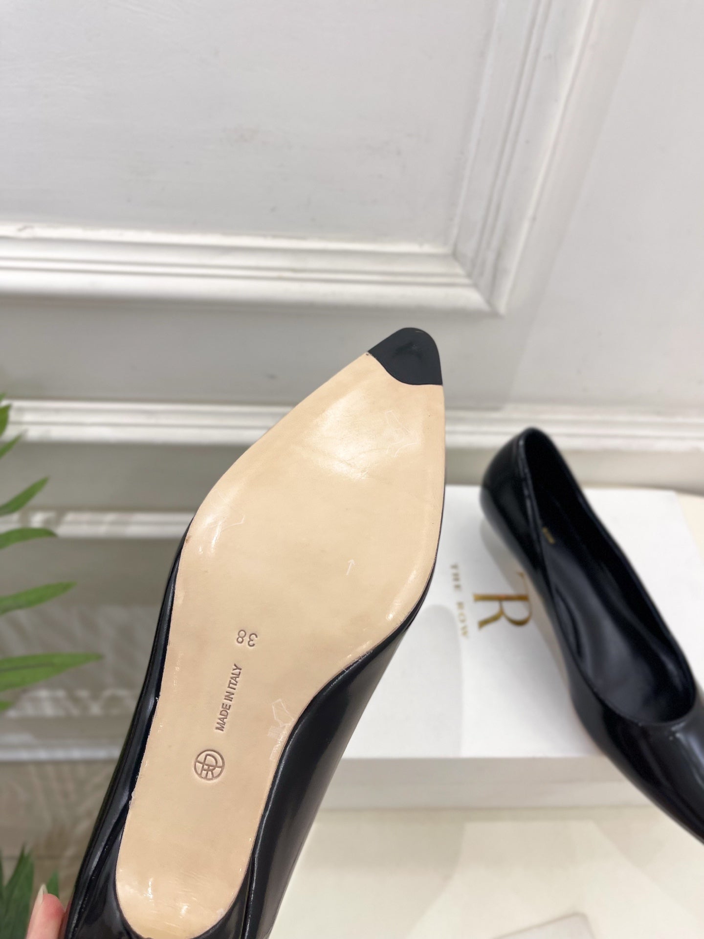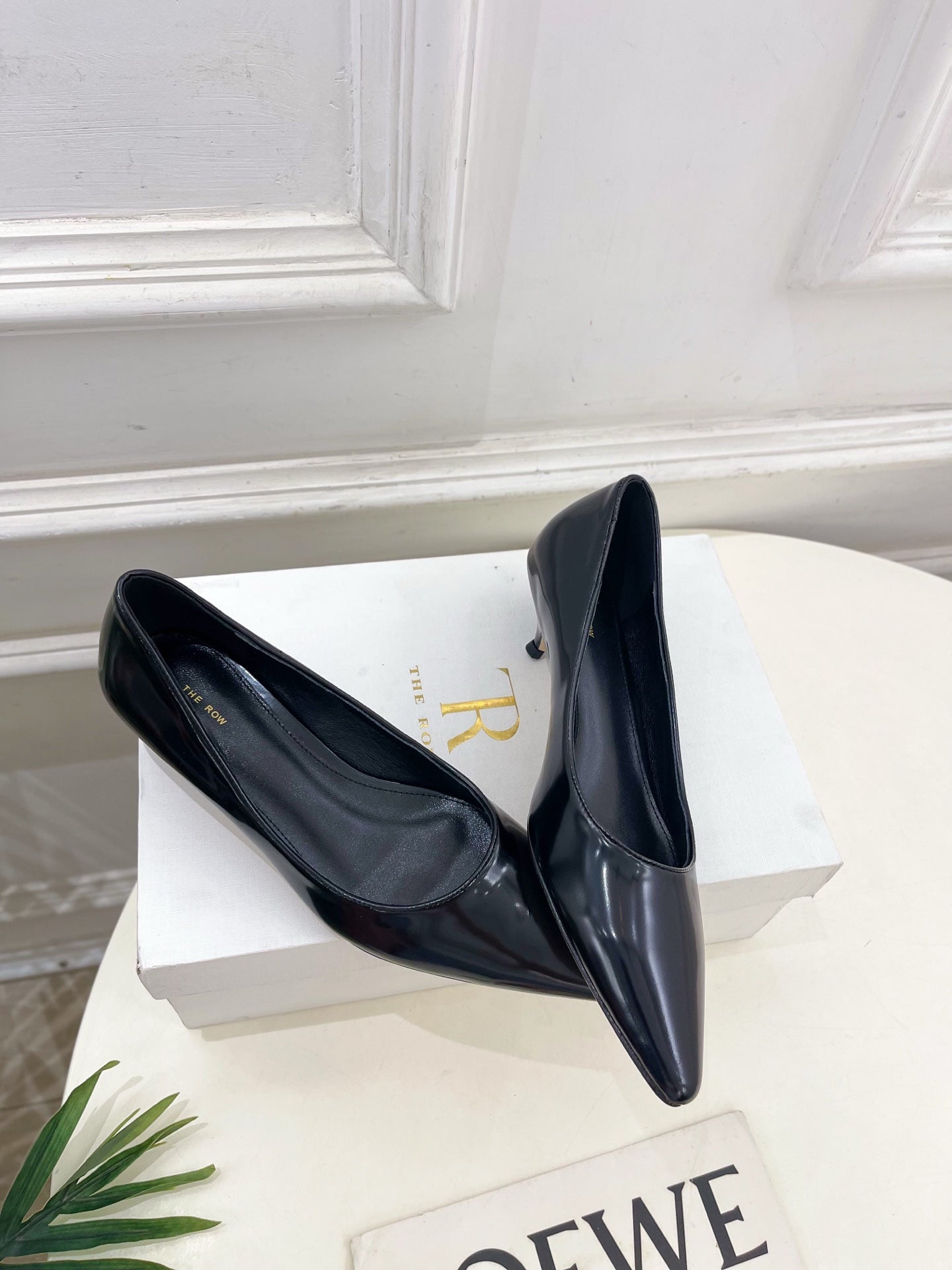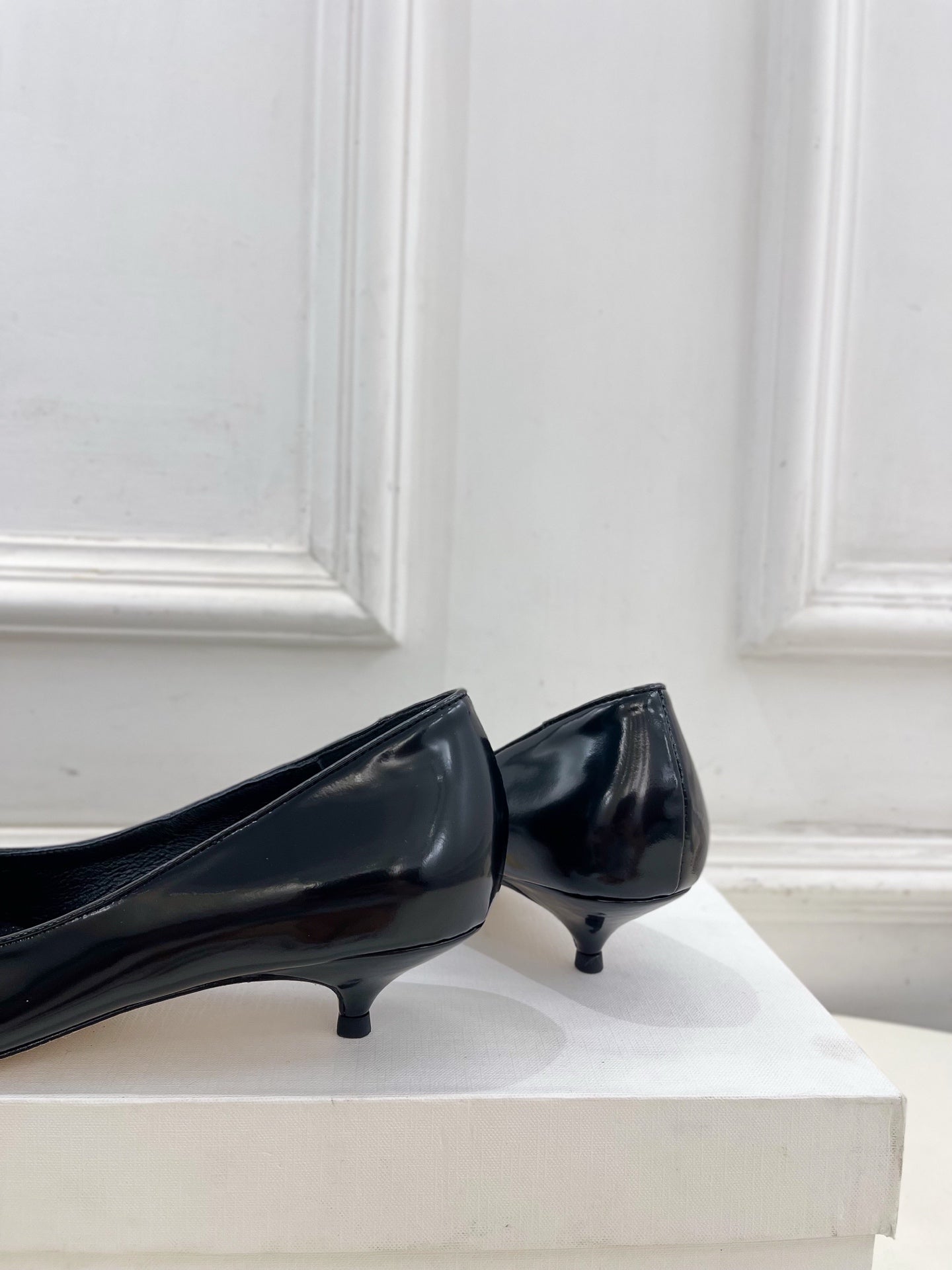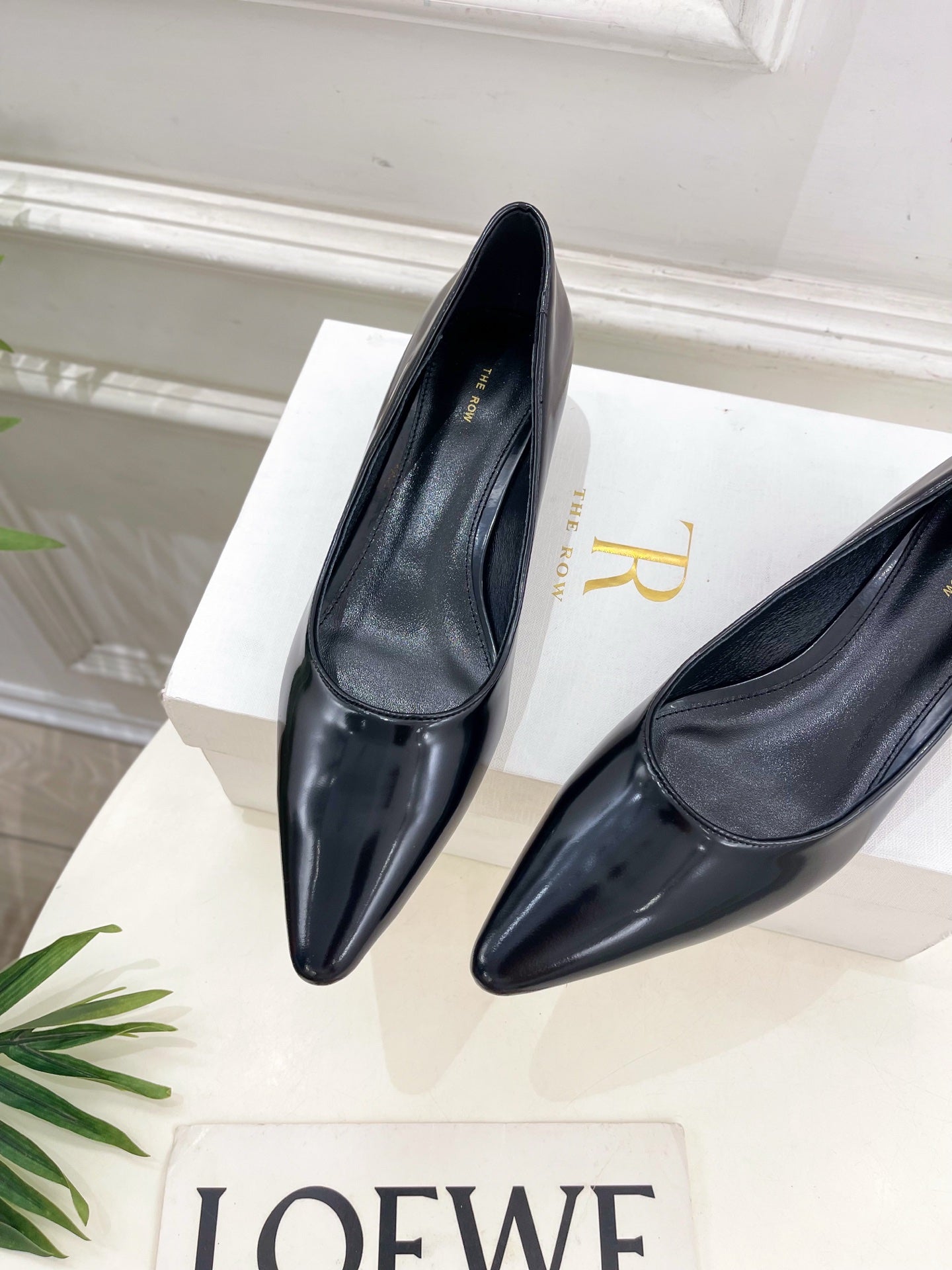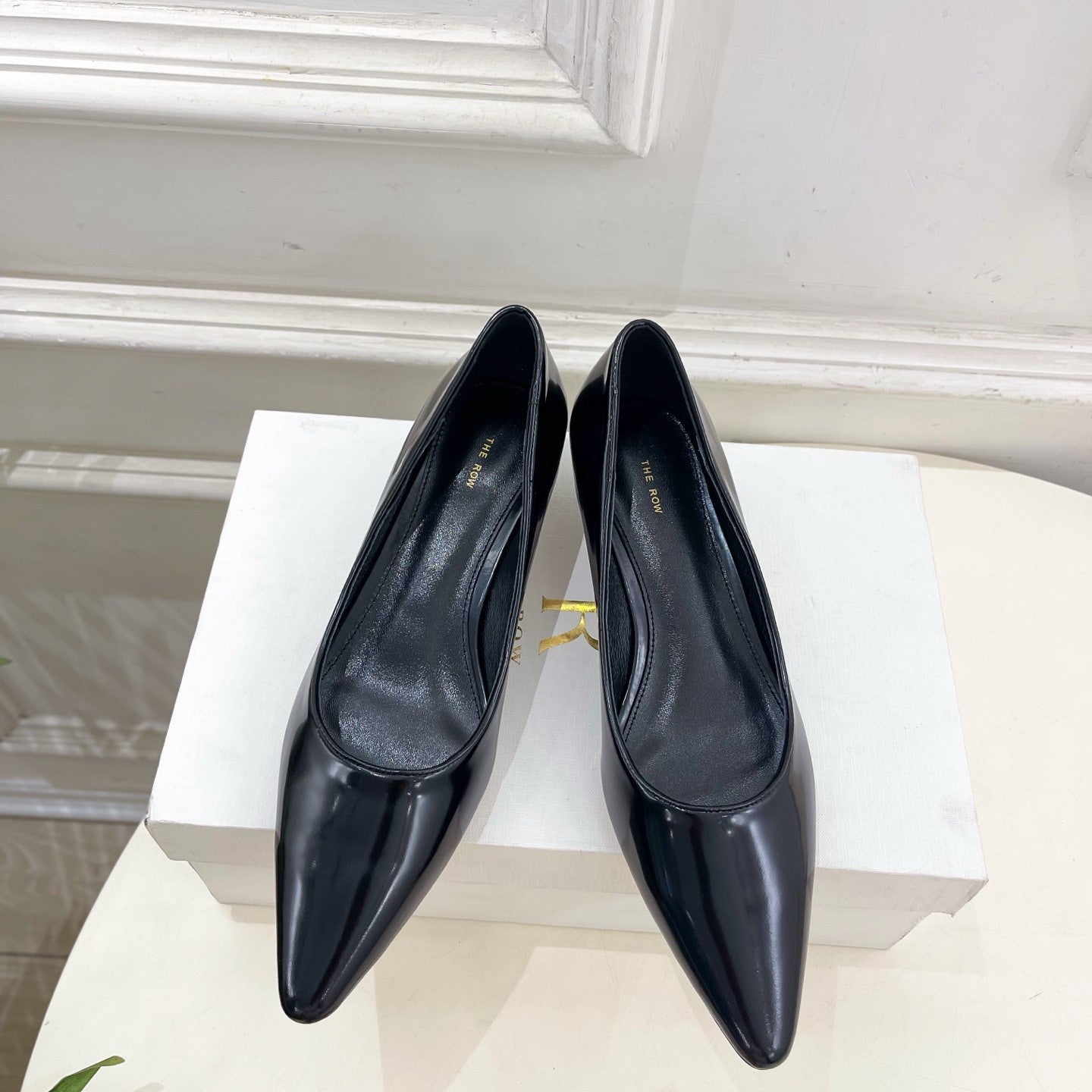 The Row 25ss TR Kitten heel Pointed Toe Shoes 35mm Black Sheepskin 425560