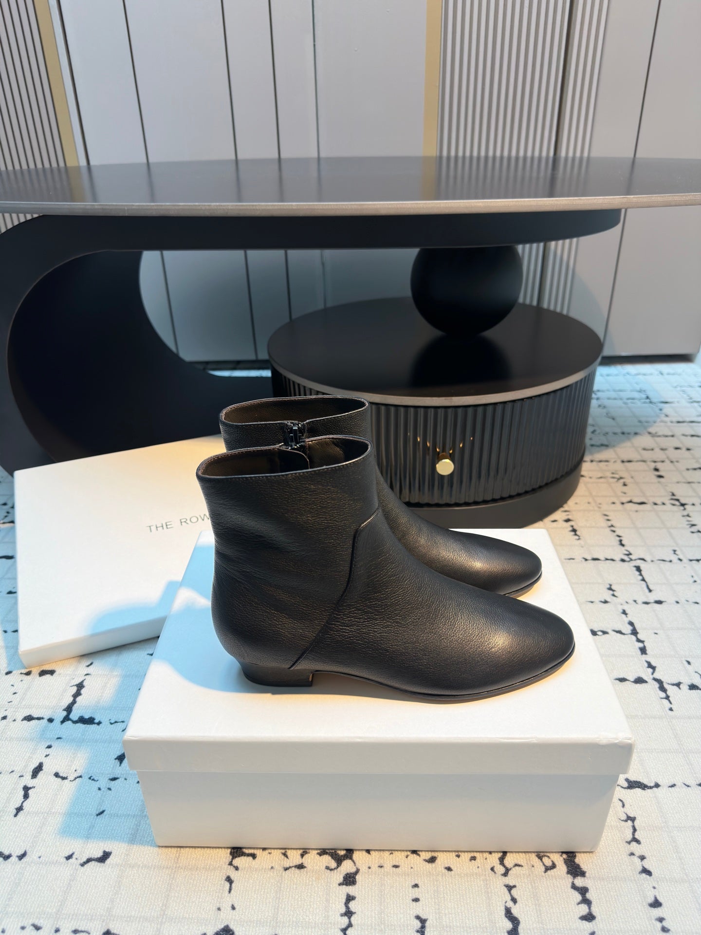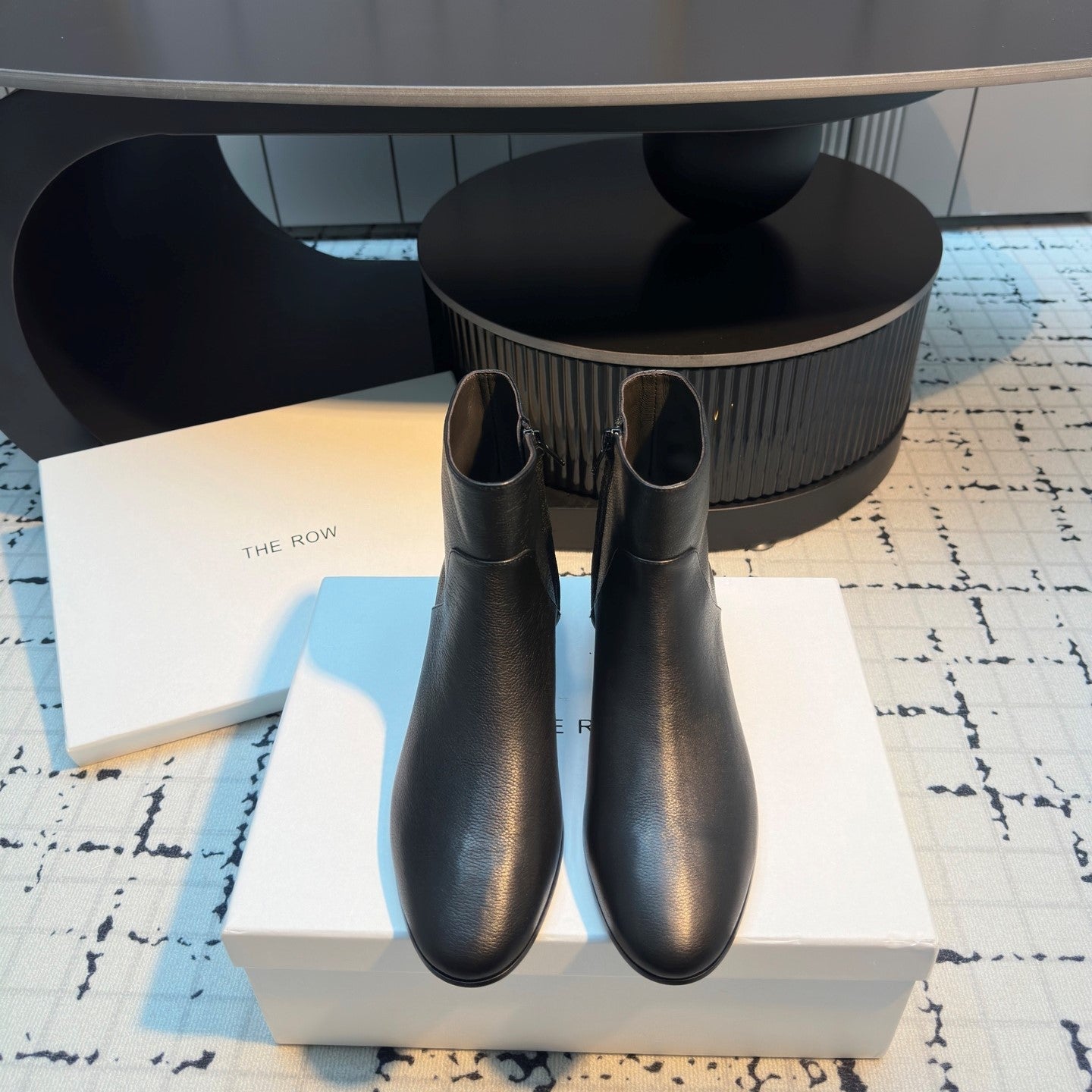 The Row Zipped Ankle Boots 50mm Black Calfskin 429313