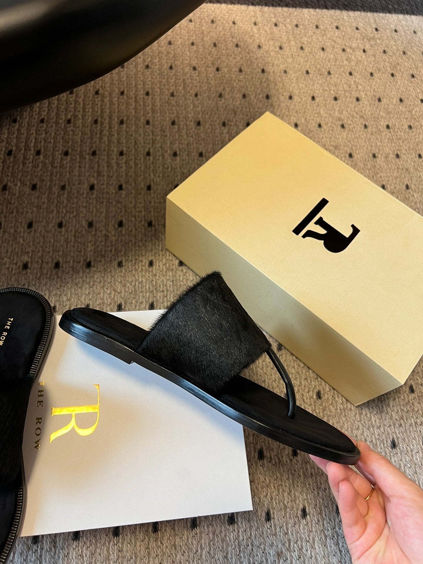 Signum Flat Sandal in Black Sheepskin And Horse Hair 282424