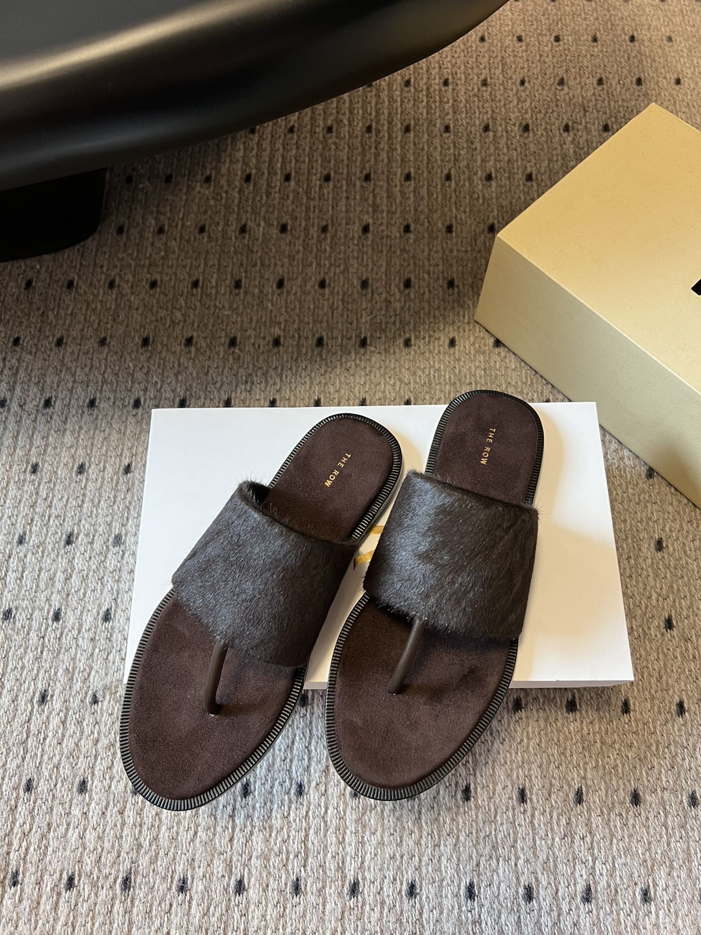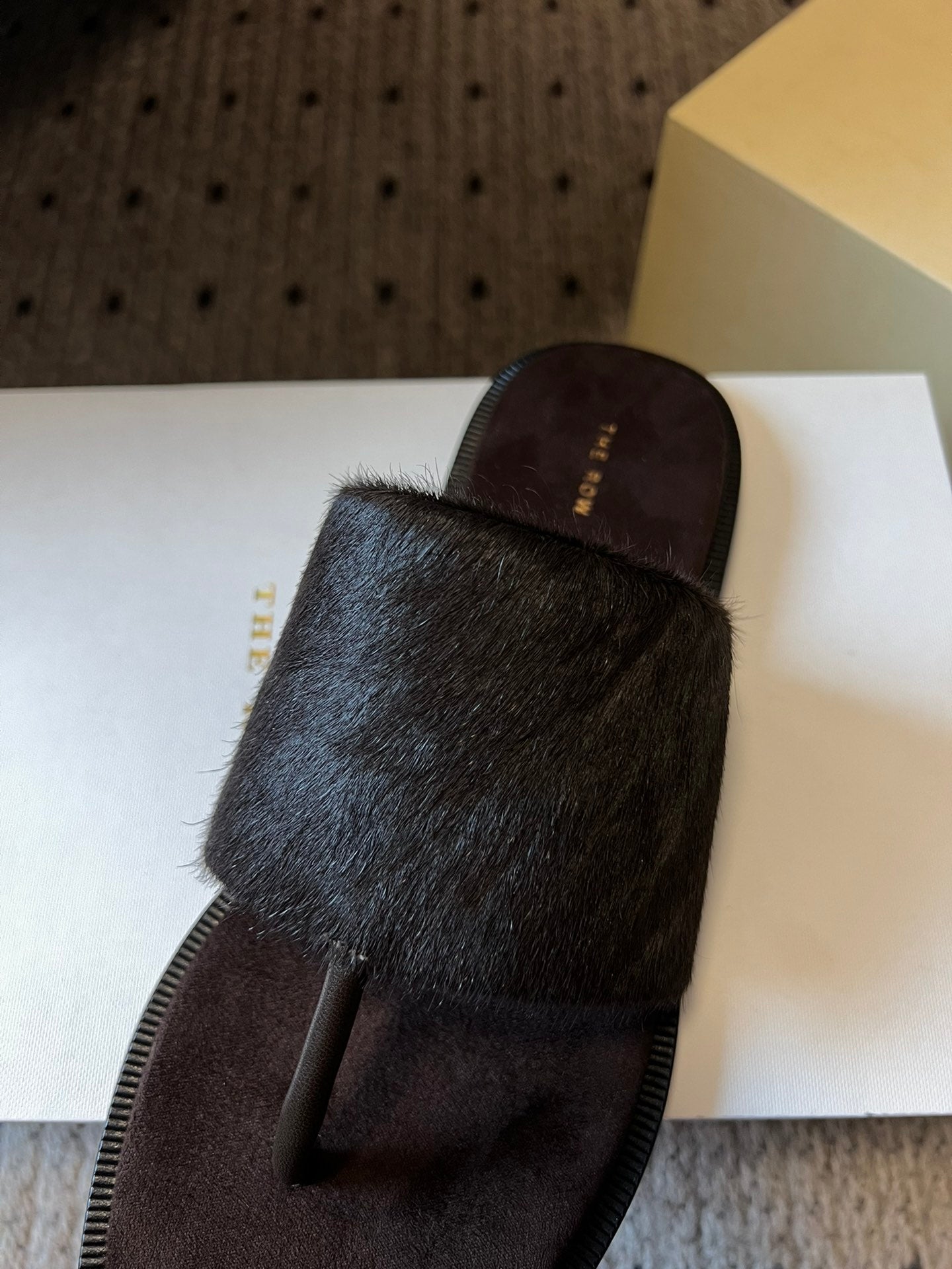 Signum Flat Sandal in Chocoldate Sheepskin And Horse Hair 282425