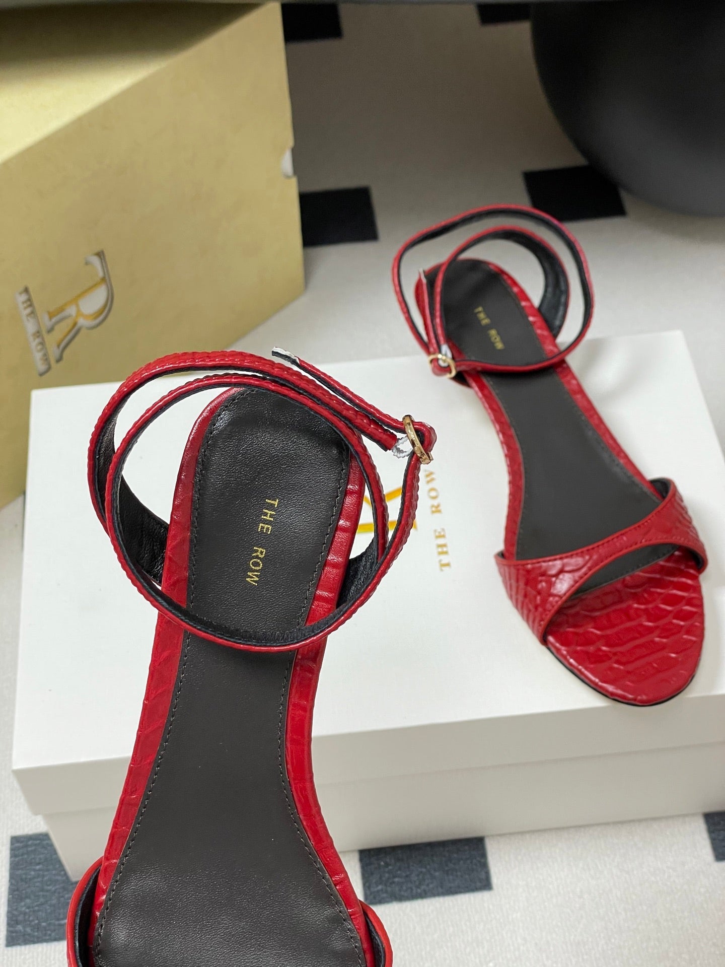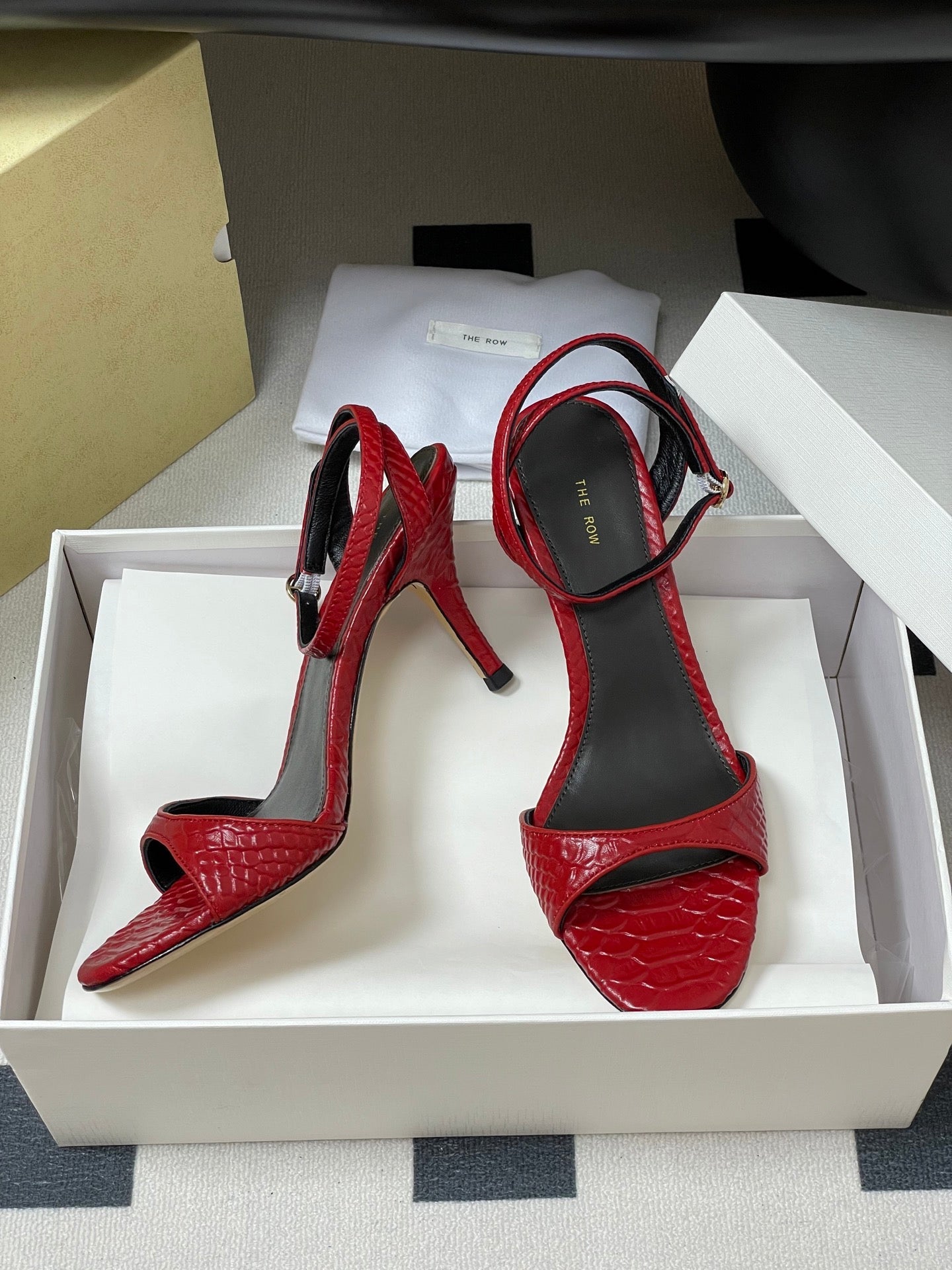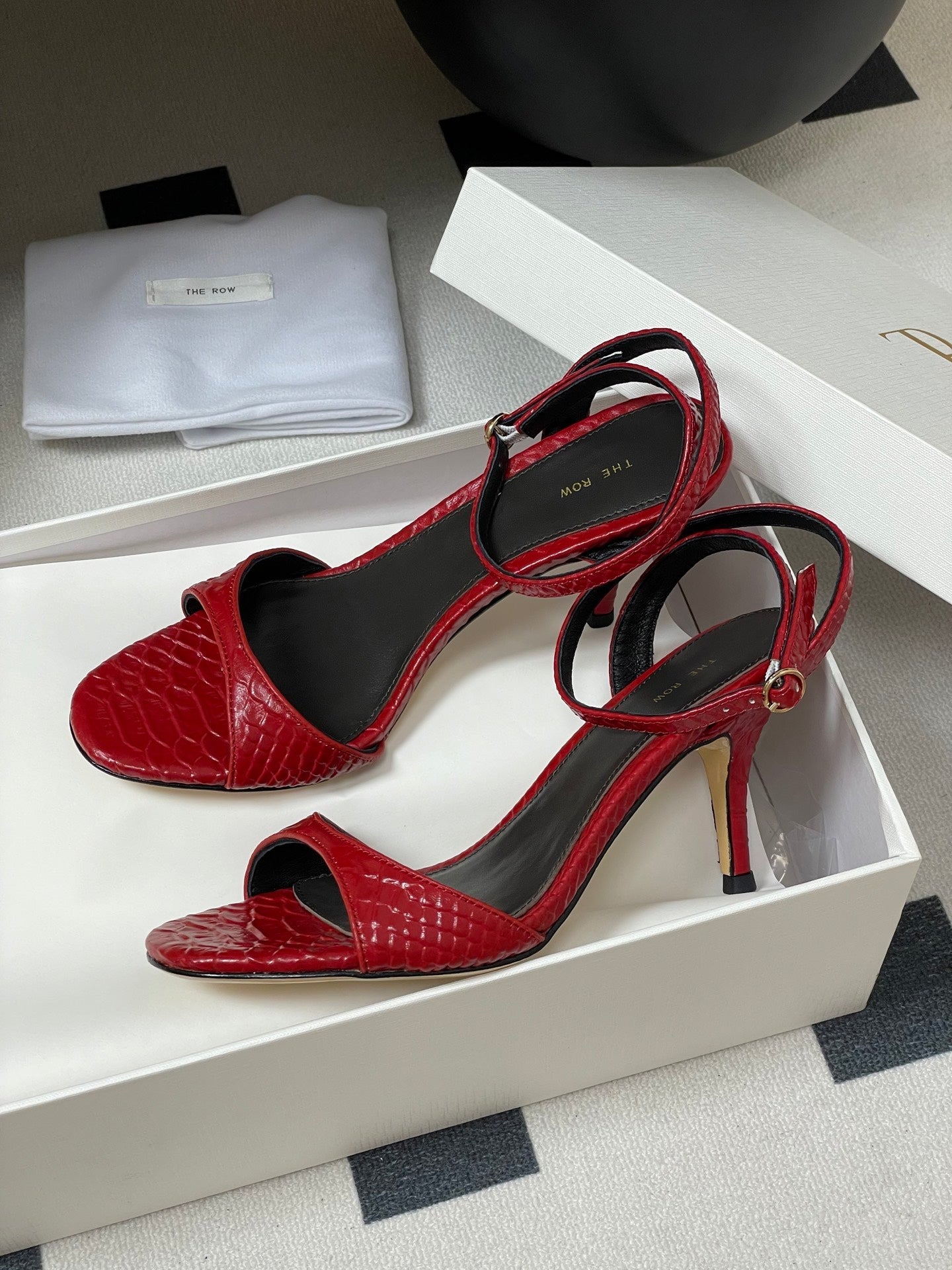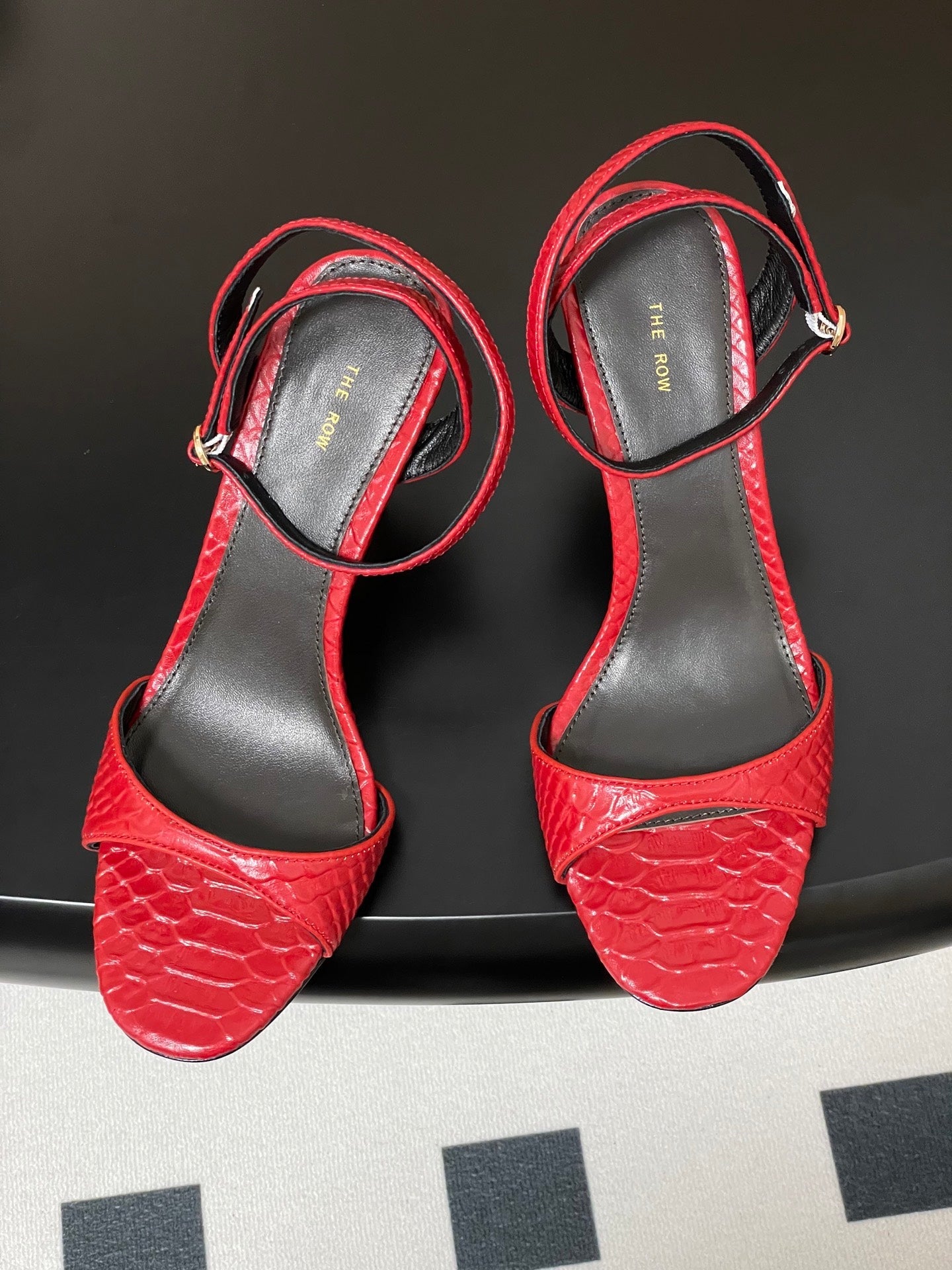 The Row 25S Strap High Heel Sandals 35mm Red Snake Pattern Cowhide 286195