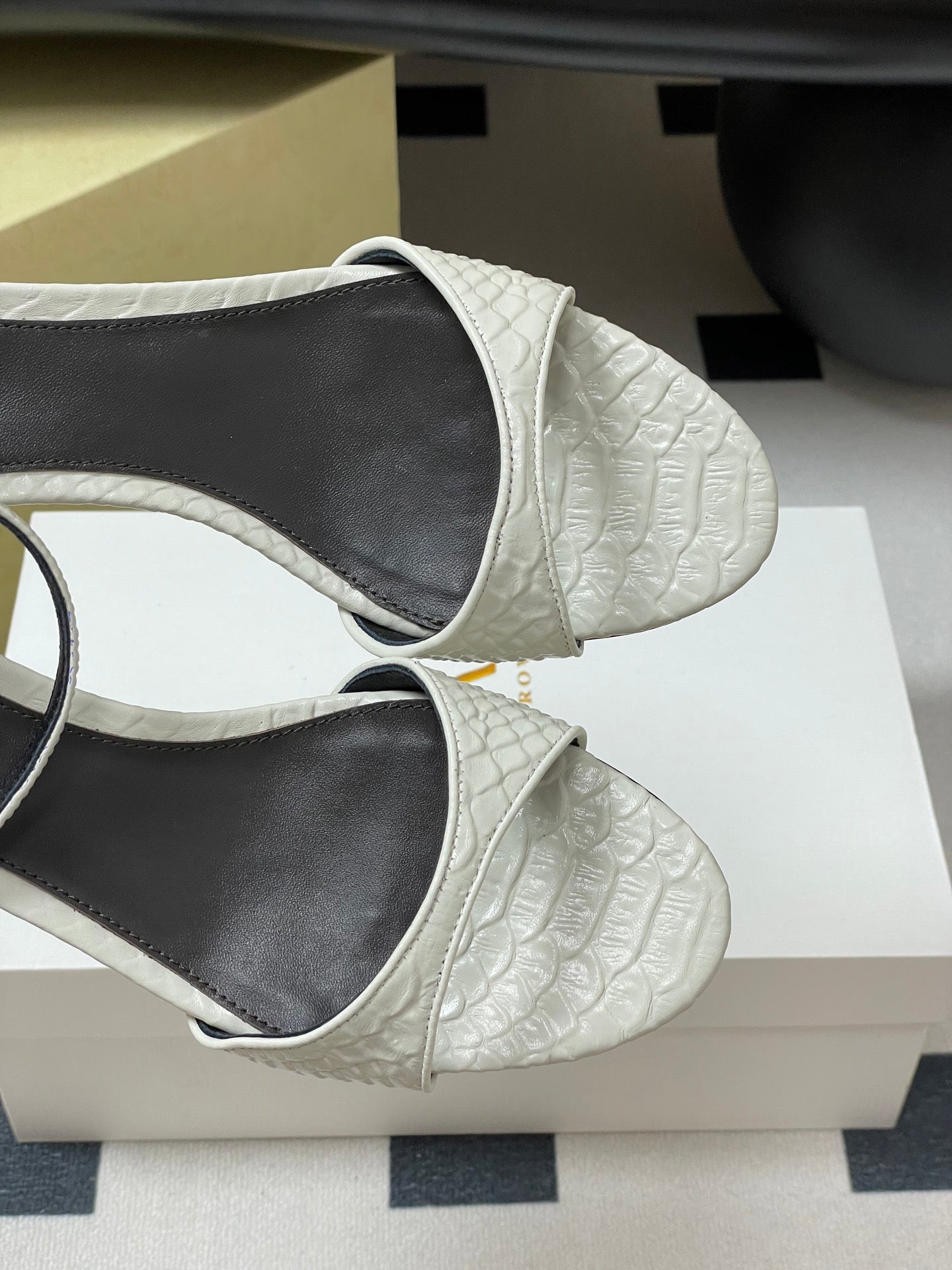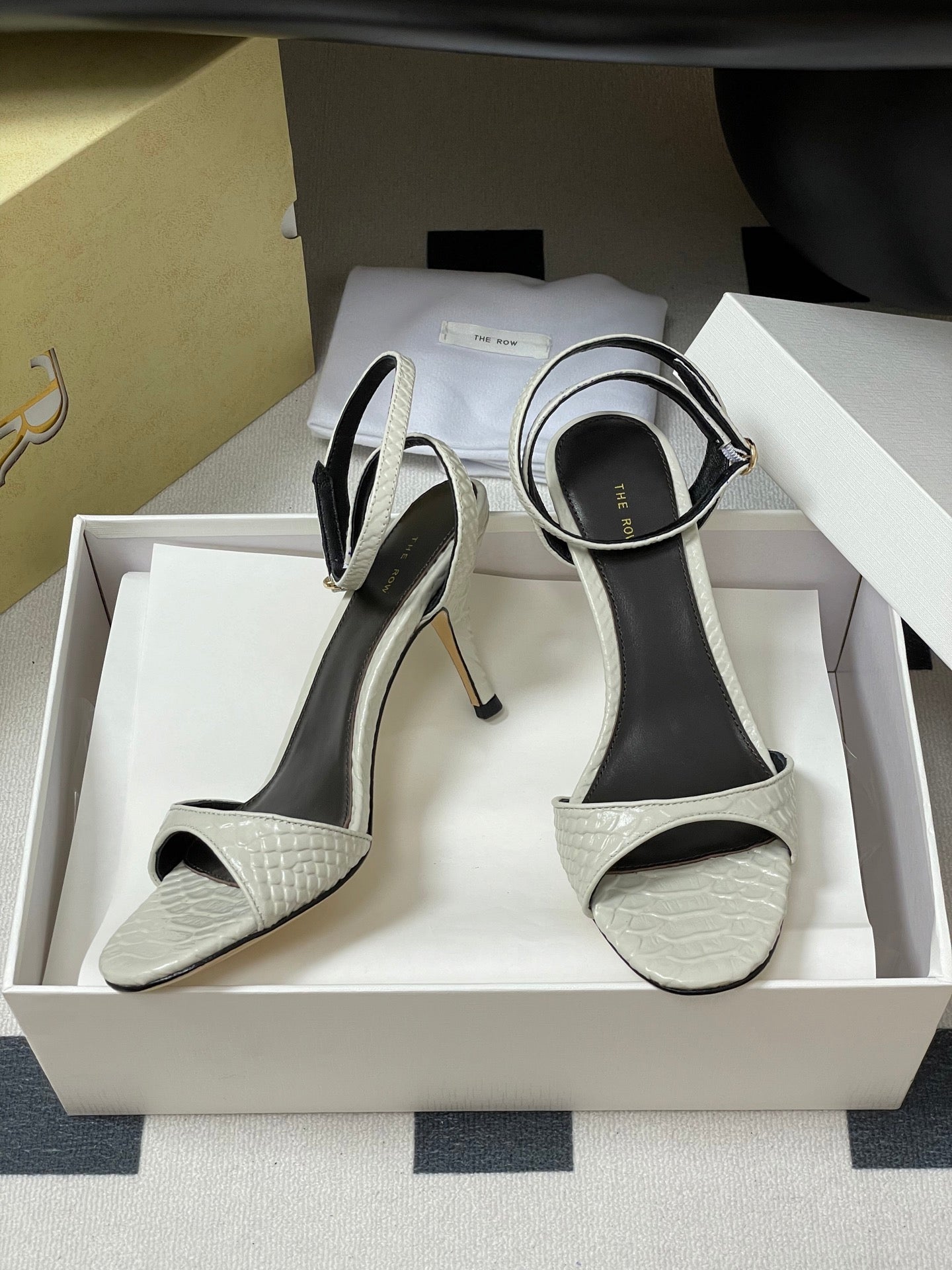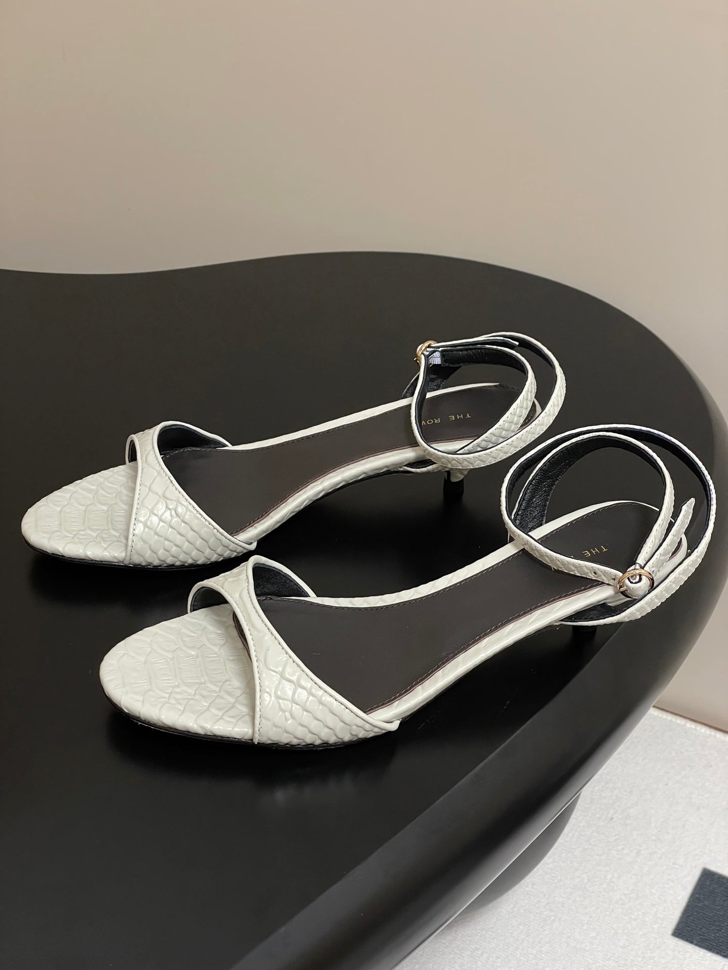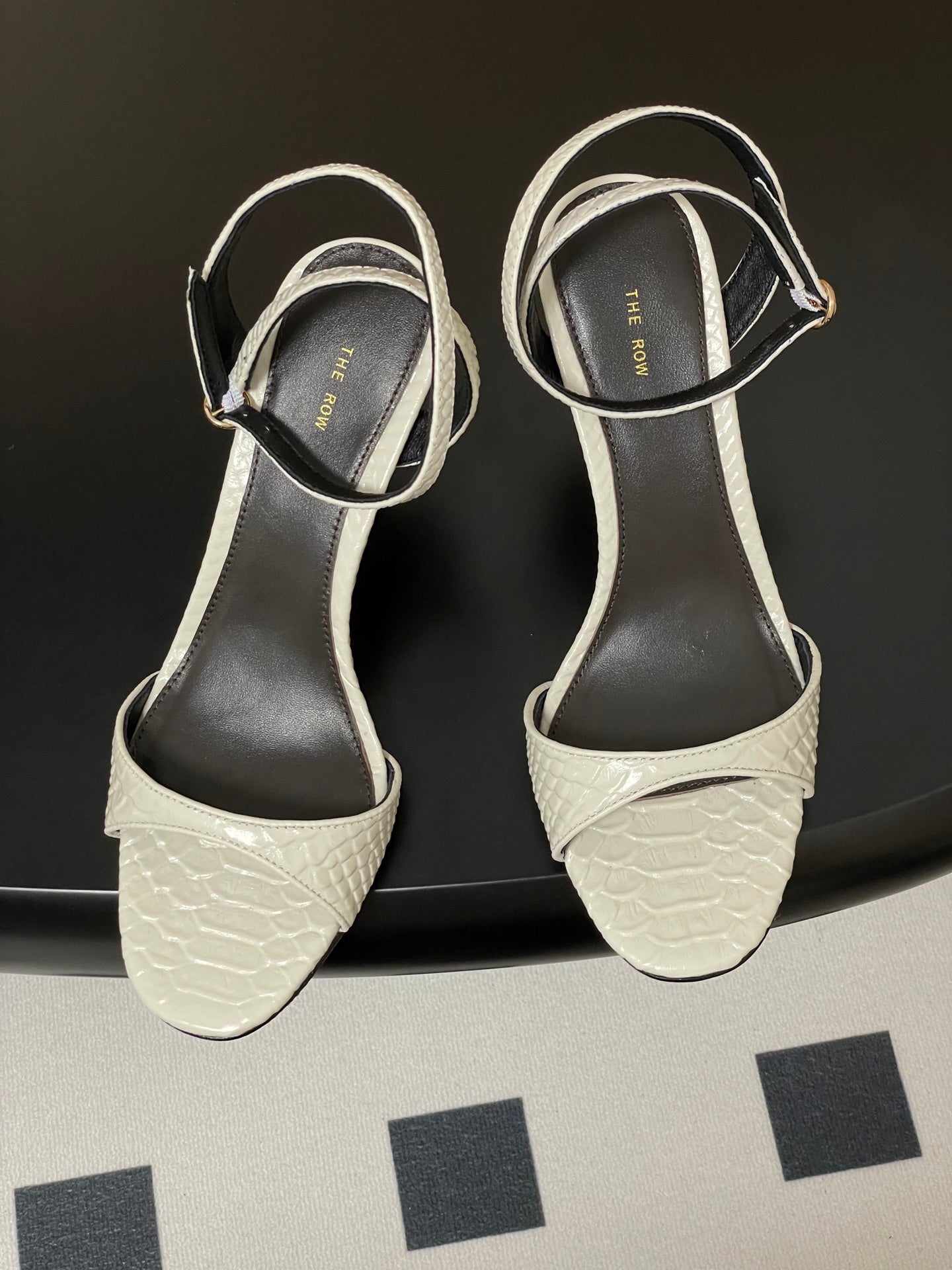 The Row 25S Strap High Heel Sandals 35mm White Snake Pattern Cowhide 286196