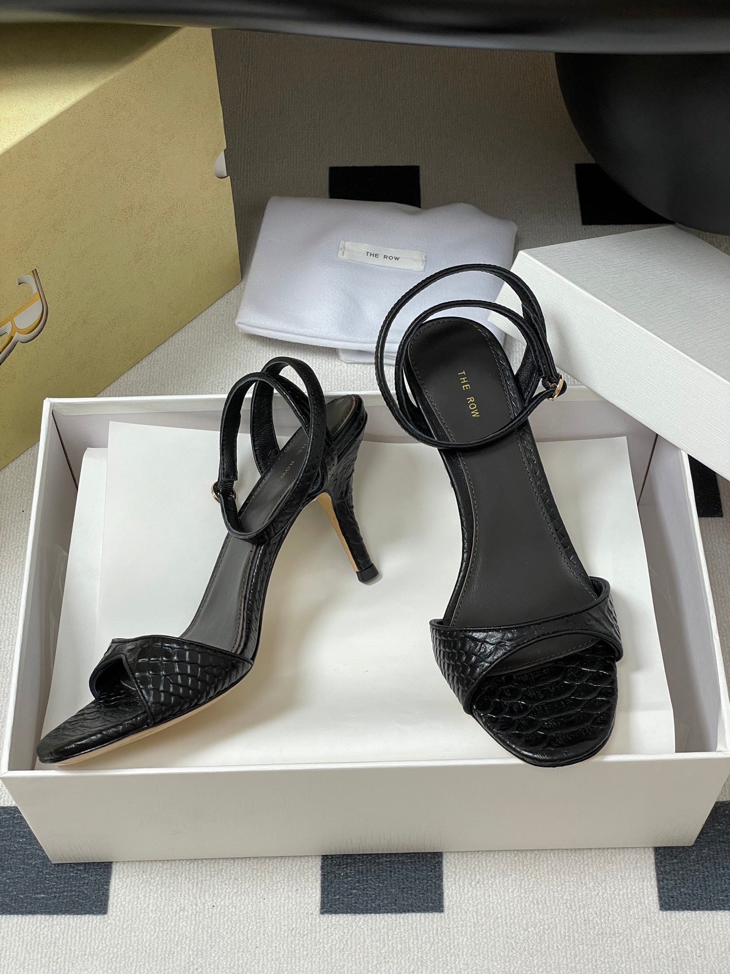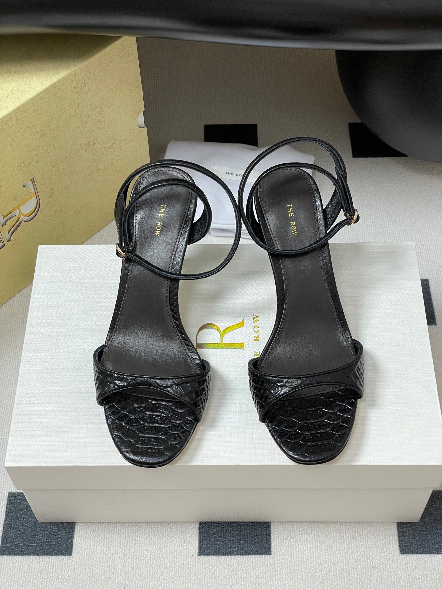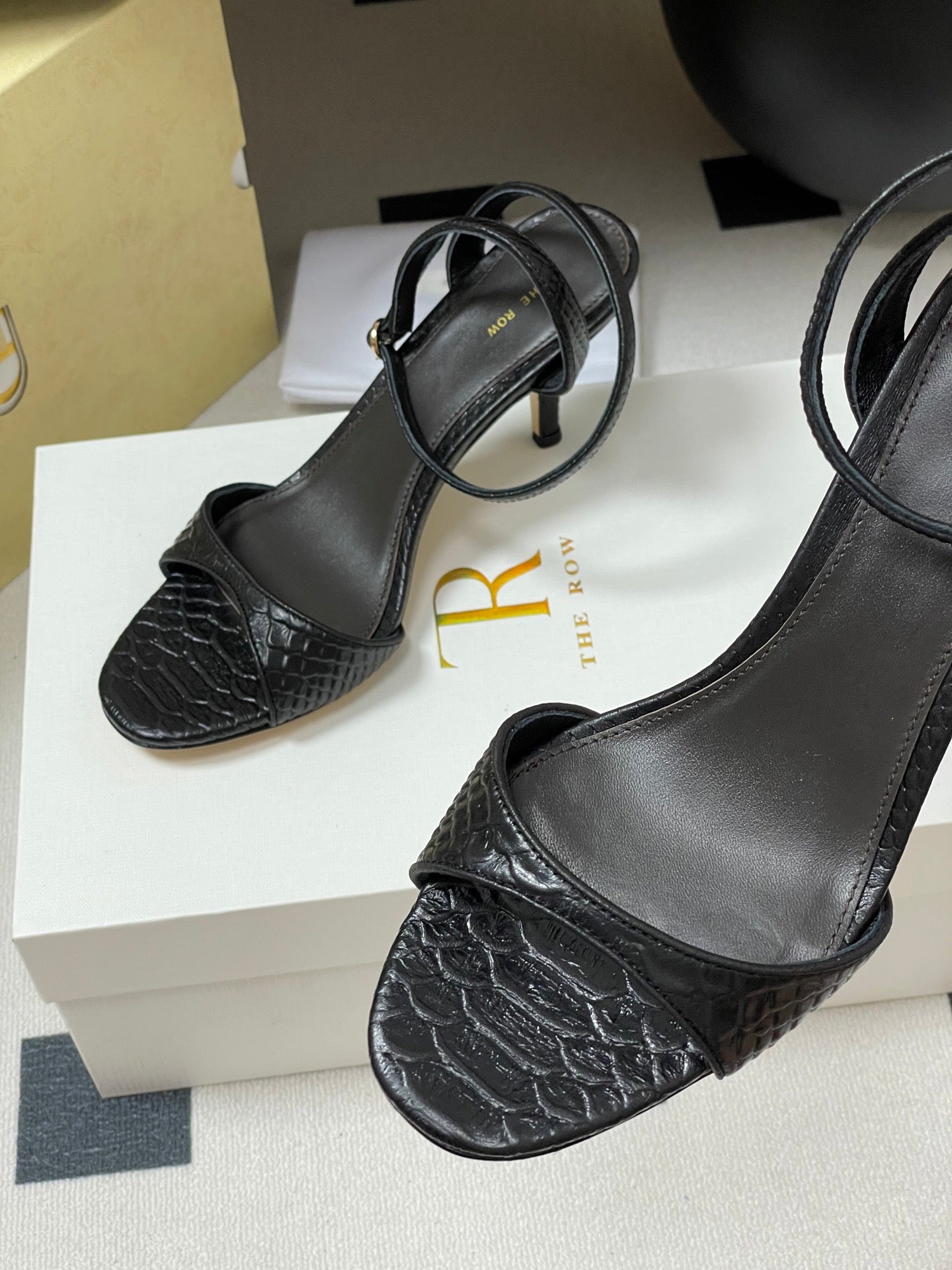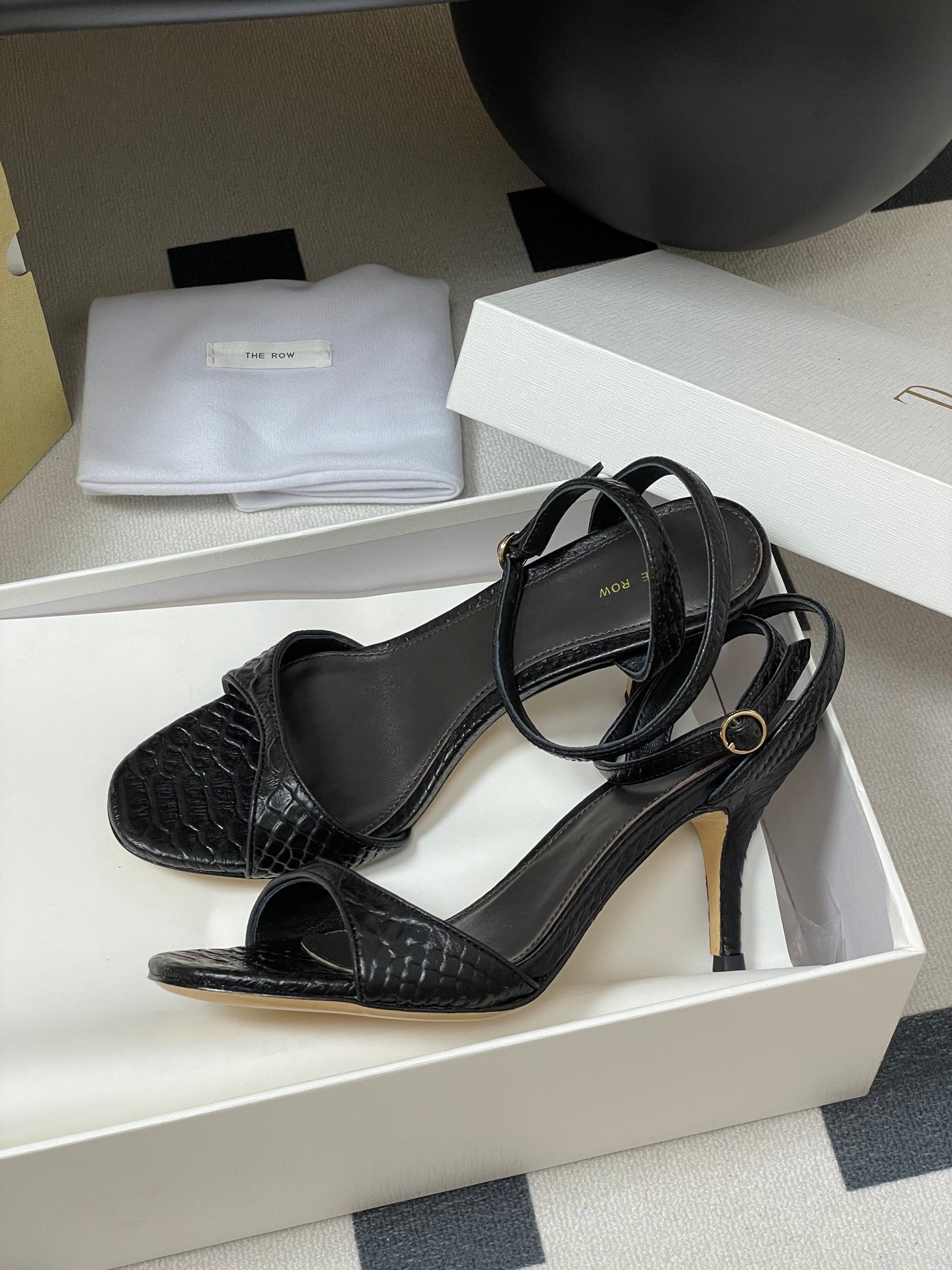 The Row 25S Strap High Heel Sandals 35mm Black Snake Pattern Cowhide 286197