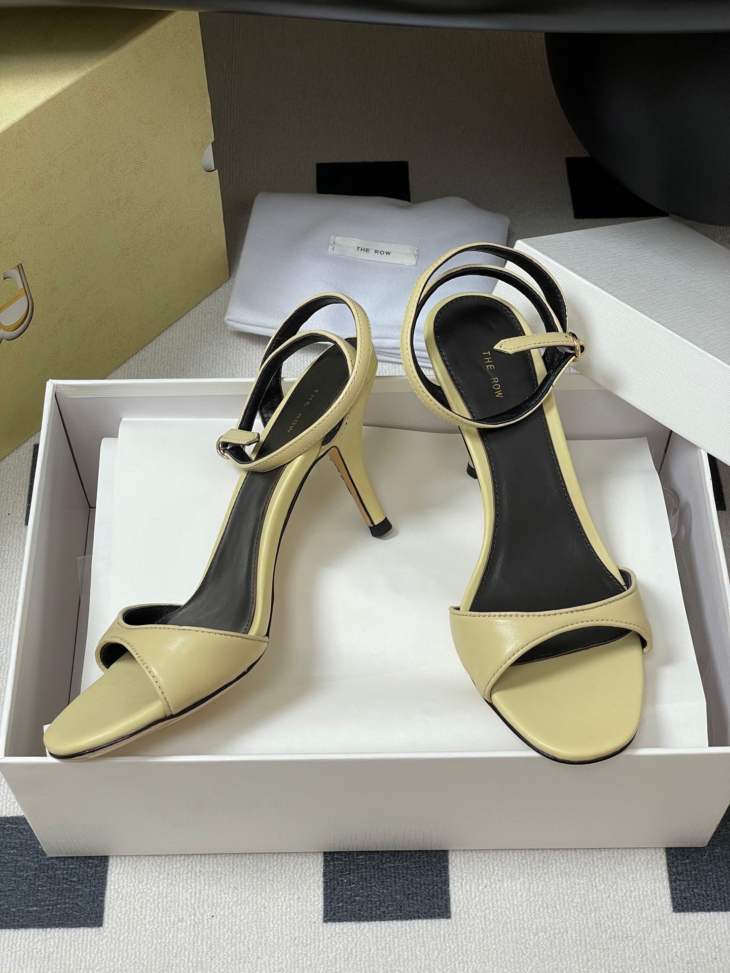 The Row 25S Strap High Heel Sandals 85mm Beige Sheepskin 286191