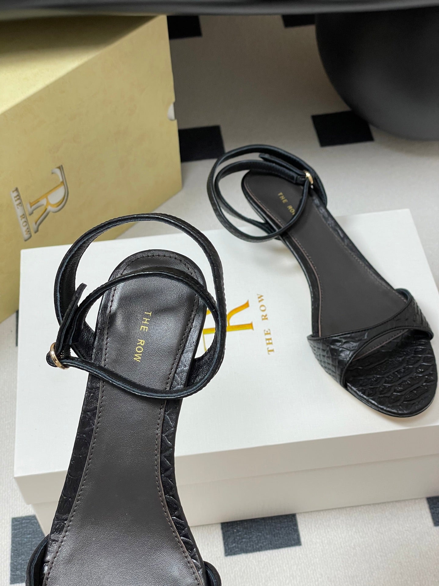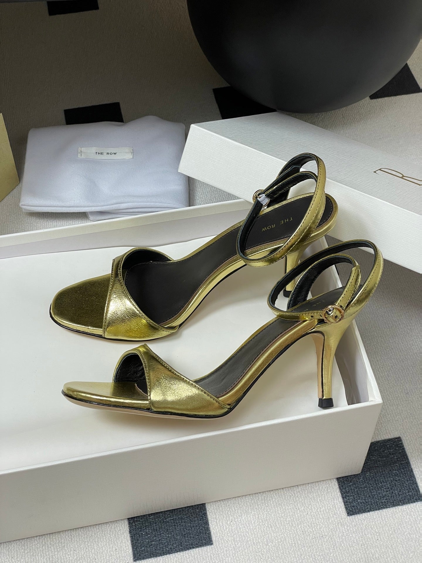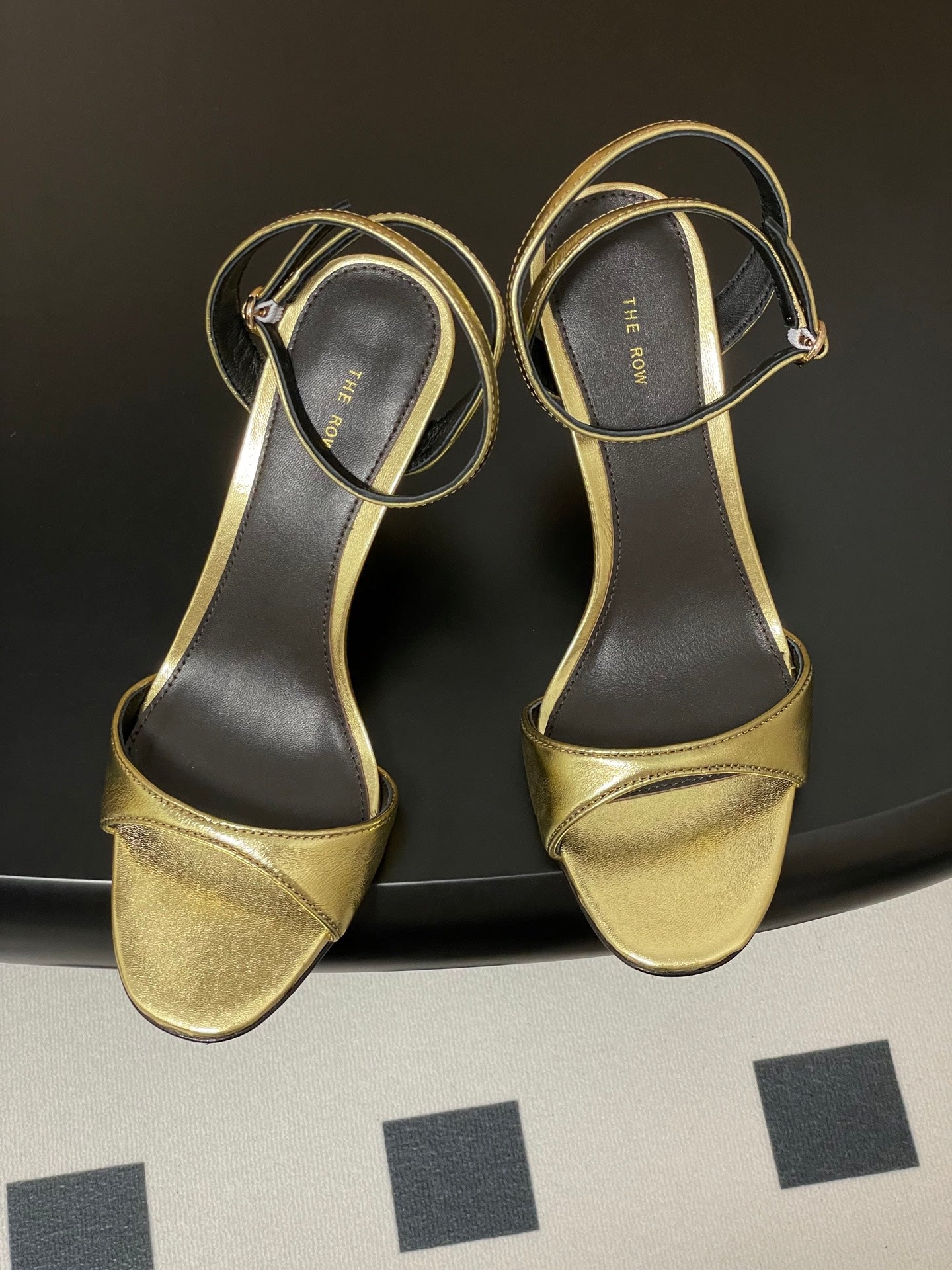 The Row 25S Strap High Heel Sandals 35mm Black Mix Gold Metallic Cowhide 286202