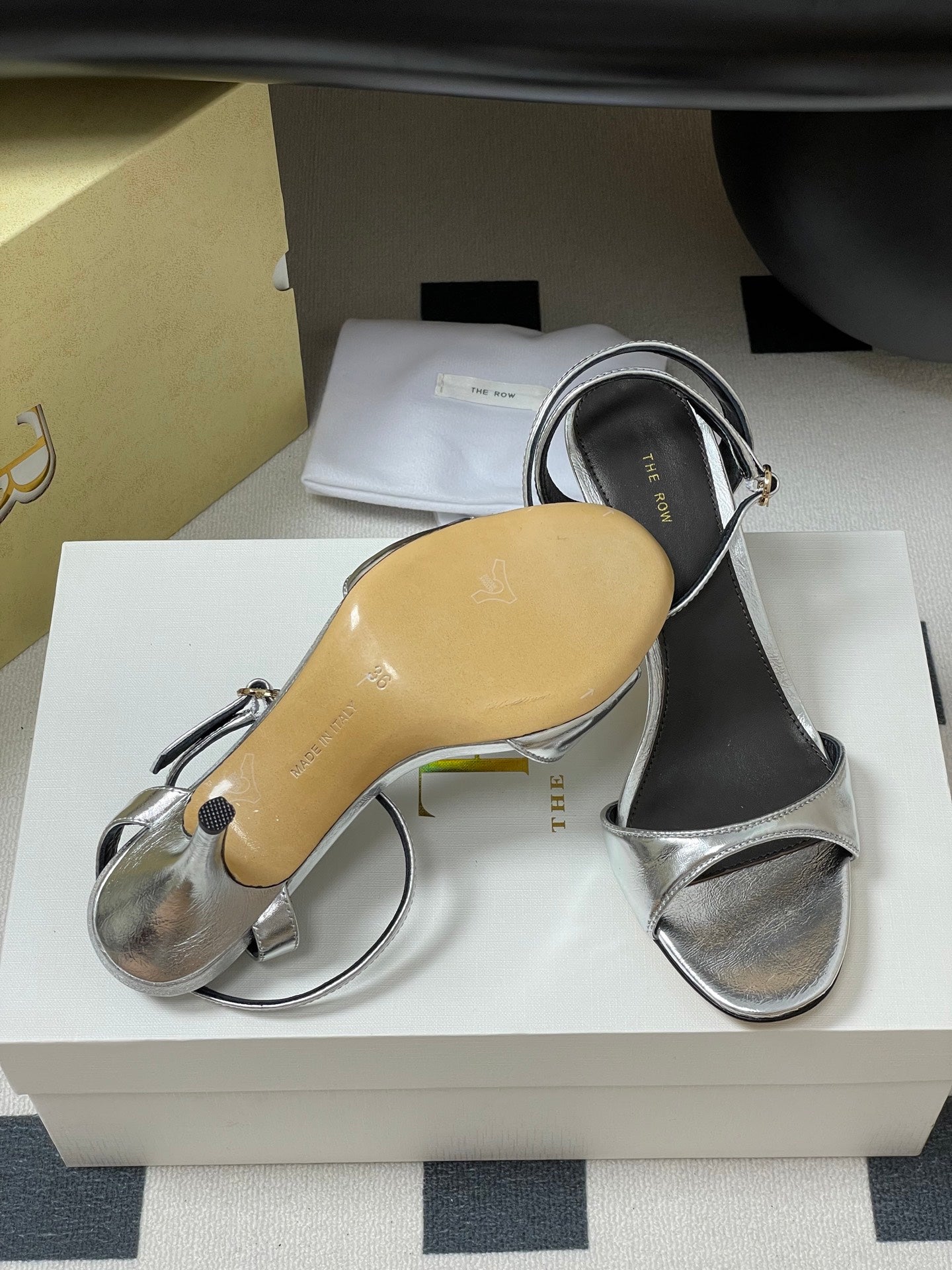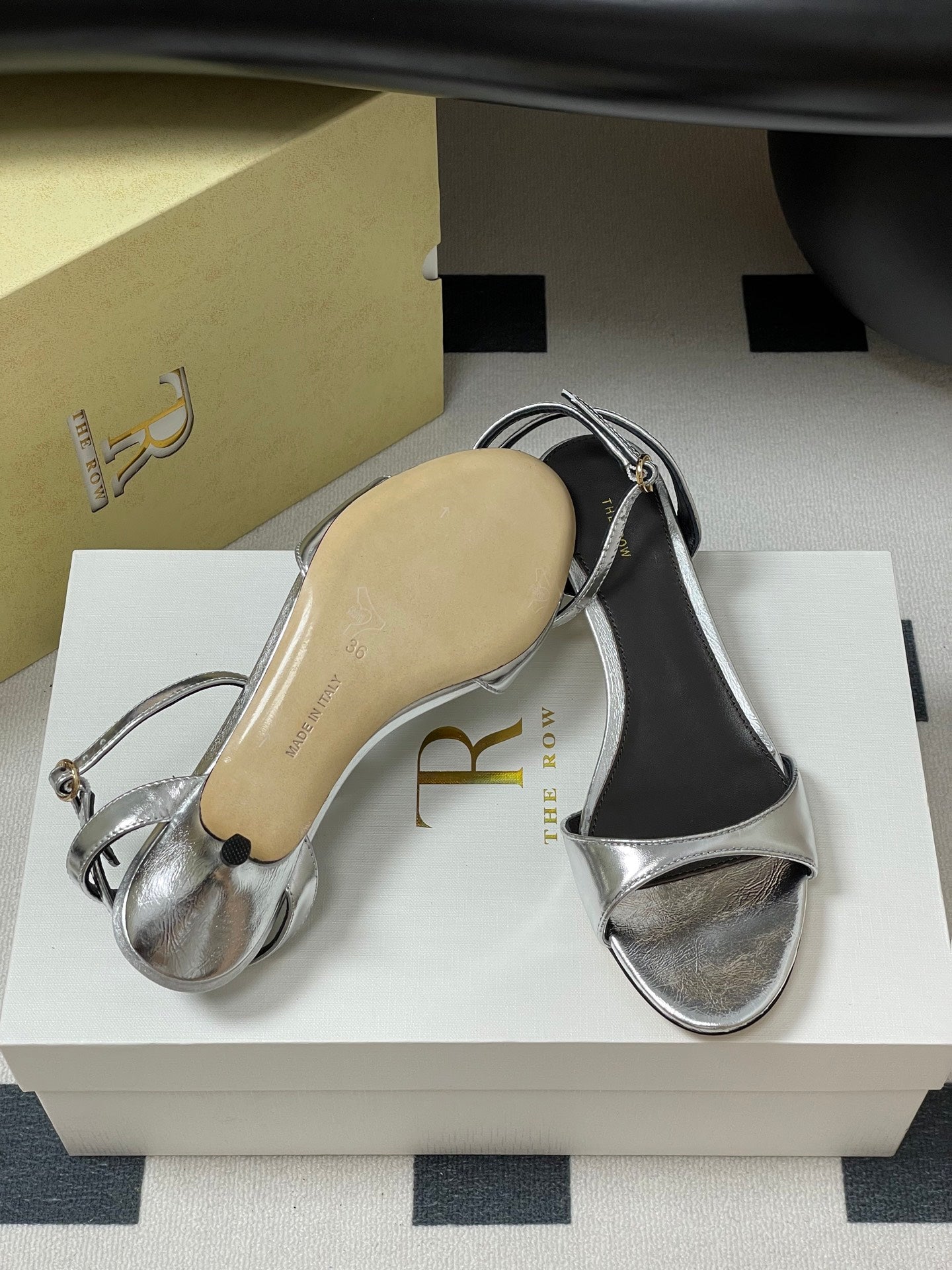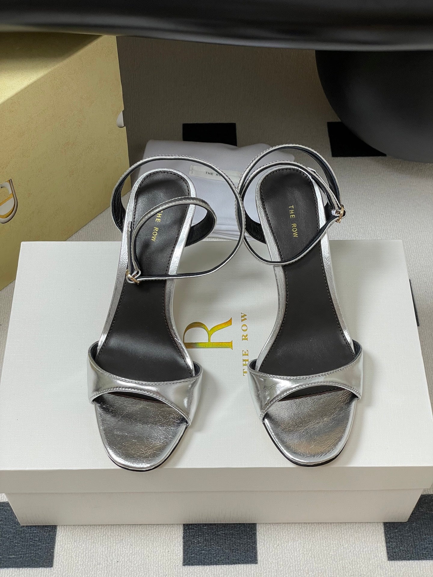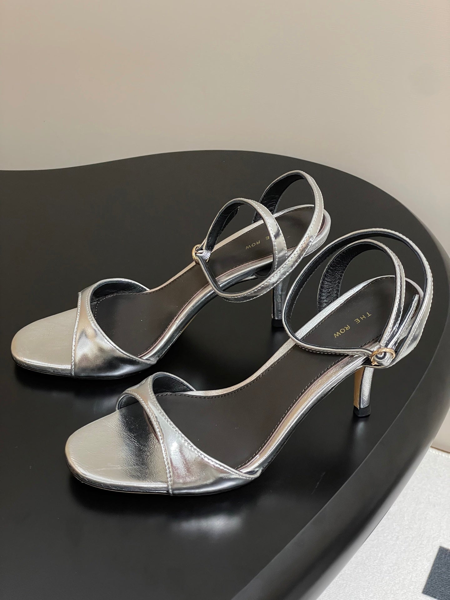 The Row 25S Strap High Heel Sandals 35mm Black Mix Silver Metallic Cowhide 286201