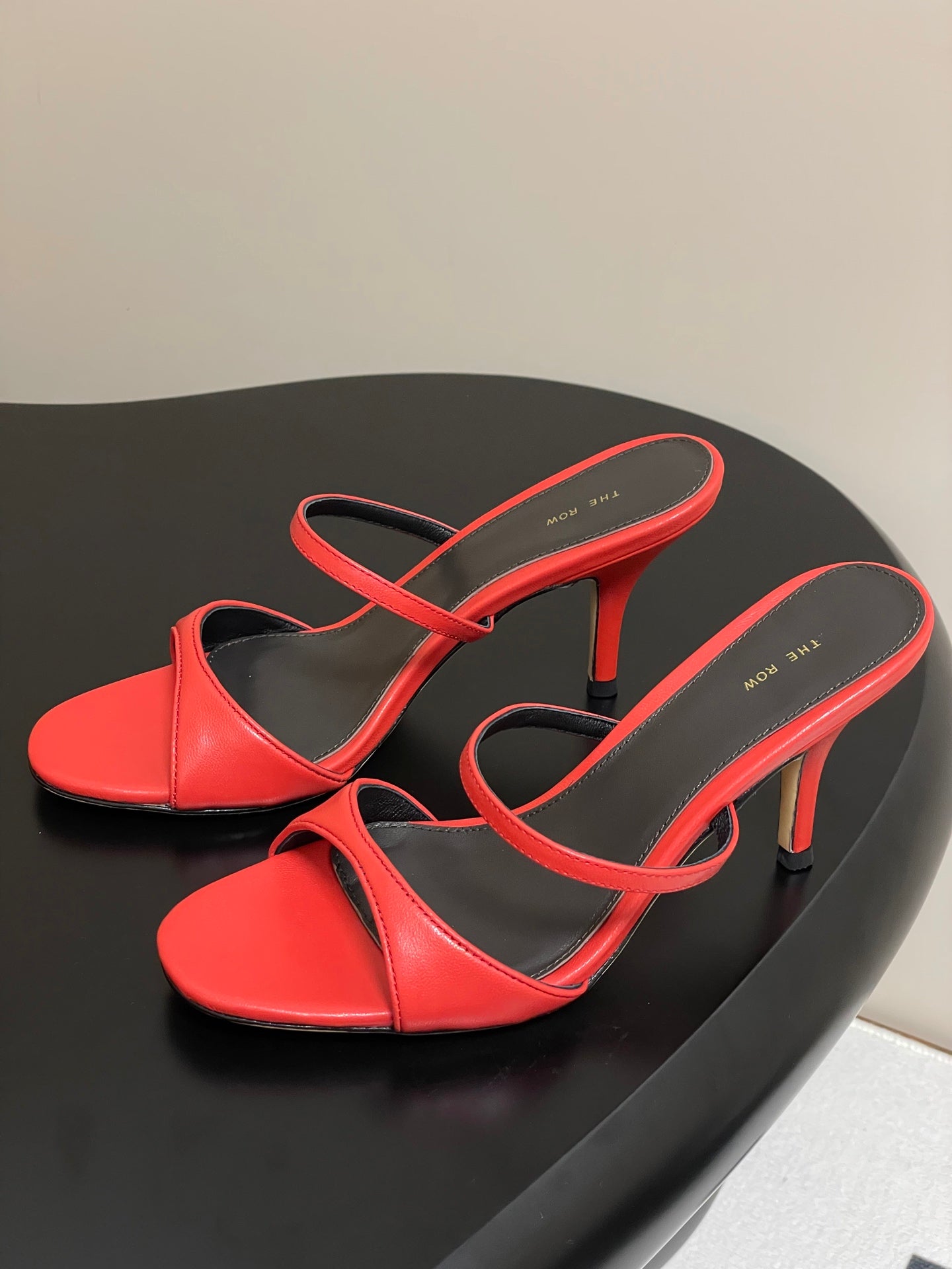 The Row 25S Strap High Heel Mule Sandals 85mm Red Sheepskin 286206
