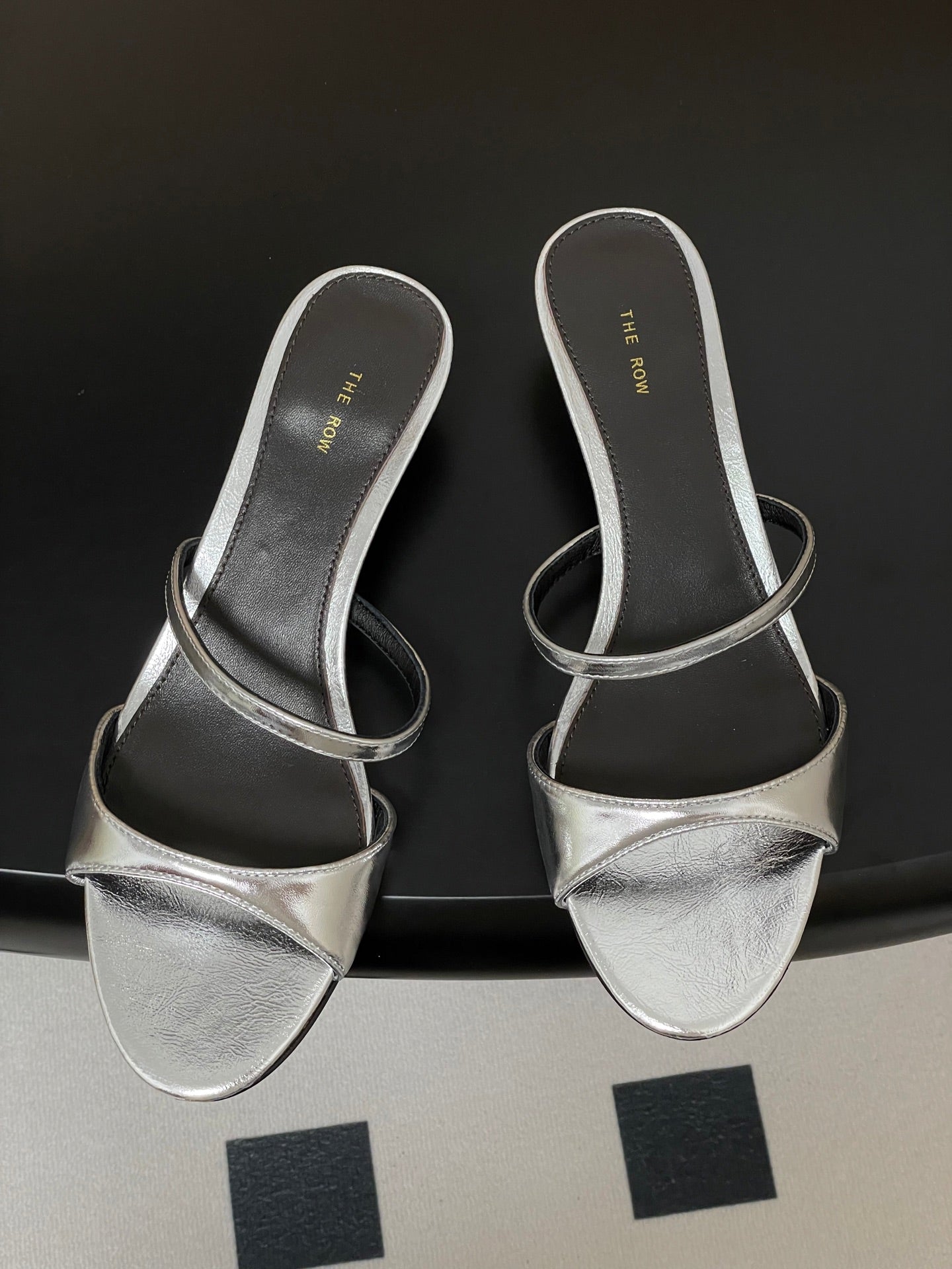 The Row 25S Strap High Heel Mule Sandals 35mm Black Mix Silver Metallic Cowhide 286217