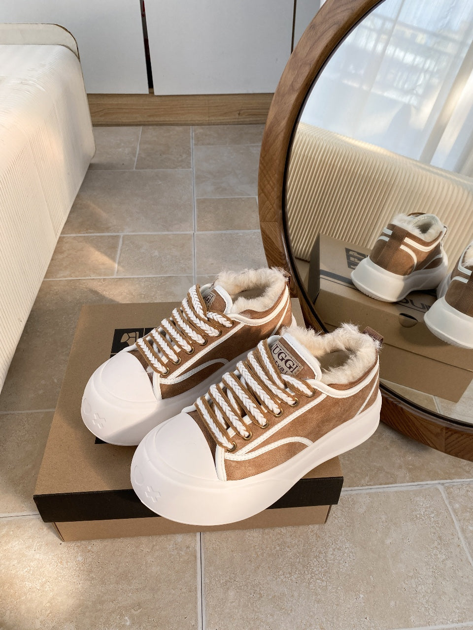 UGG Casual Sports Sneakers Brown White Suede Wool Rubber 512824