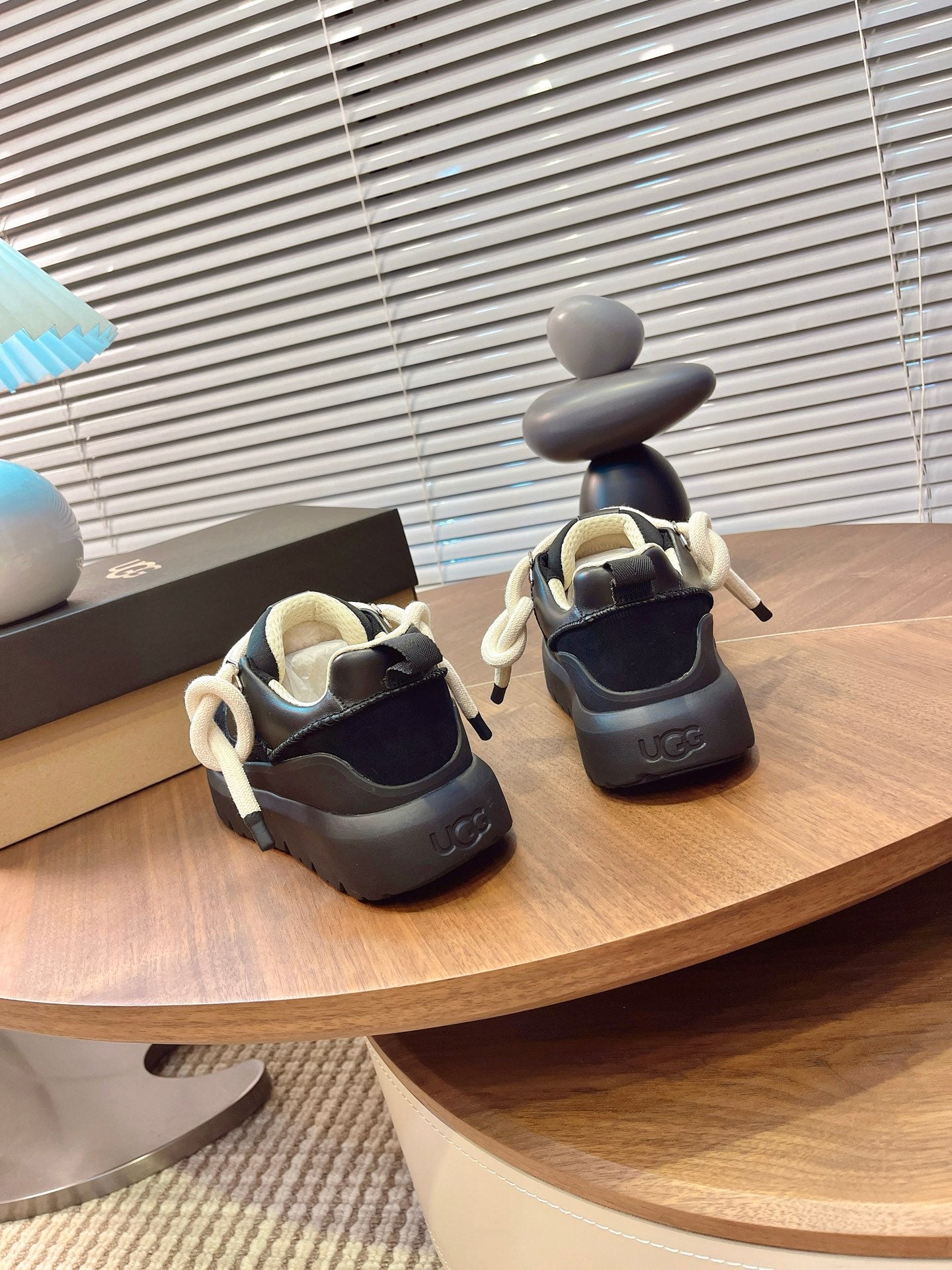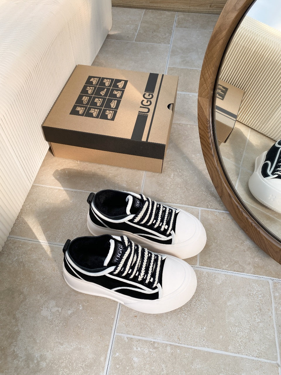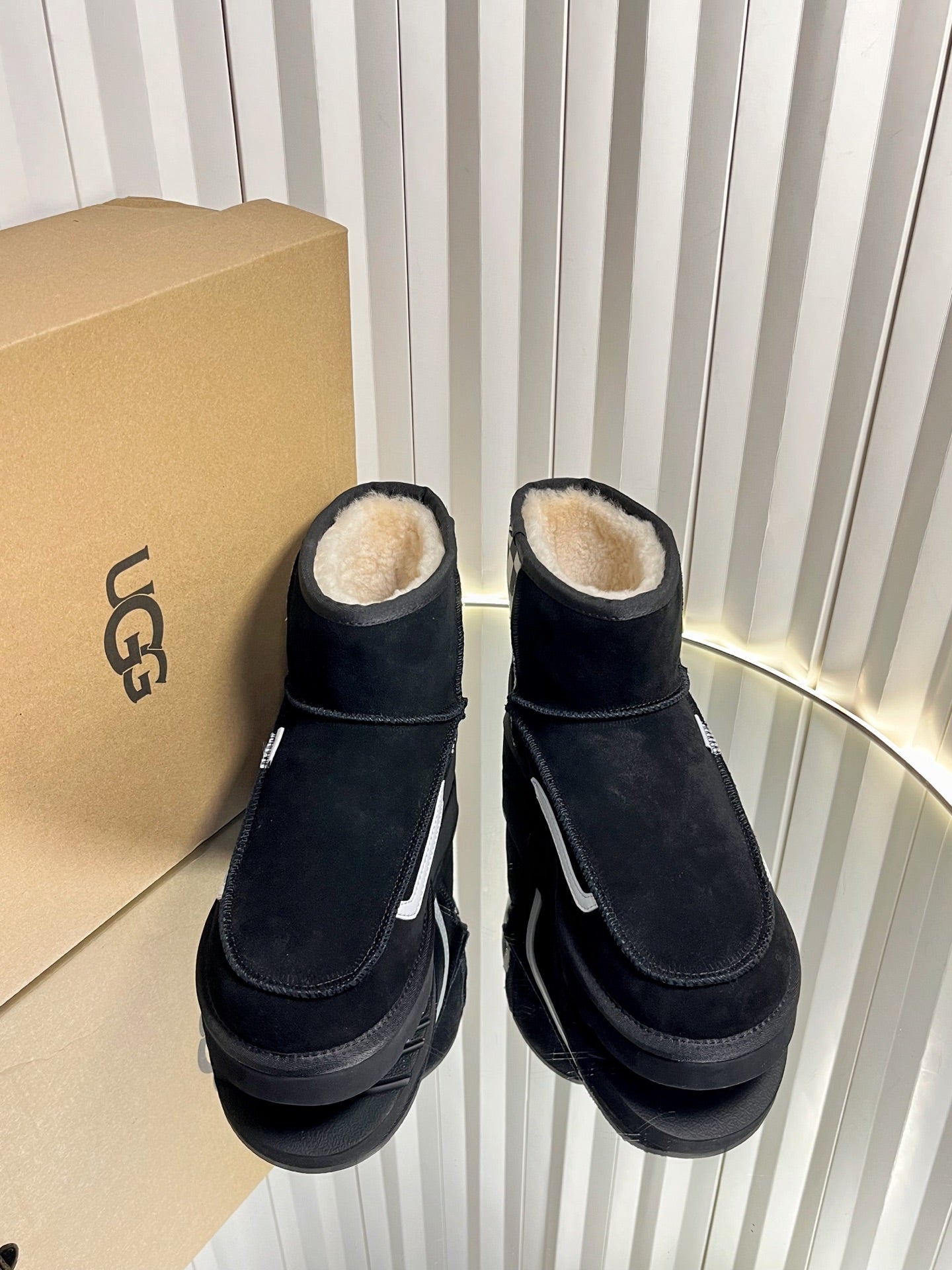 UGG Casual Sports Sneakers Black White Suede Wool Rubber 512825