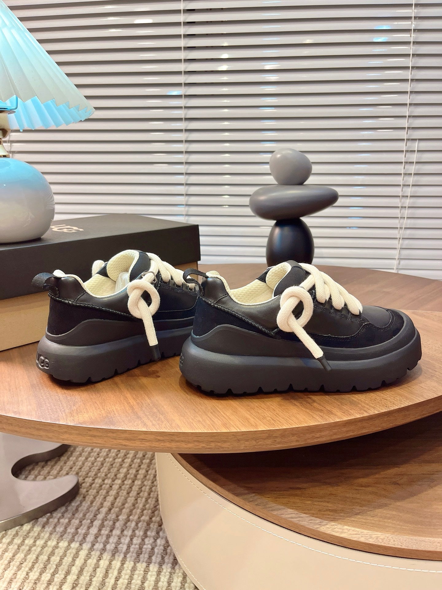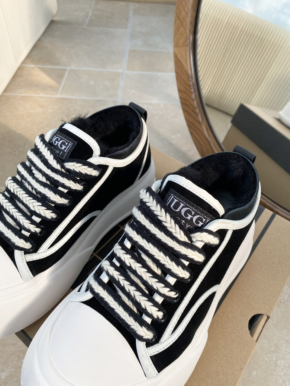 UGG Heritage Utility Sneakers Cream Black Suede Cowhide