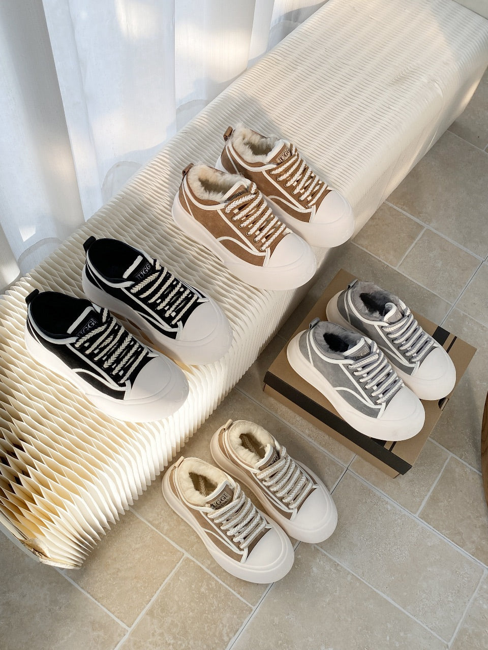 UGG Casual Sports Sneakers Grey White Suede Wool Rubber 512823
