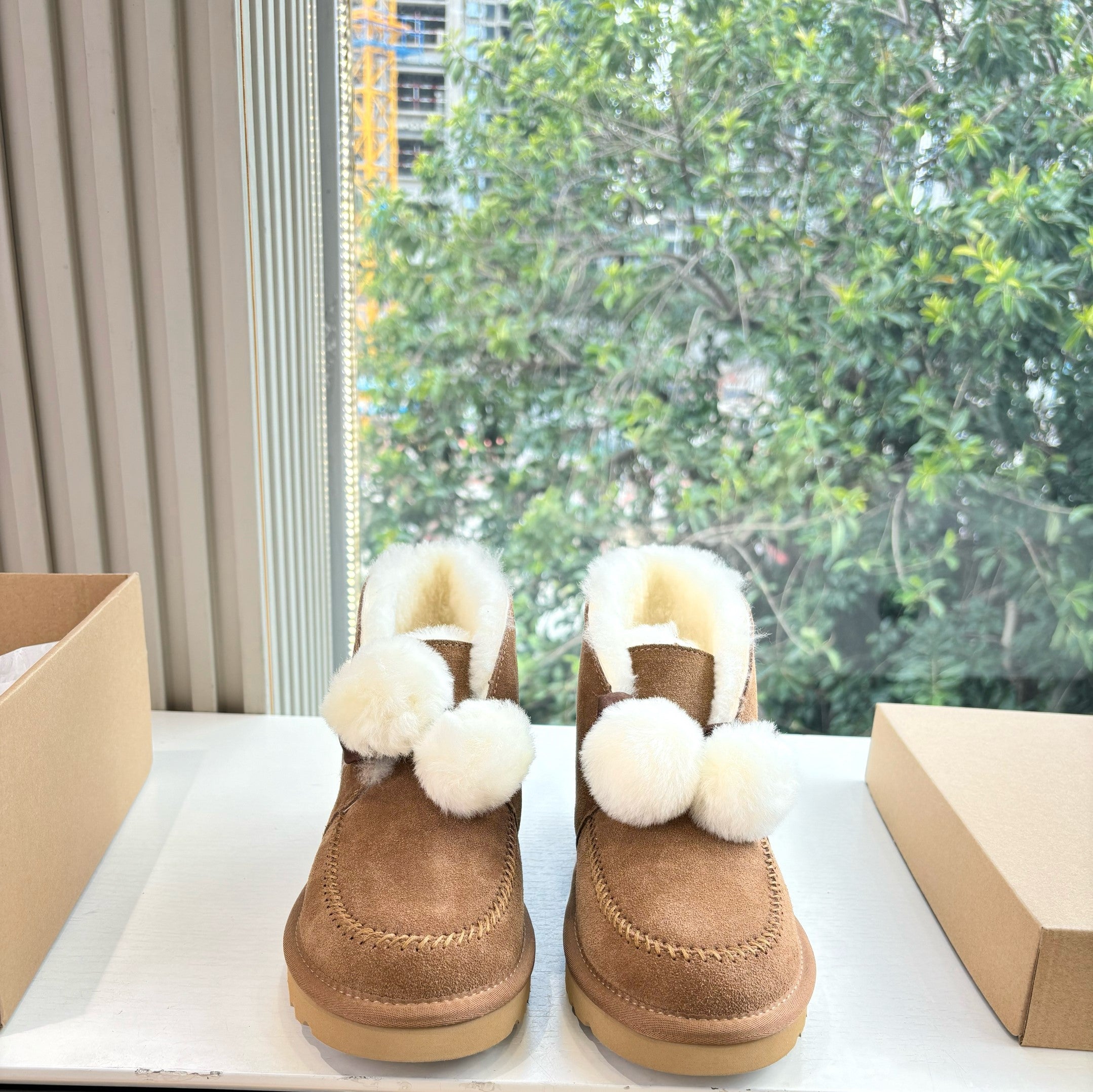UGG Mini Potato Boots Light Brown Suede Shearing