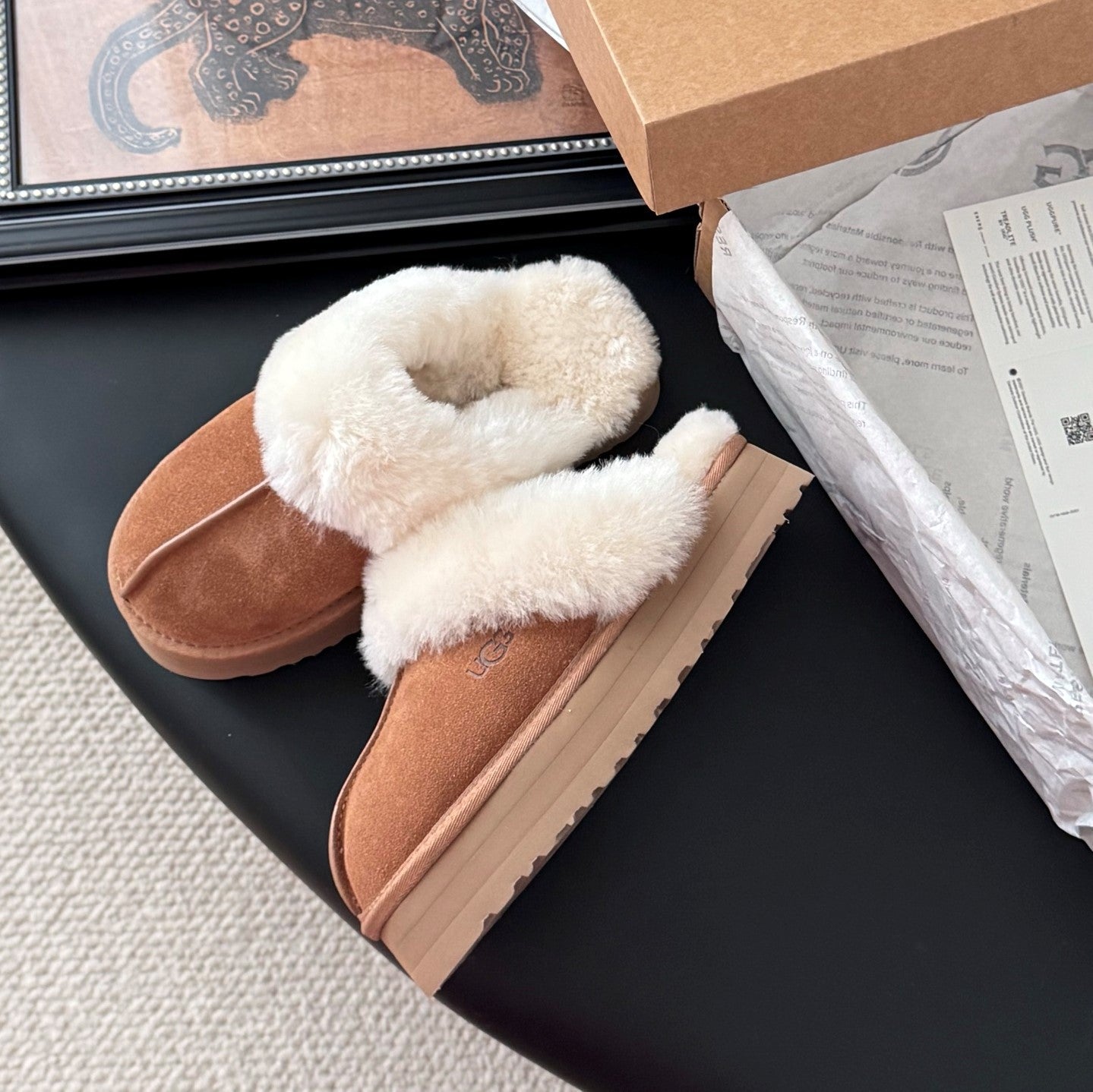 UGG Disquette Slippers Brown White Wool Suede 508052