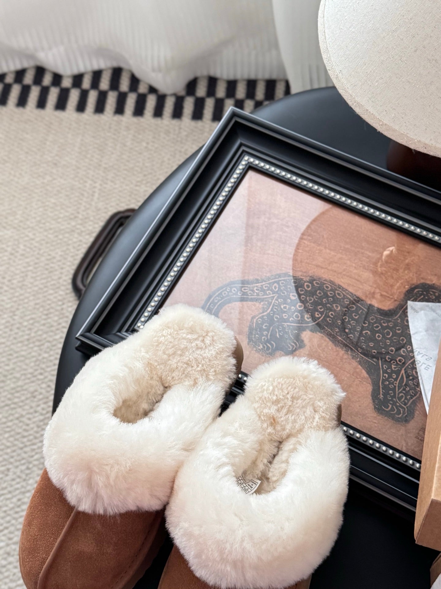 UGG Tazz Sunwave Slippers Chestnut White Suede